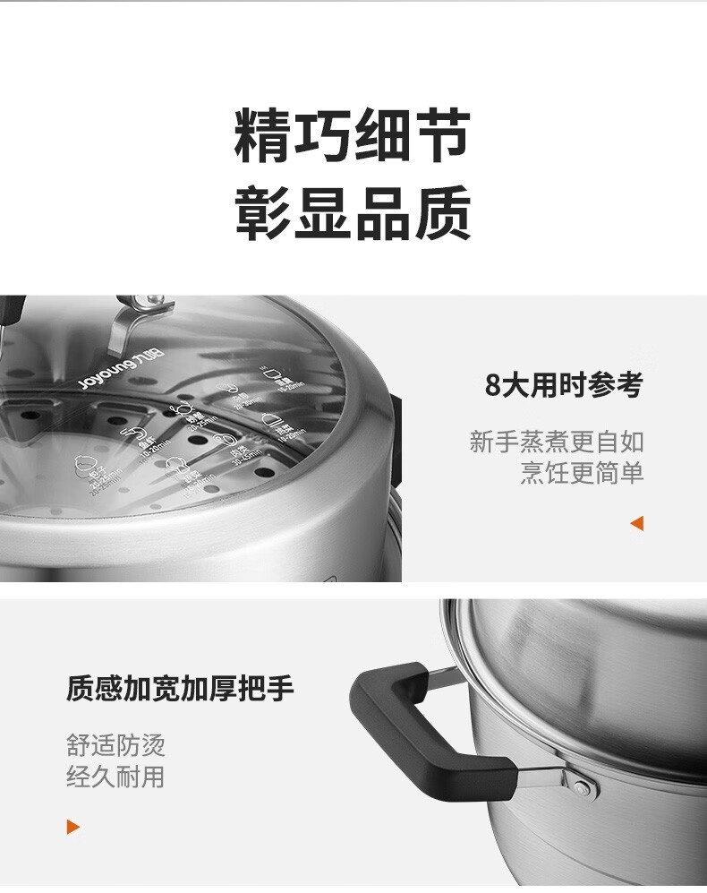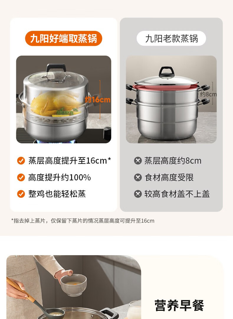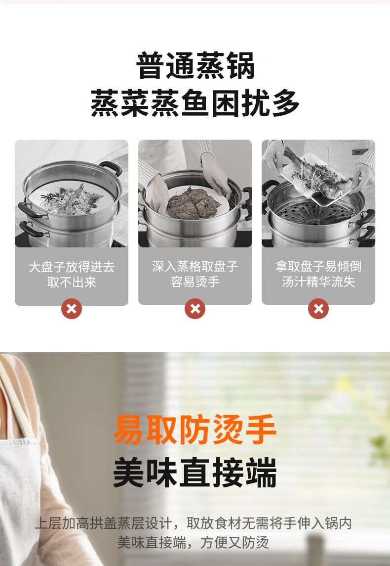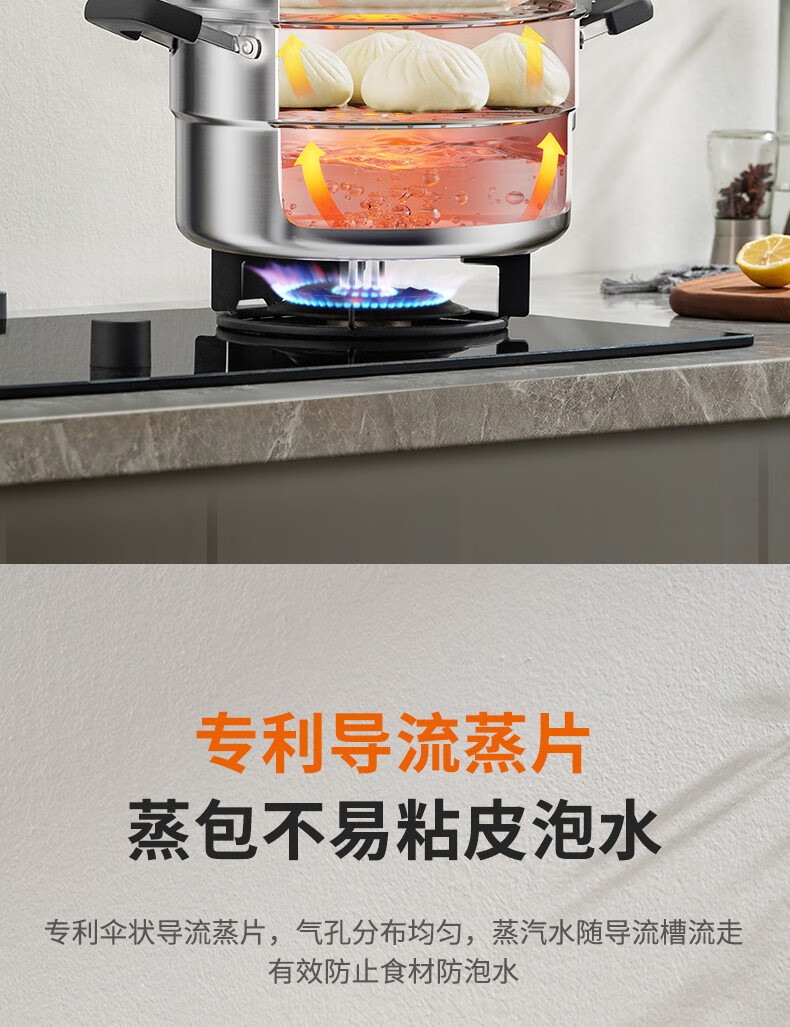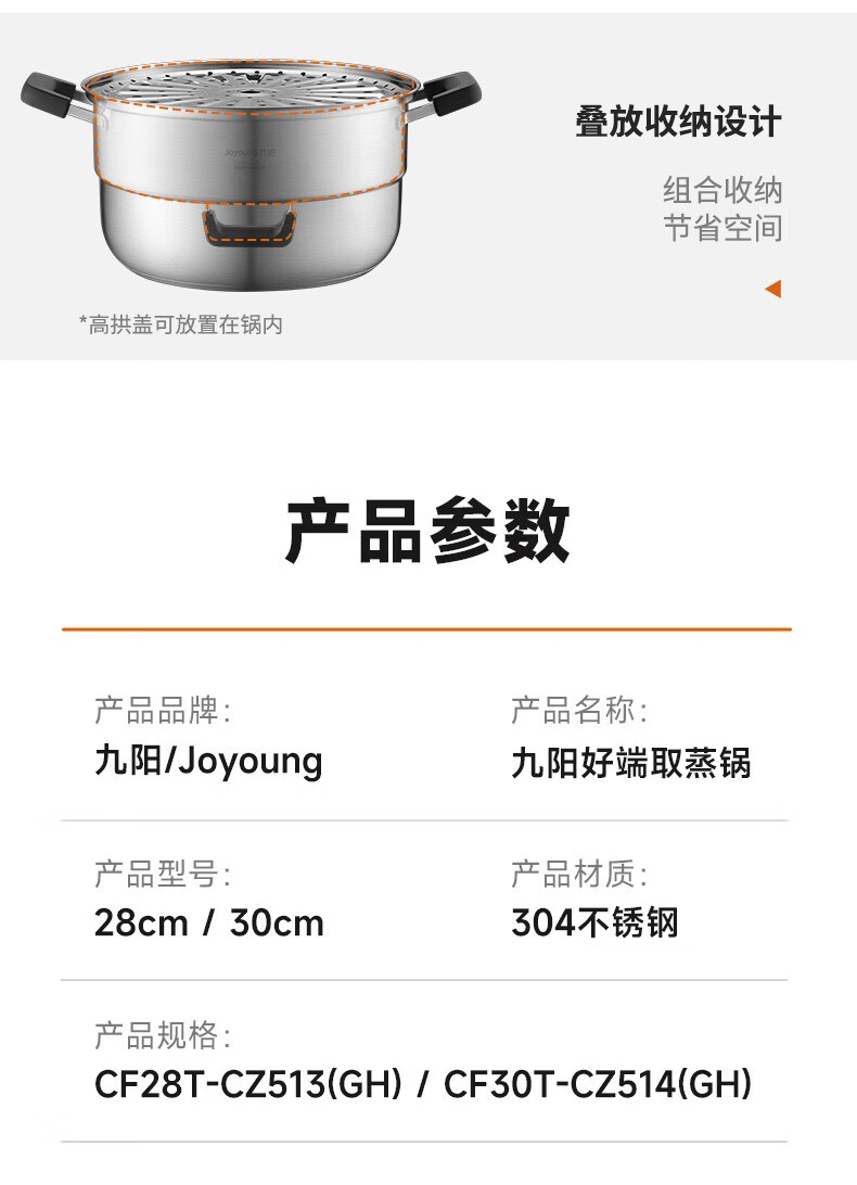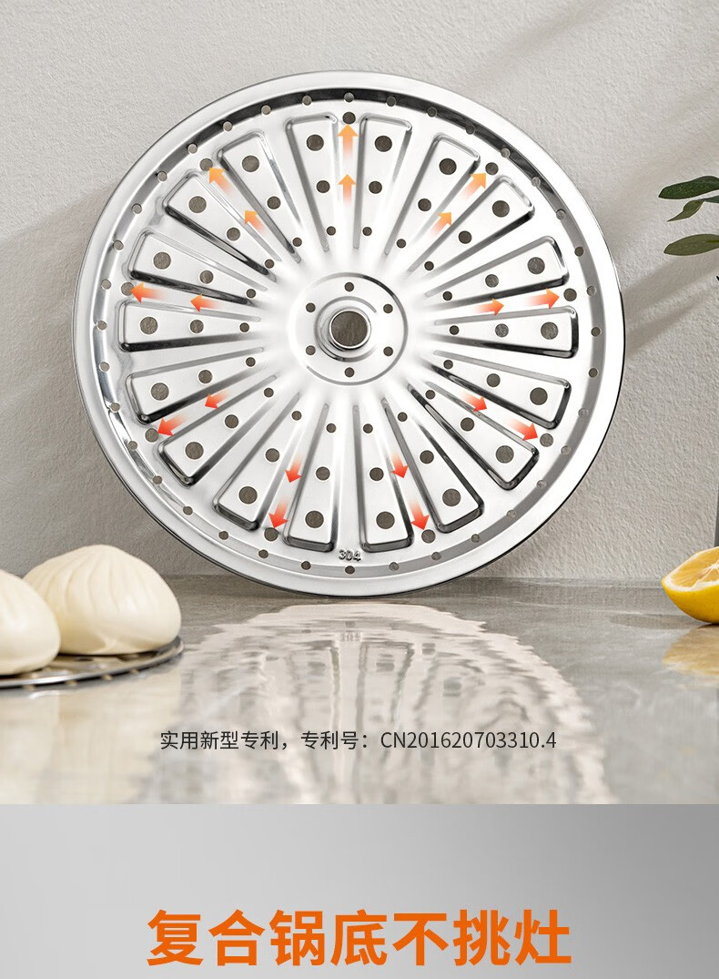 Joyoung Steamer 304 stainless steel double-layered bottom large-capacity high-arch lid steamer soup pot steamer induction cooker universal heightening design-CZ513- 2 layers 28cm