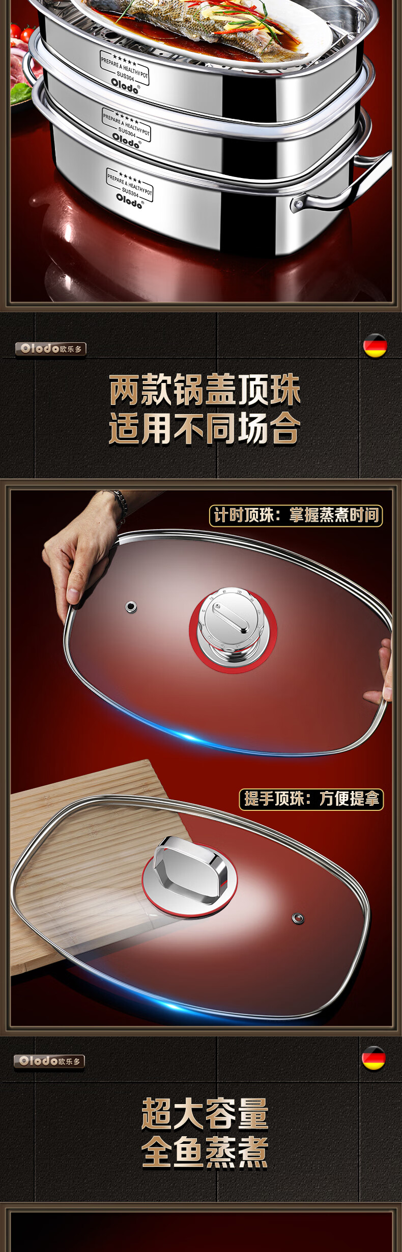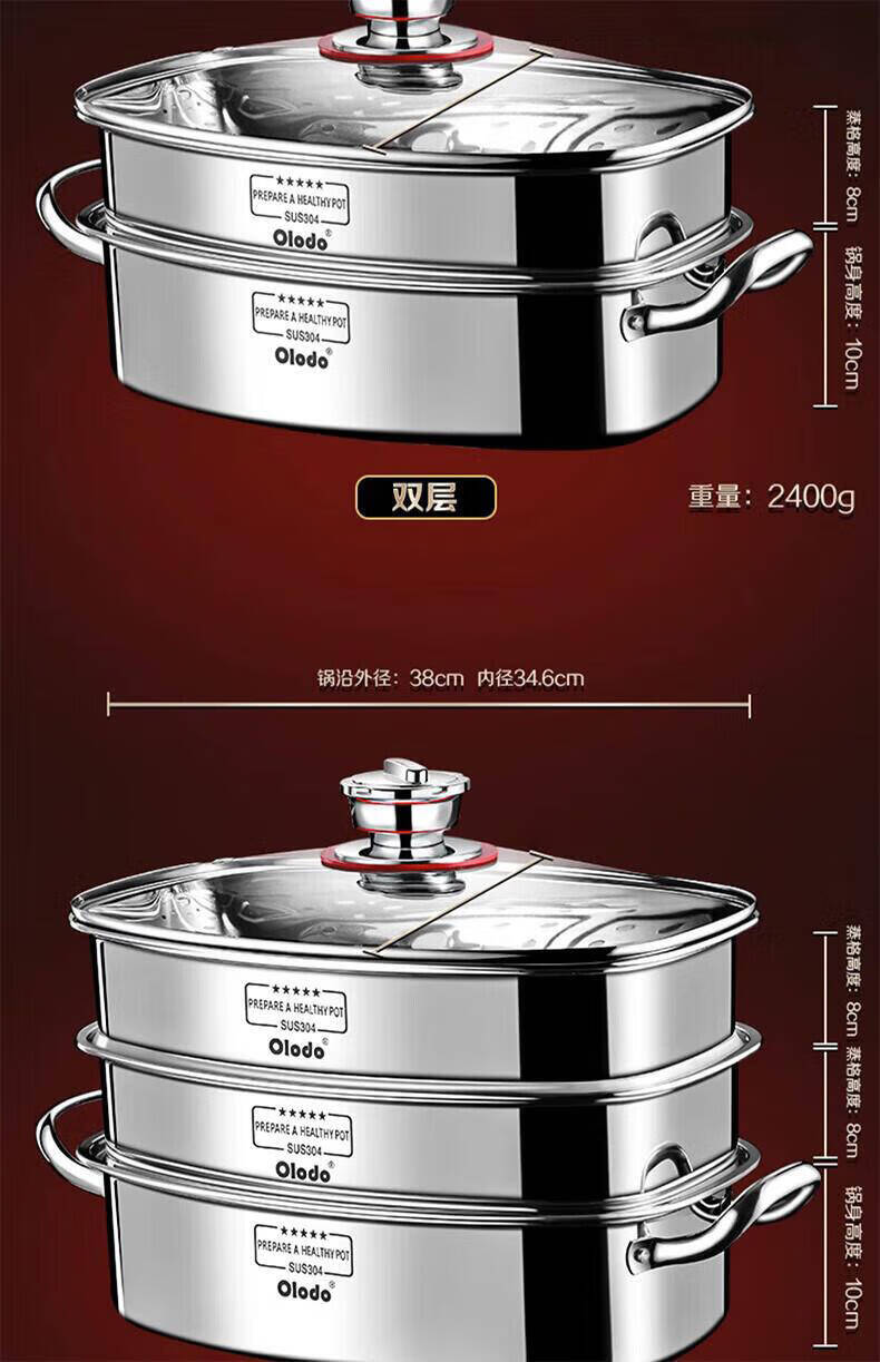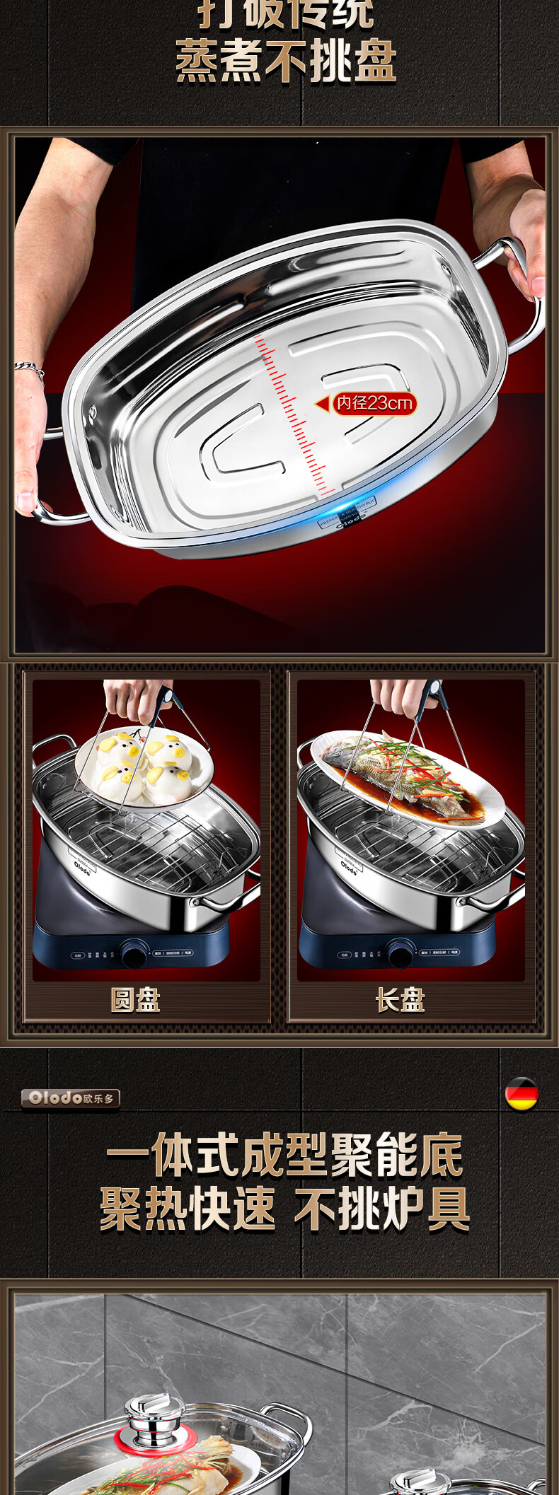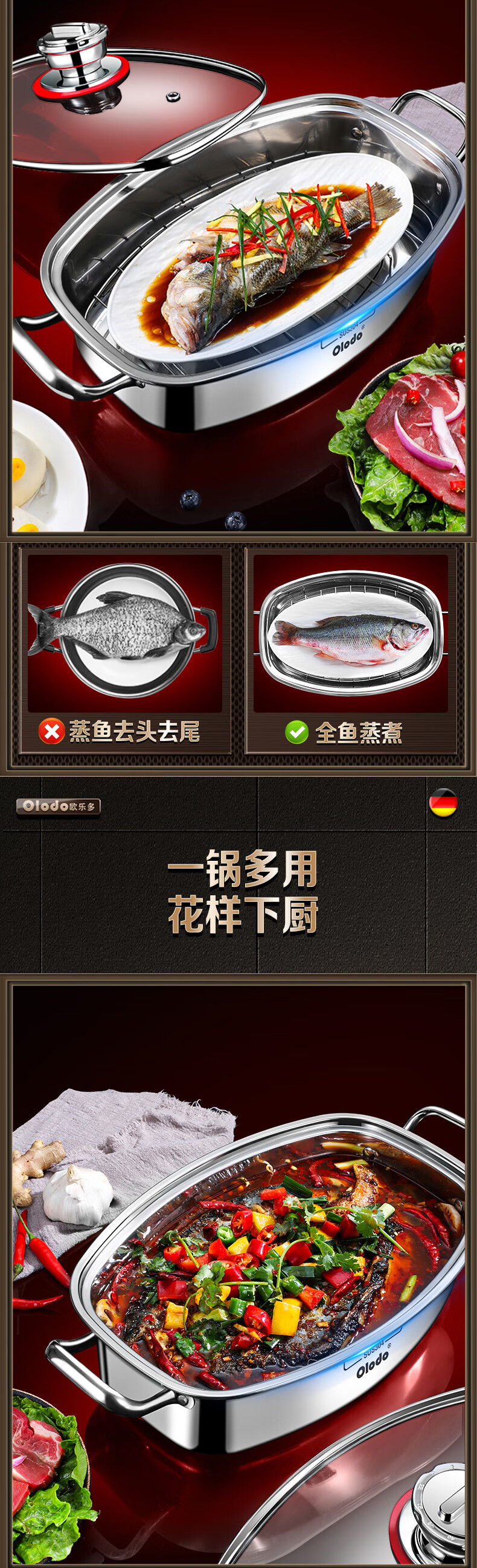 Olodo German 304 stainless steel fish steaming pot steamer large household large capacity oval fish steaming artifact steamer pot timer 304 fish steaming pot five gifts 2 layers 34cm