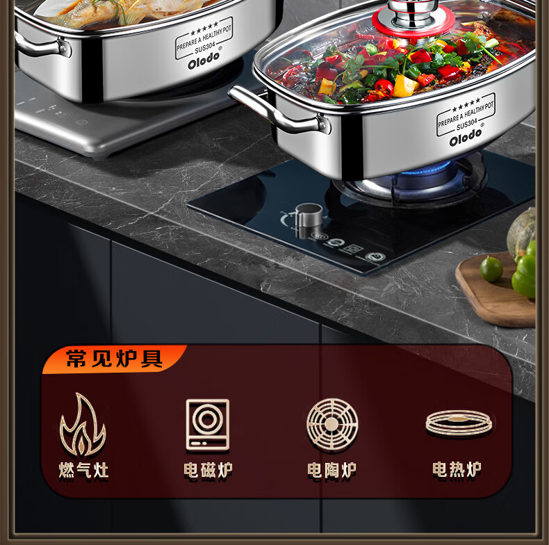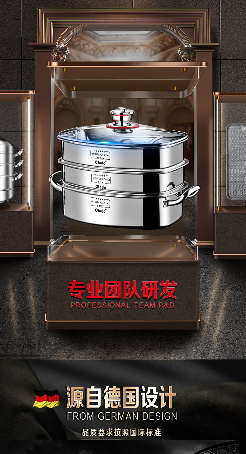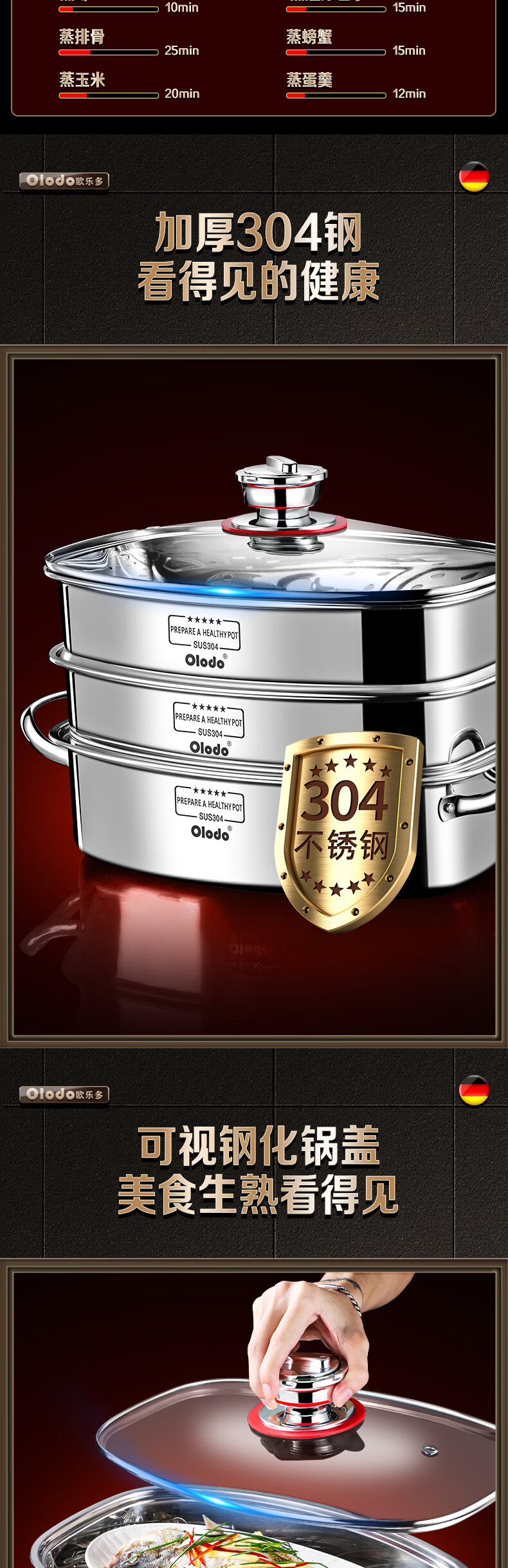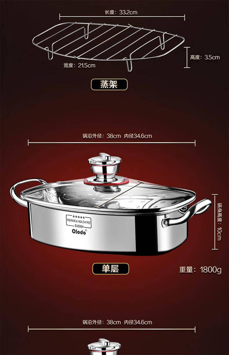 Olodo German 304 stainless steel fish steaming pot steamer large household large capacity oval fish steaming artifact steamer pot timer 304 fish steaming pot five gifts 2 layers 34cm