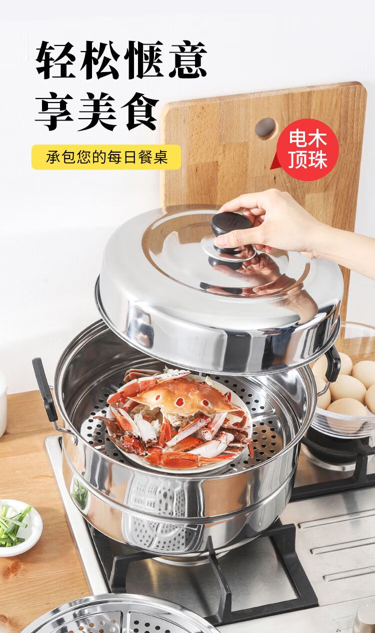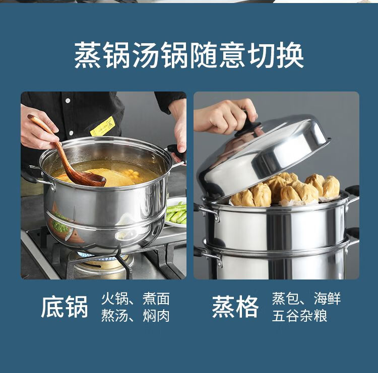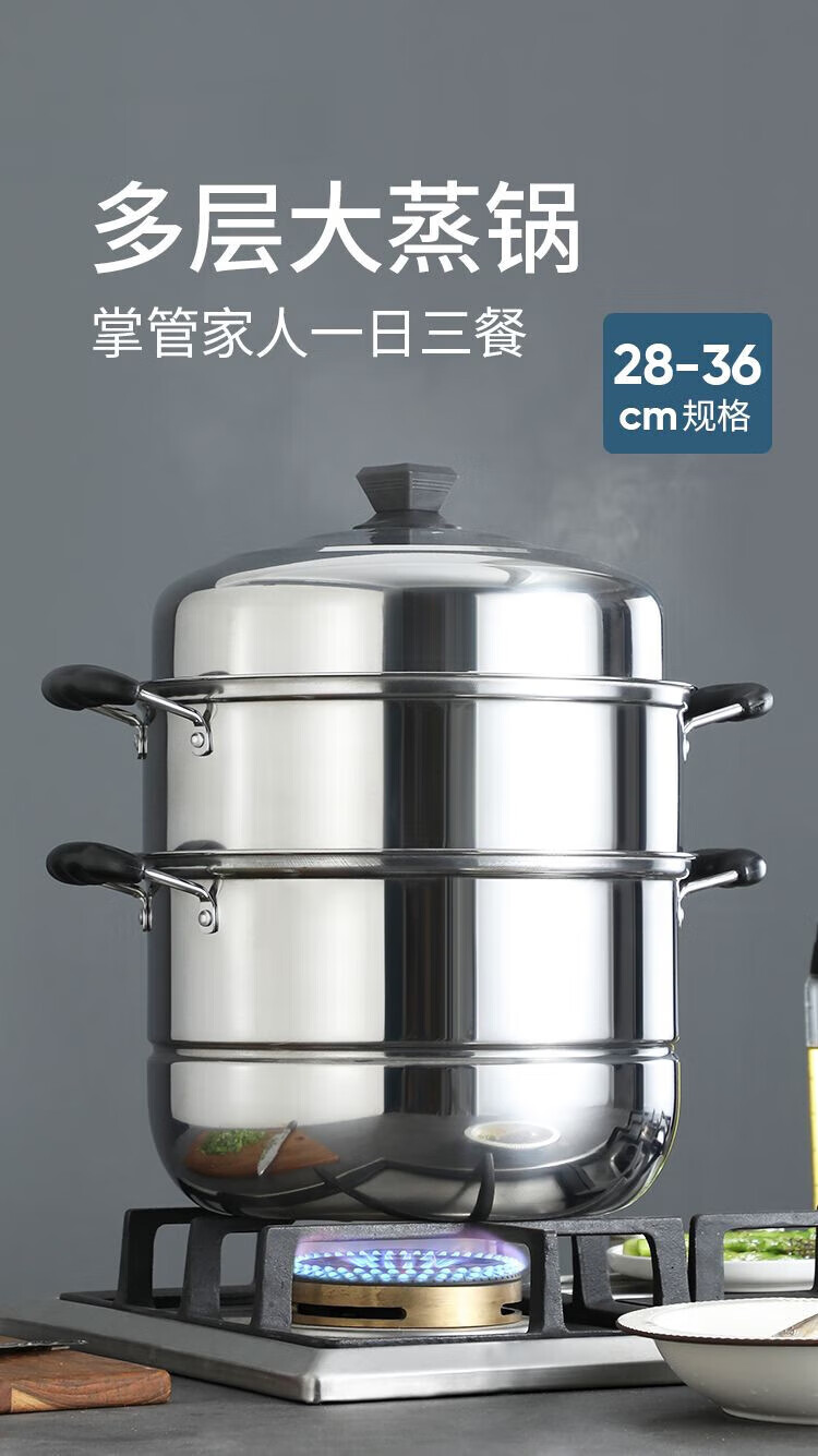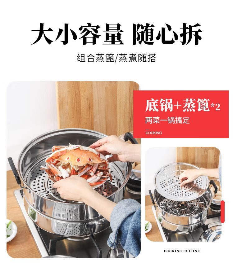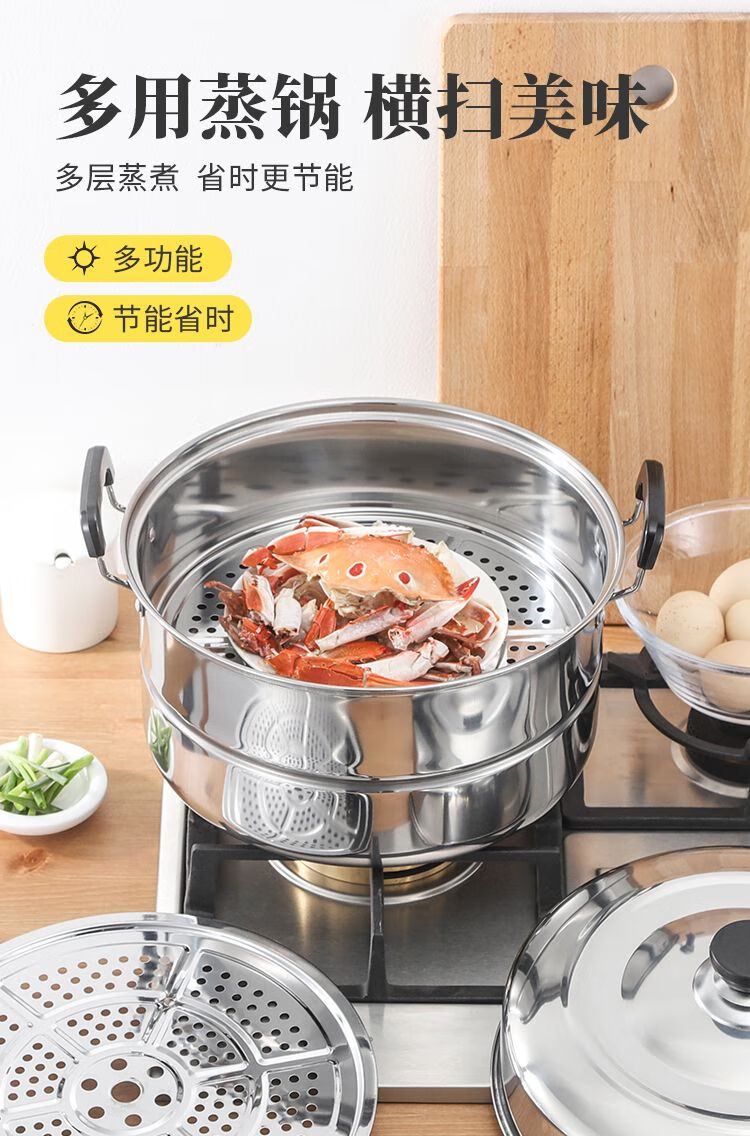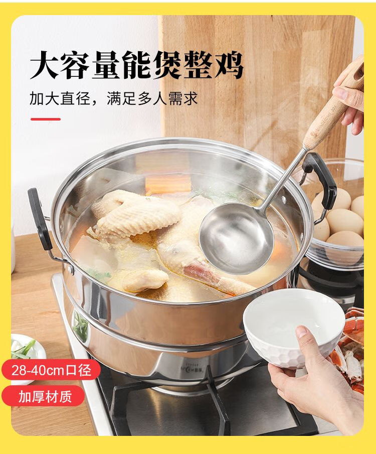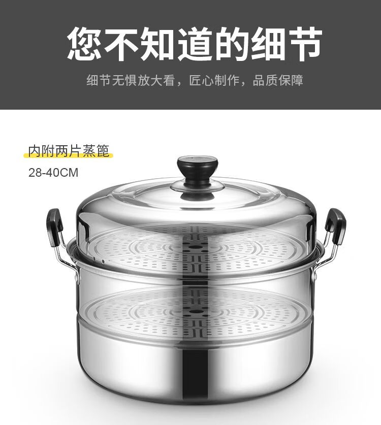 Jia Jazz thickened stainless steel 2-layer large steamer double-layer soup pot 30cm-40cm steamed bun pot steamed fish pot induction cooker extra thick 28CM (number of users 2-3 people) 2-layer 28cm photographed with