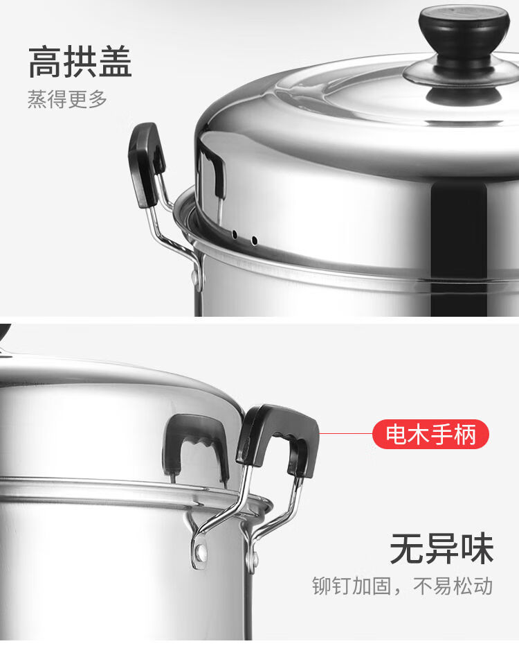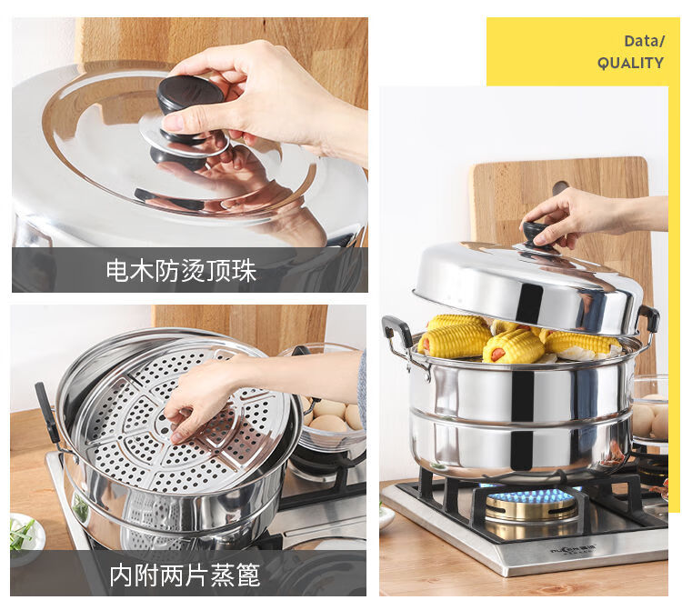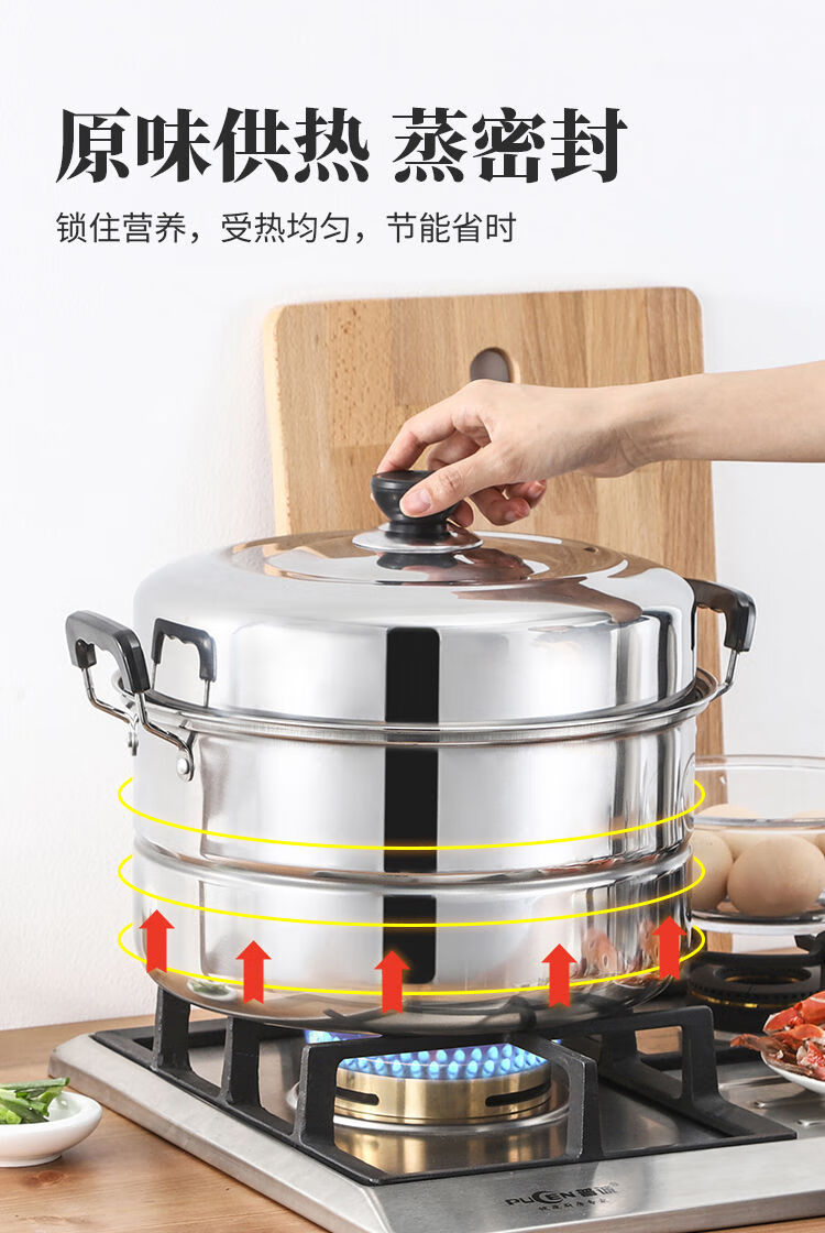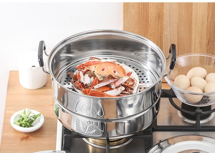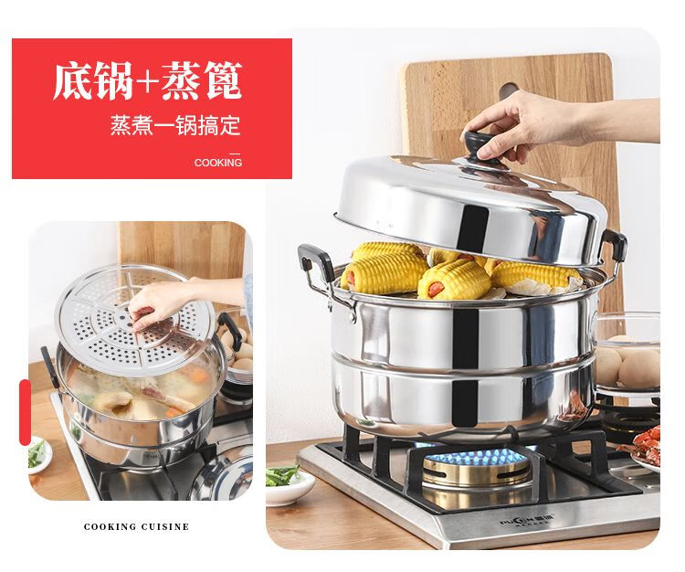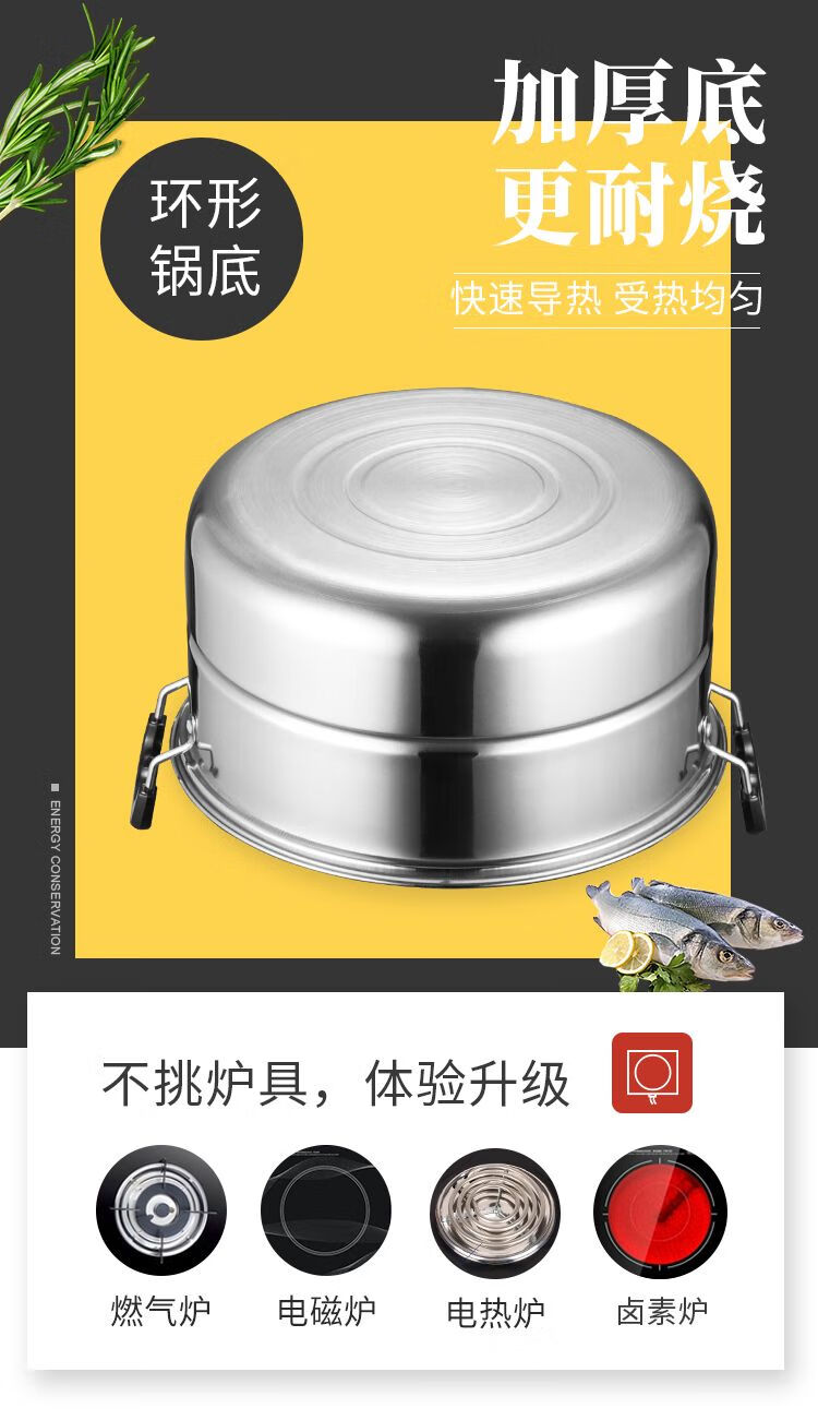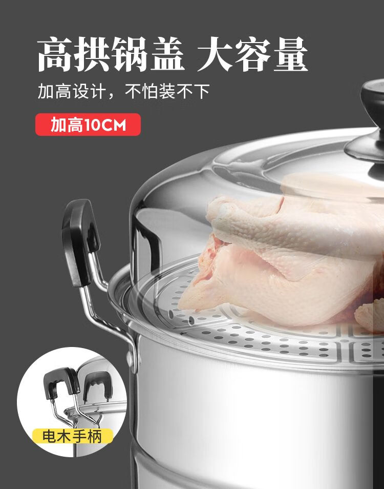Jia Jazz thickened stainless steel 2-layer large steamer double-layer soup pot 30cm-40cm steamed bun pot steamed fish pot induction cooker extra thick 28CM (number of users 2-3 people) 2-layer 28cm photographed with