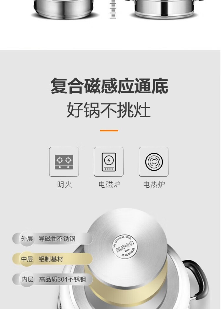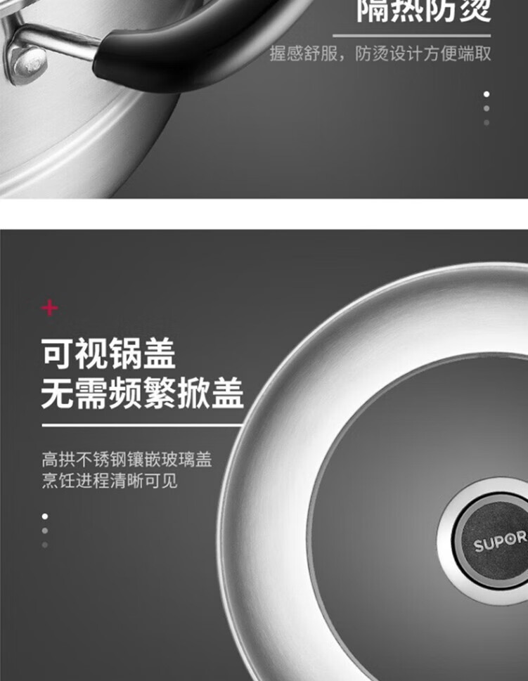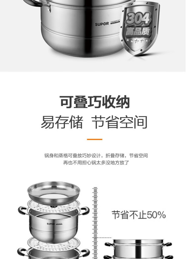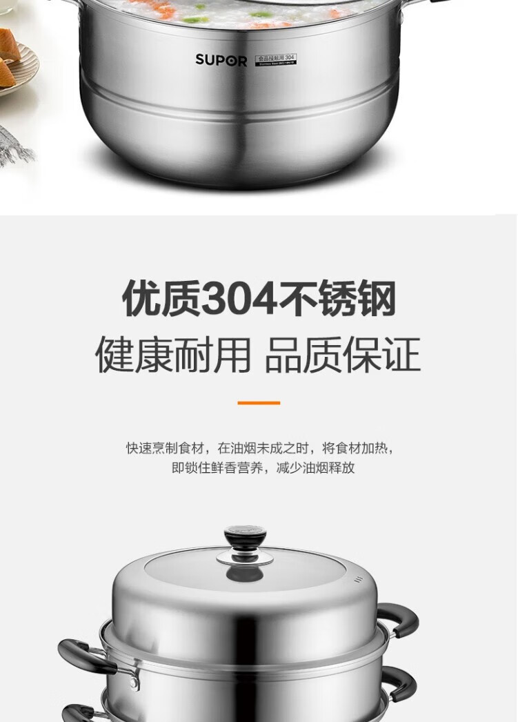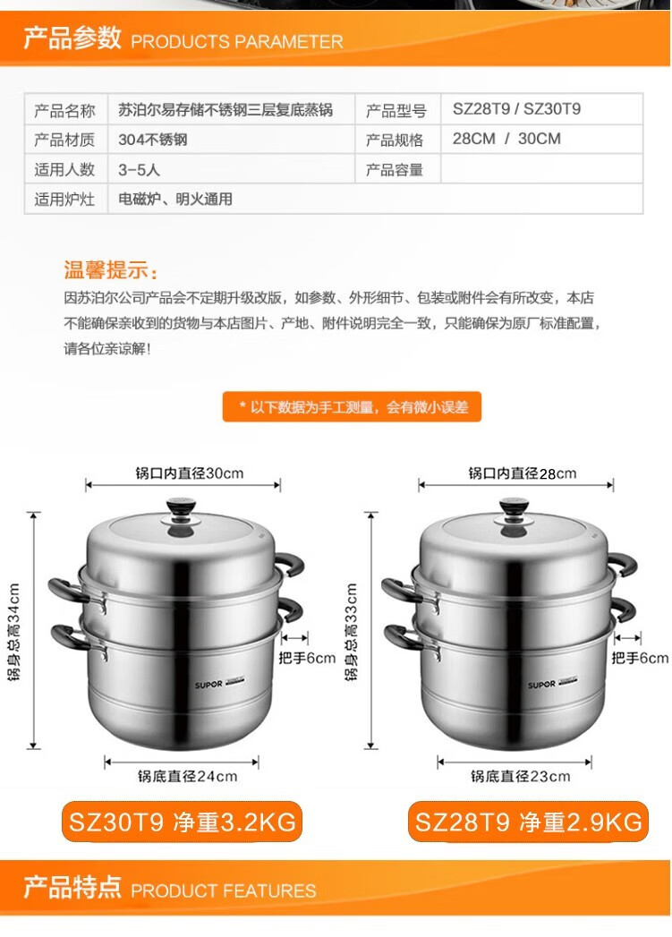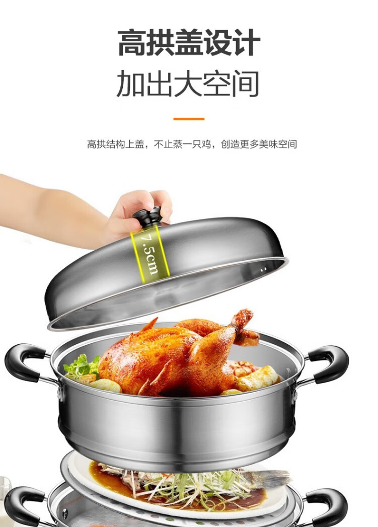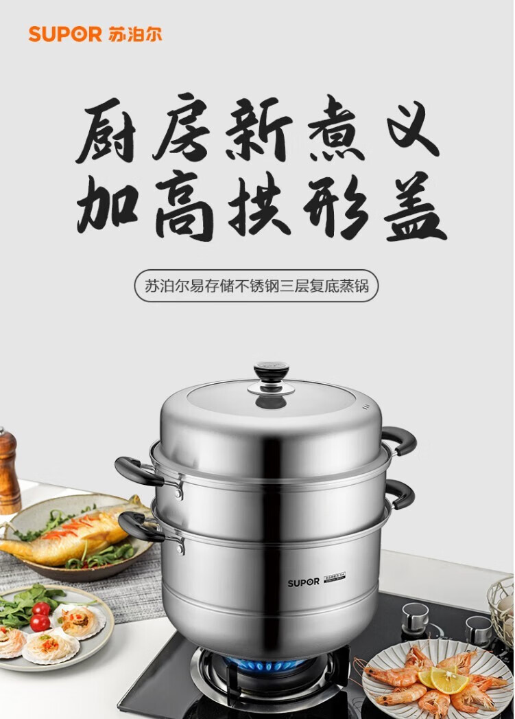 Supor 304 stainless steel household three-layer steamer high arch cover thickened steamer steamer steamer steamed buns gas induction cooker universal three-layer arch cover - diameter 30cm