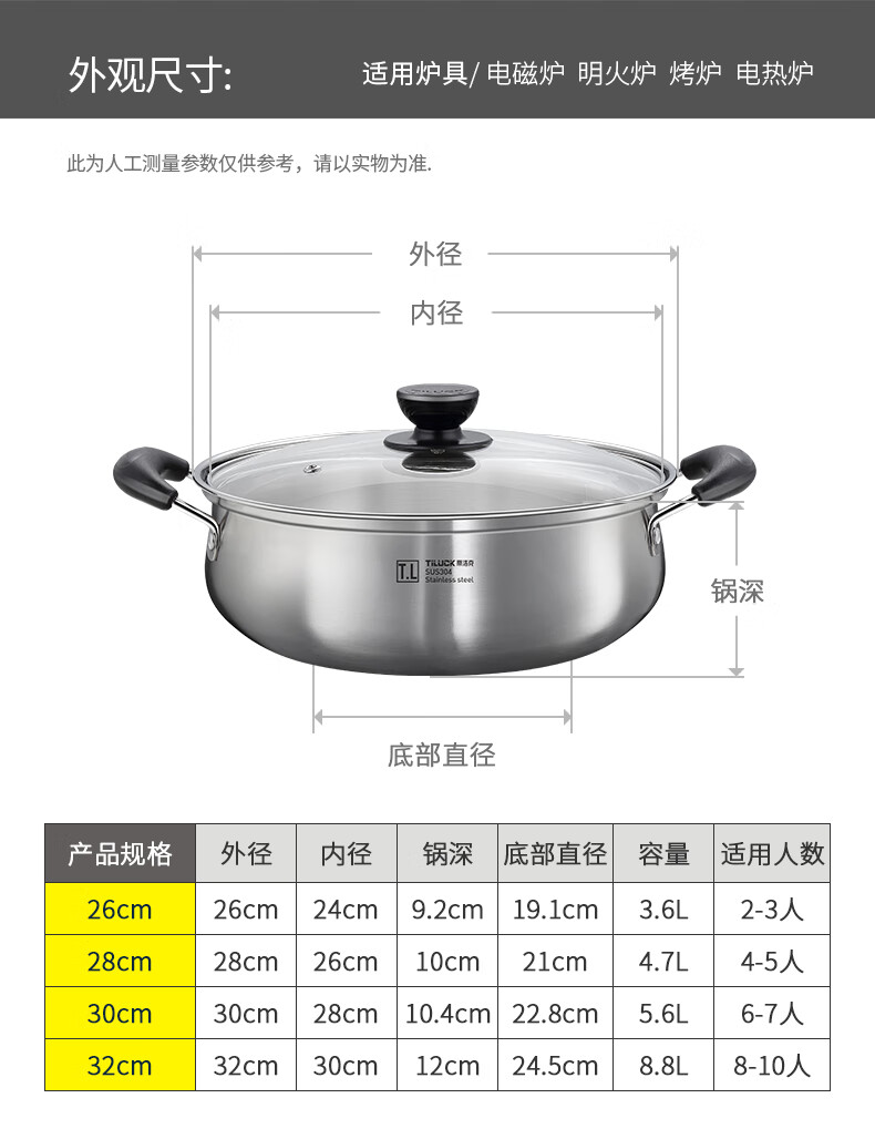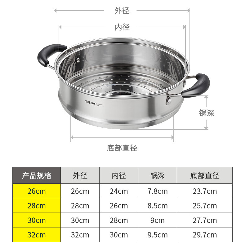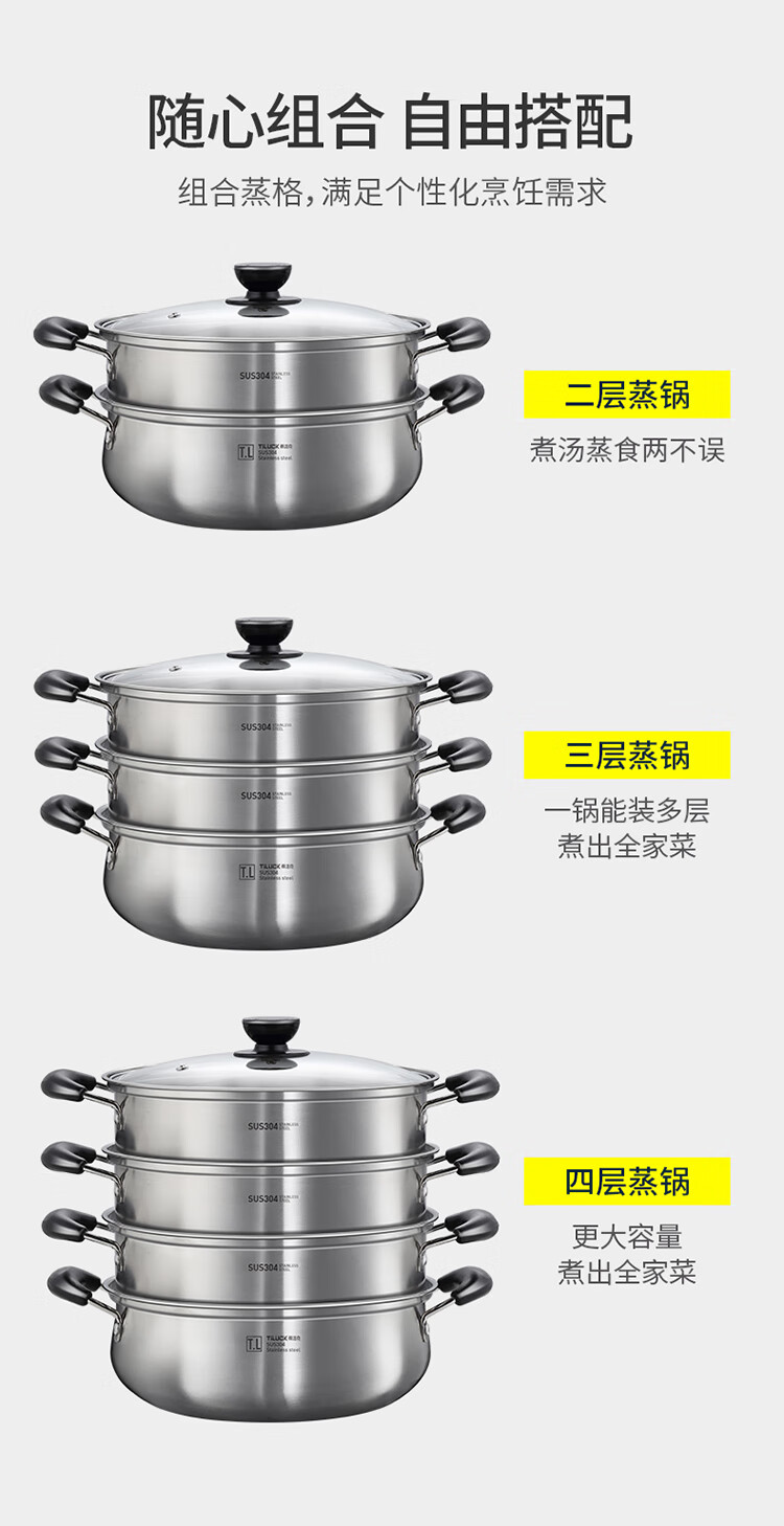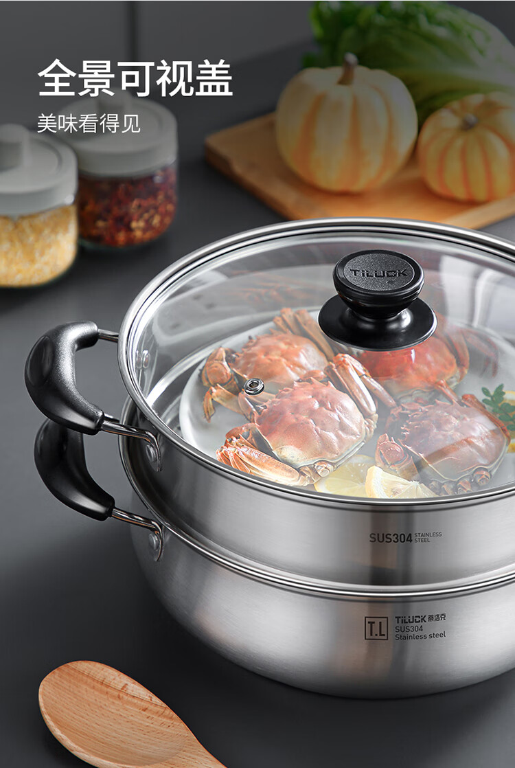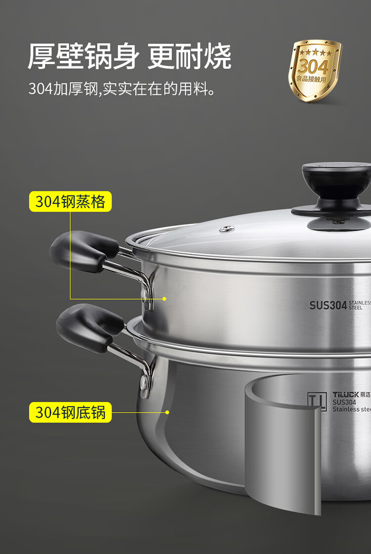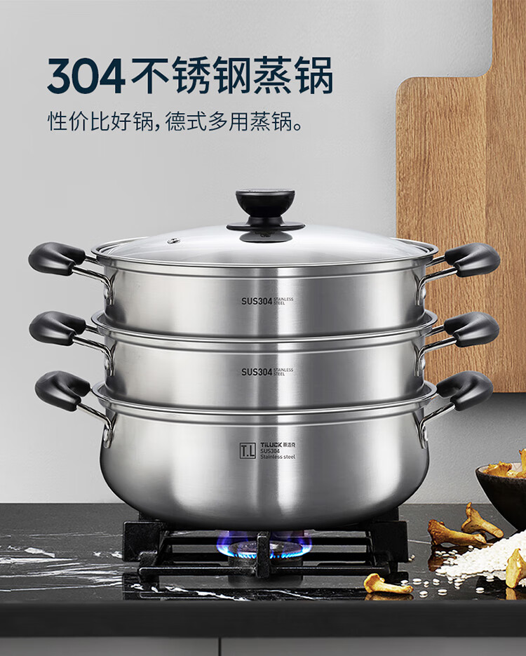 Tilok 304 stainless steel thickened multi-layer steamer household steamer multi-functional stew pot induction cooker gas stove special 304 stainless steel 3 layers 32cm