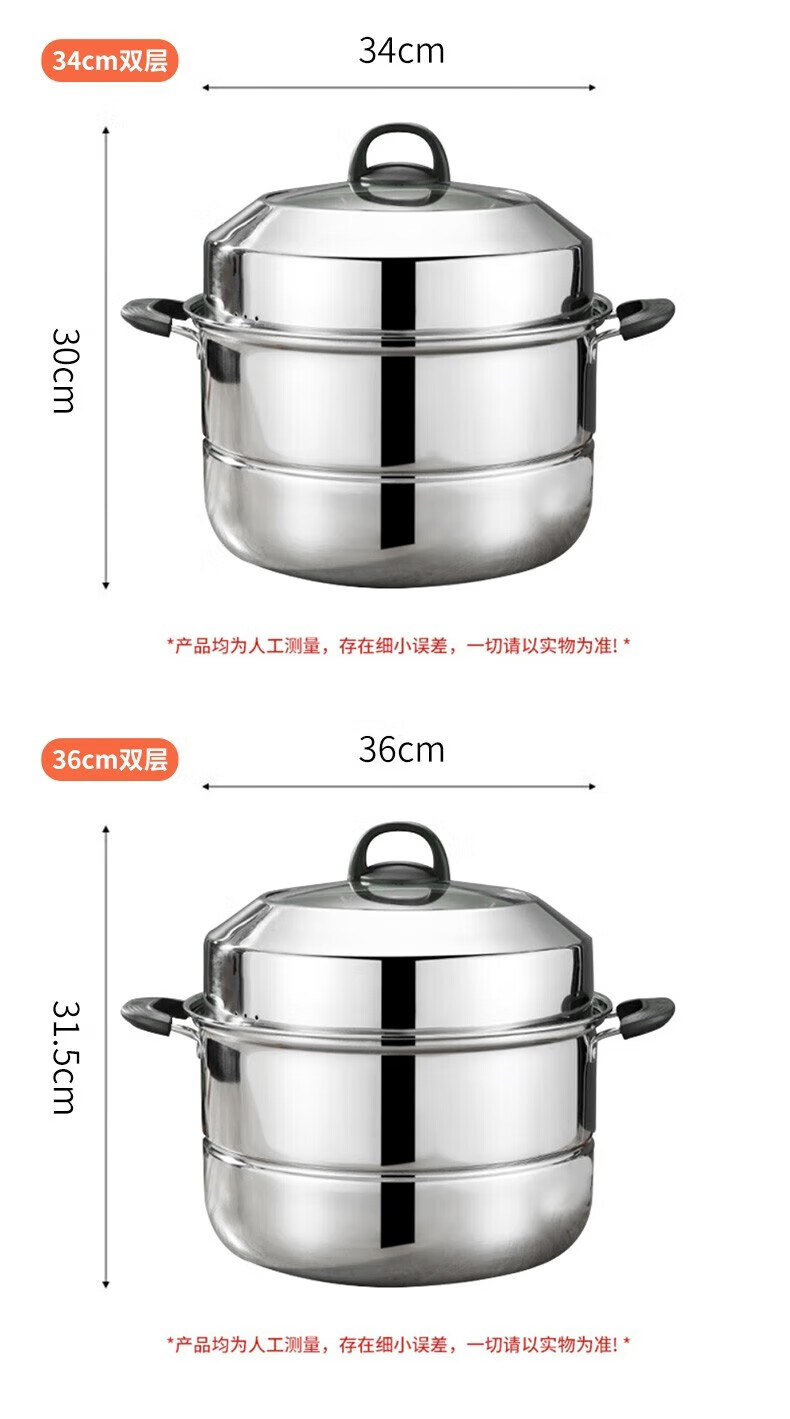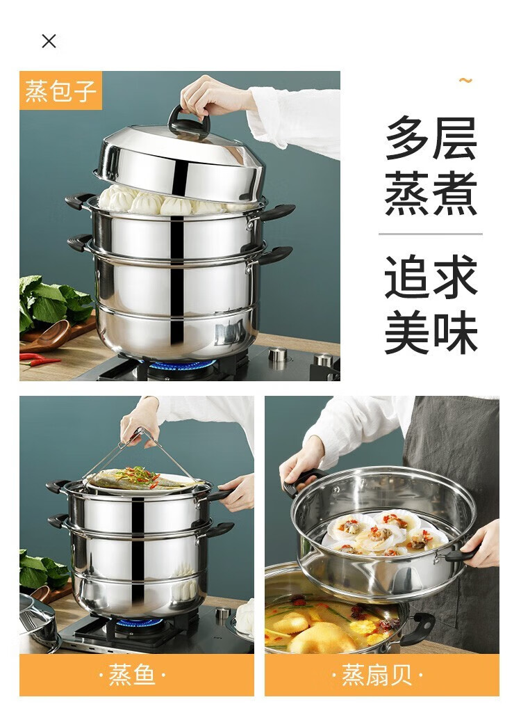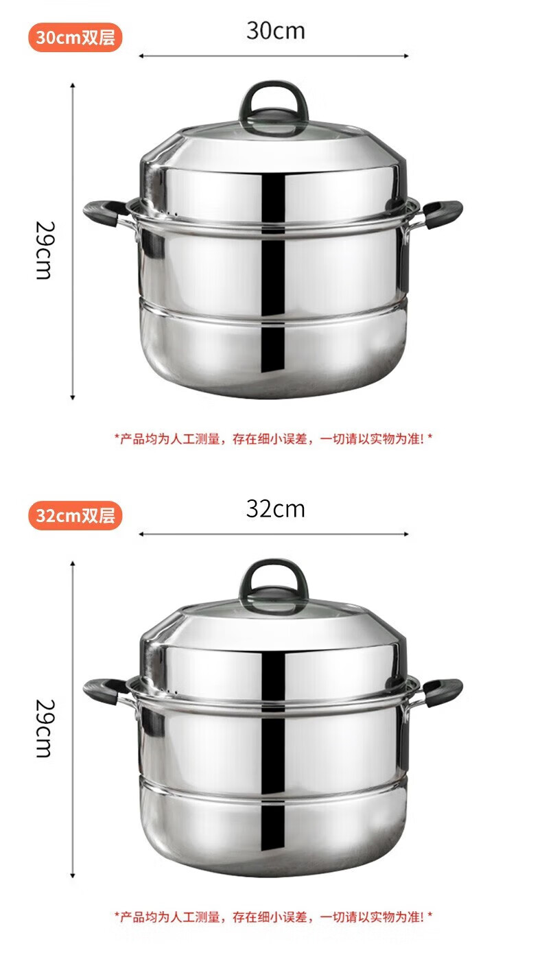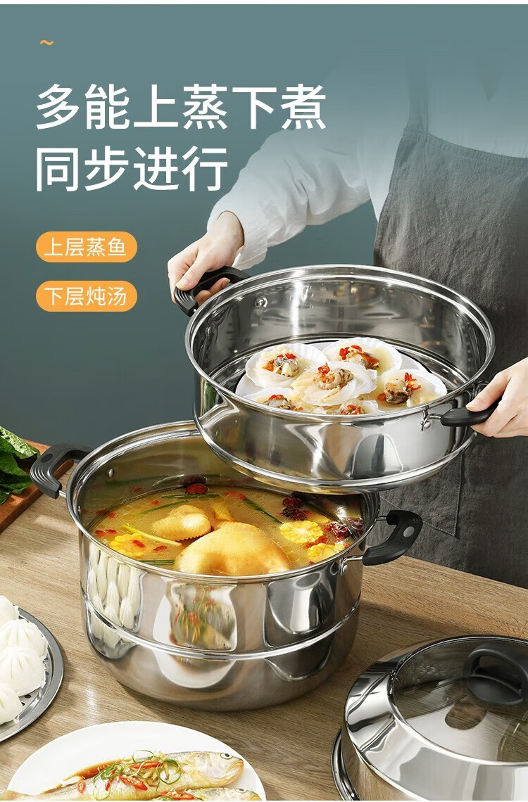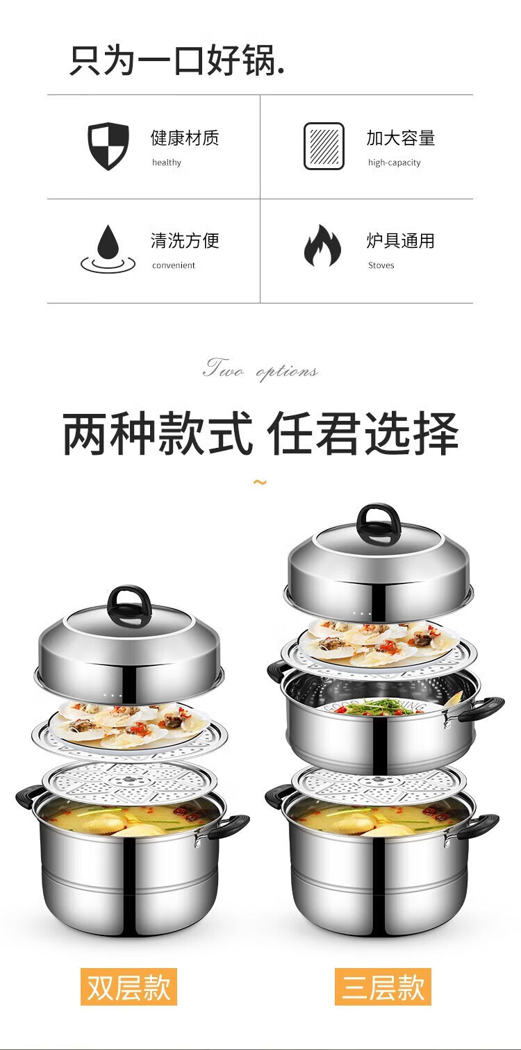 Baig steamer stainless steel pot home kitchen steamed buns fish crab two-layer soup steamer gas stove induction cooker universal double-layer steamer 2 layers 32cm
