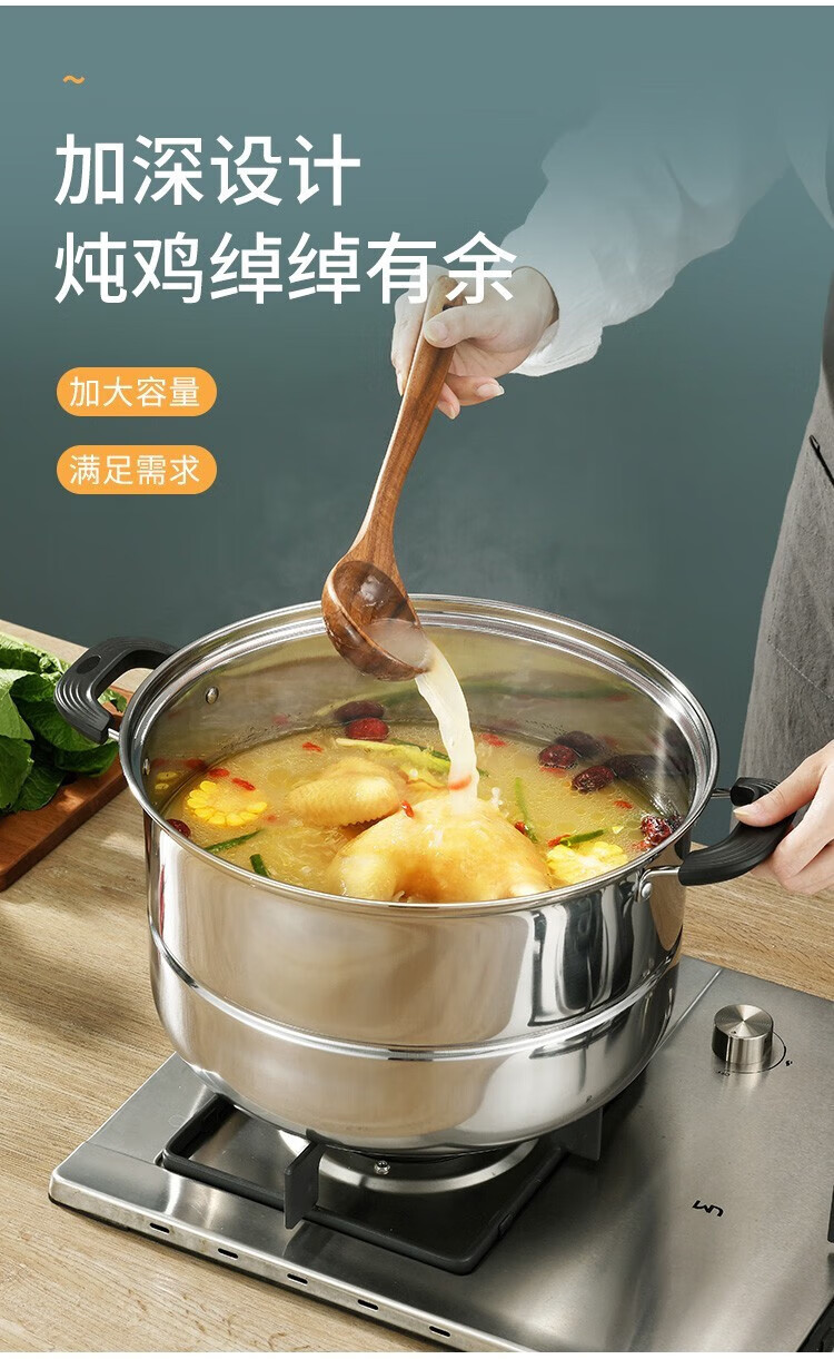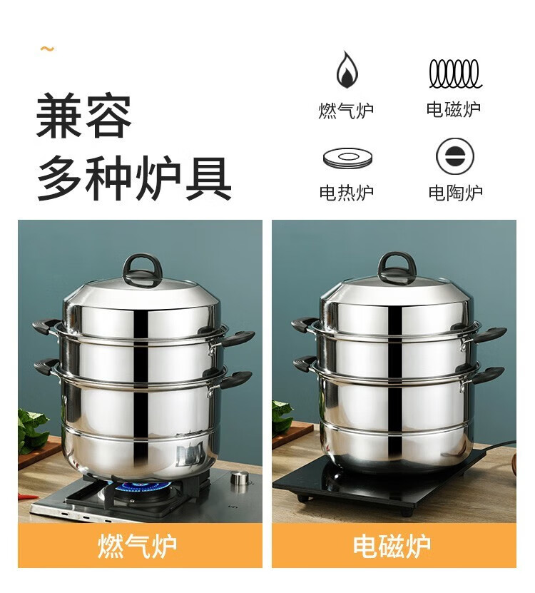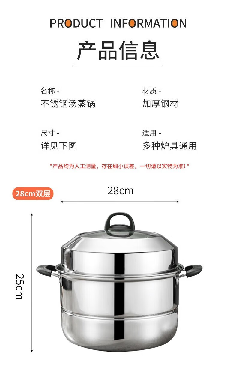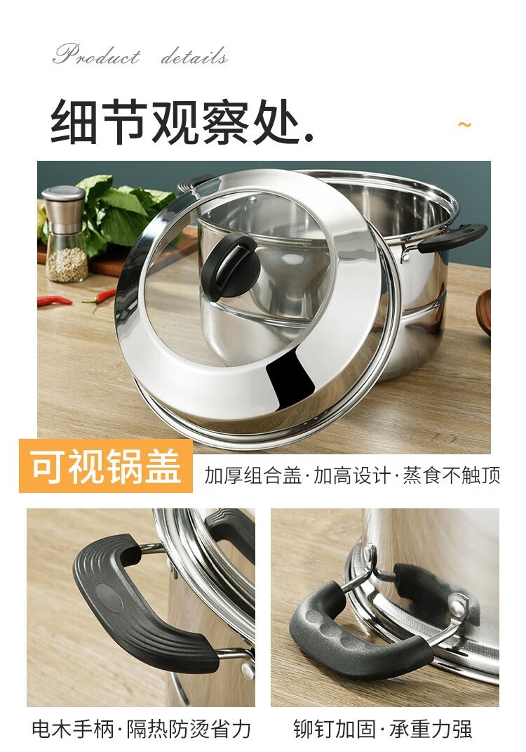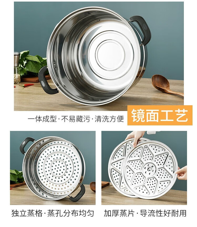 Baig steamer stainless steel pot home kitchen steamed buns fish crab two-layer soup steamer gas stove induction cooker universal double-layer steamer 2 layers 32cm
