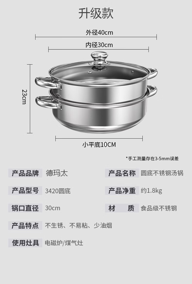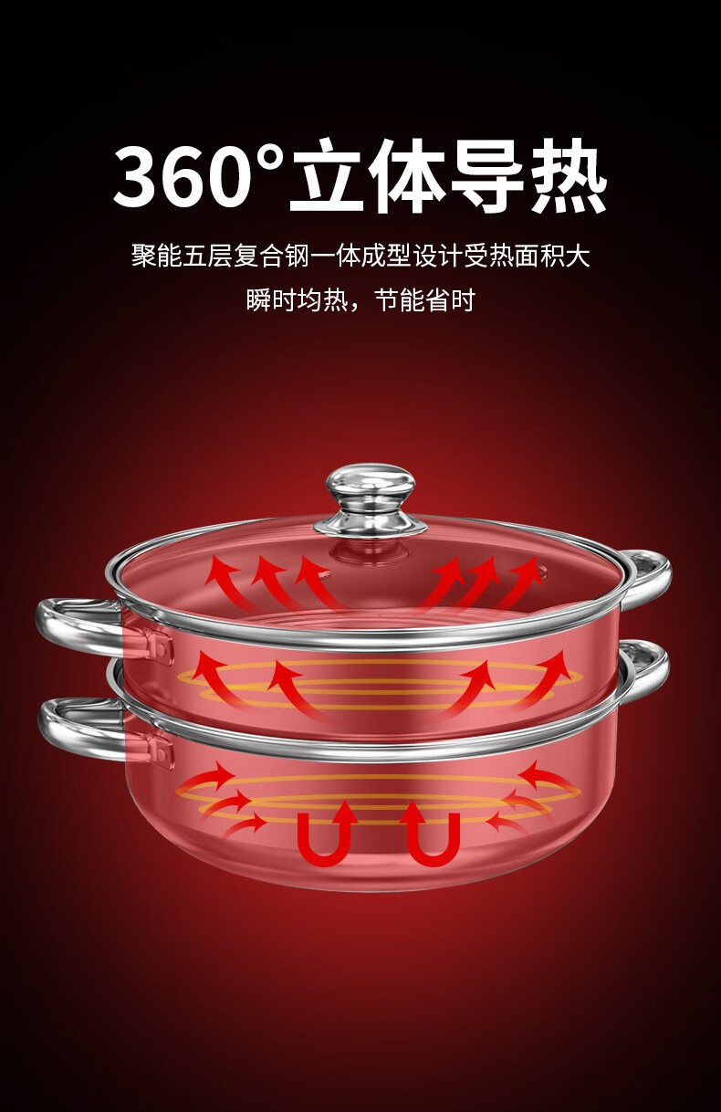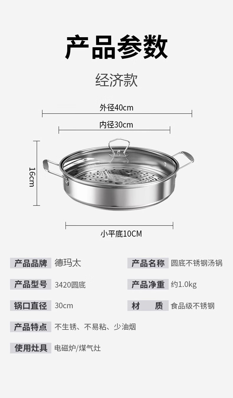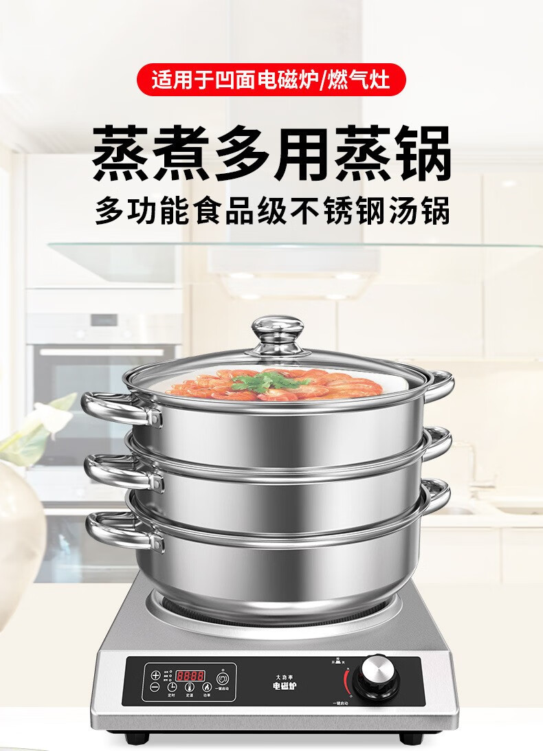 Concave induction cooker special soup pot steamer round bottom commercial induction cooker concave hot pot 316 stainless steel steamer single layer soup pot ordinary style free steaming sheet 30cm
