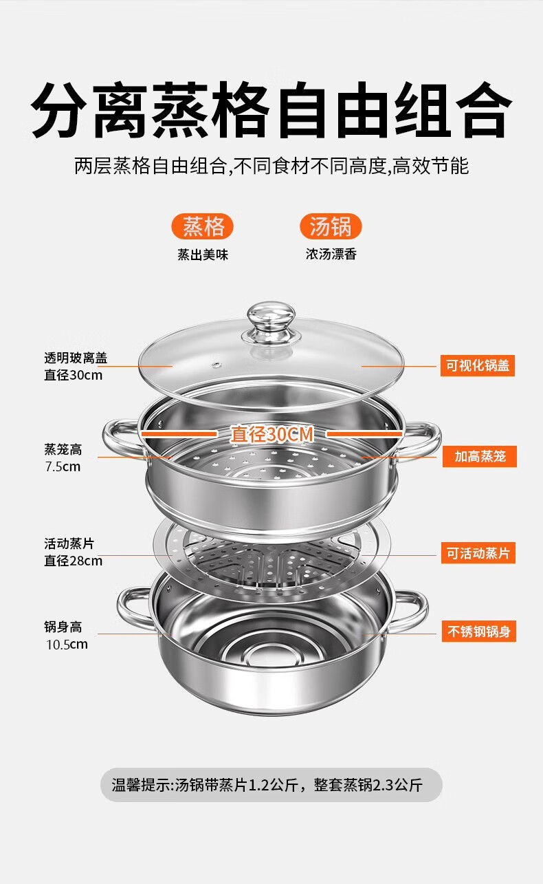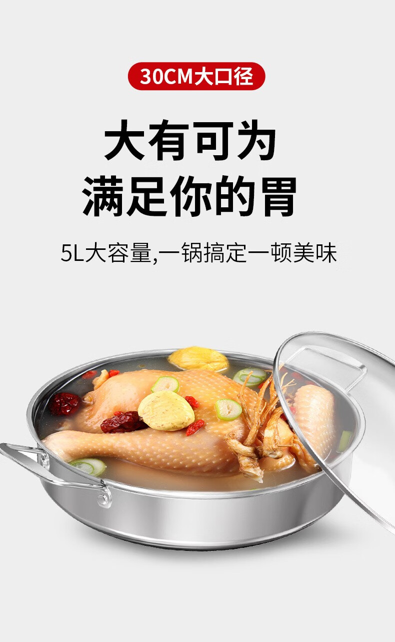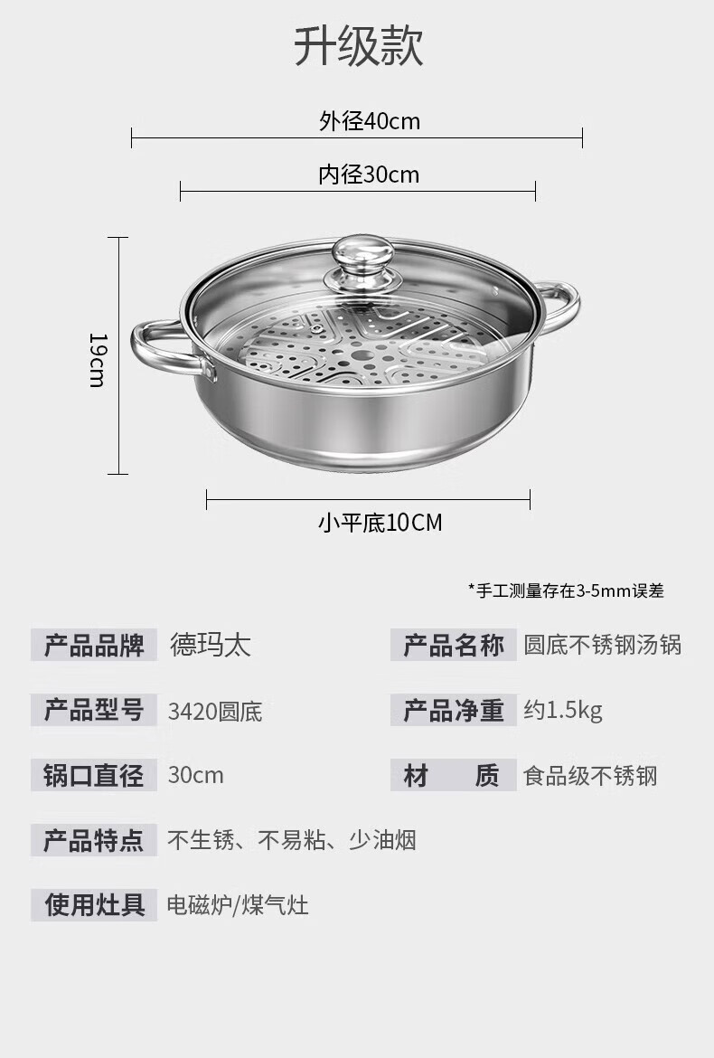 Concave induction cooker special soup pot steamer round bottom commercial induction cooker concave hot pot 316 stainless steel steamer single layer soup pot ordinary style free steaming sheet 30cm