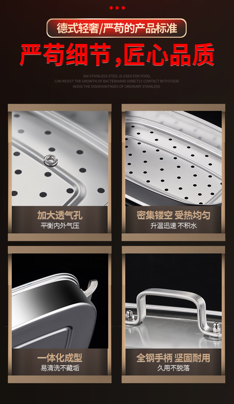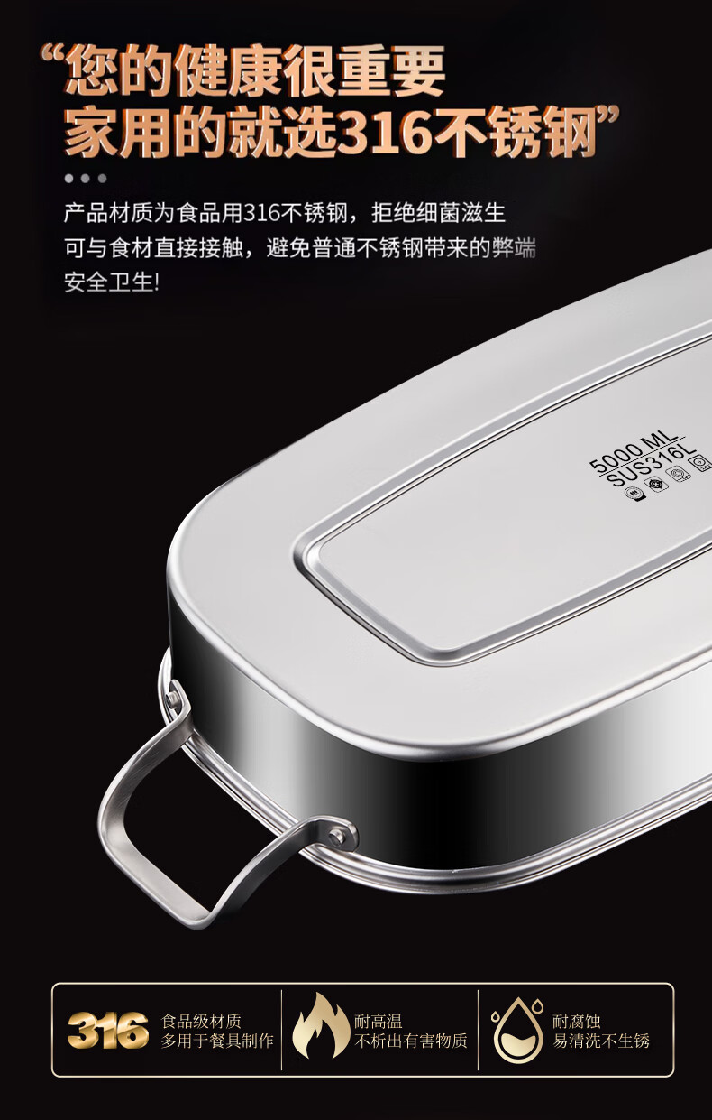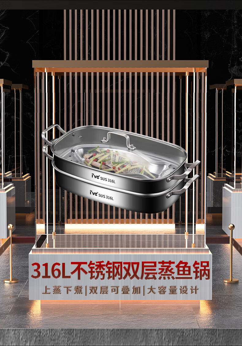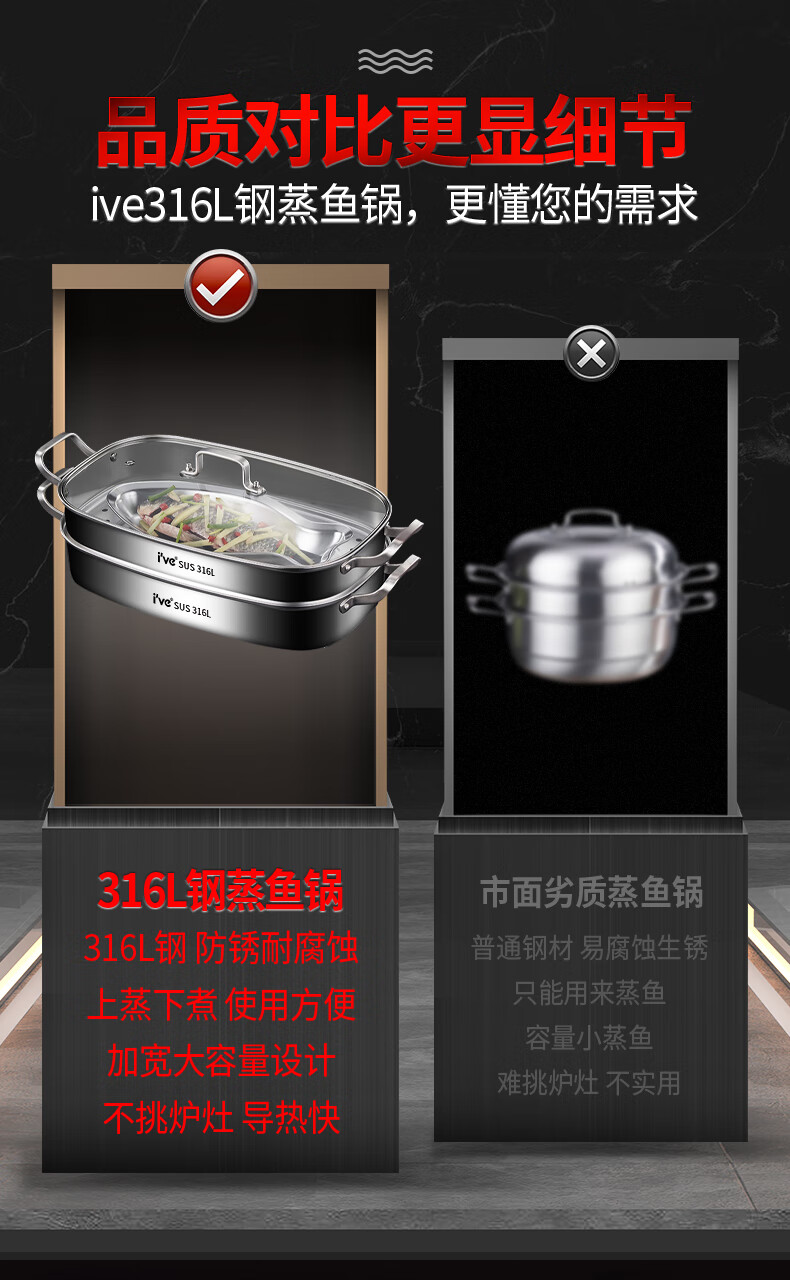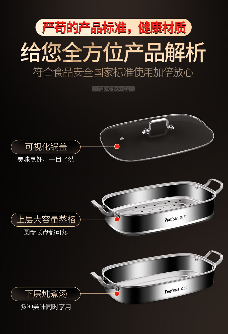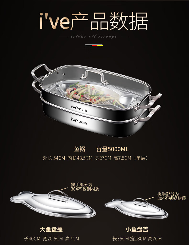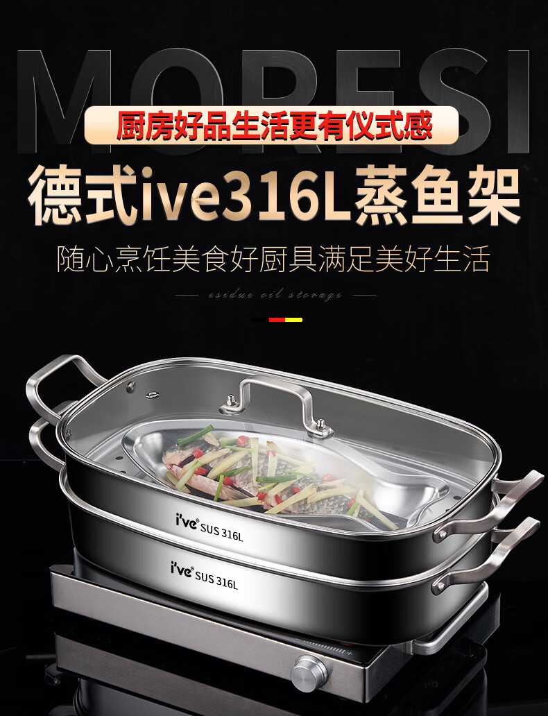 I VE316 stainless steel fish steamer household large-capacity fish steamer artifact special steamer steamer for steamed buns induction cooker gas stove German 316L extra thick double-layer fish pot 43cm
