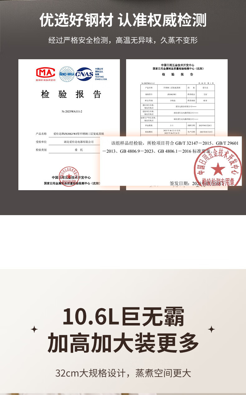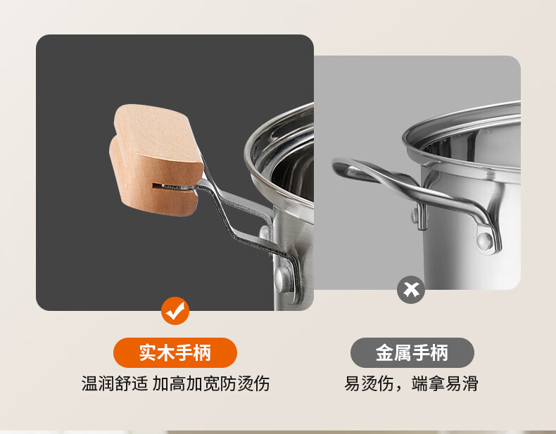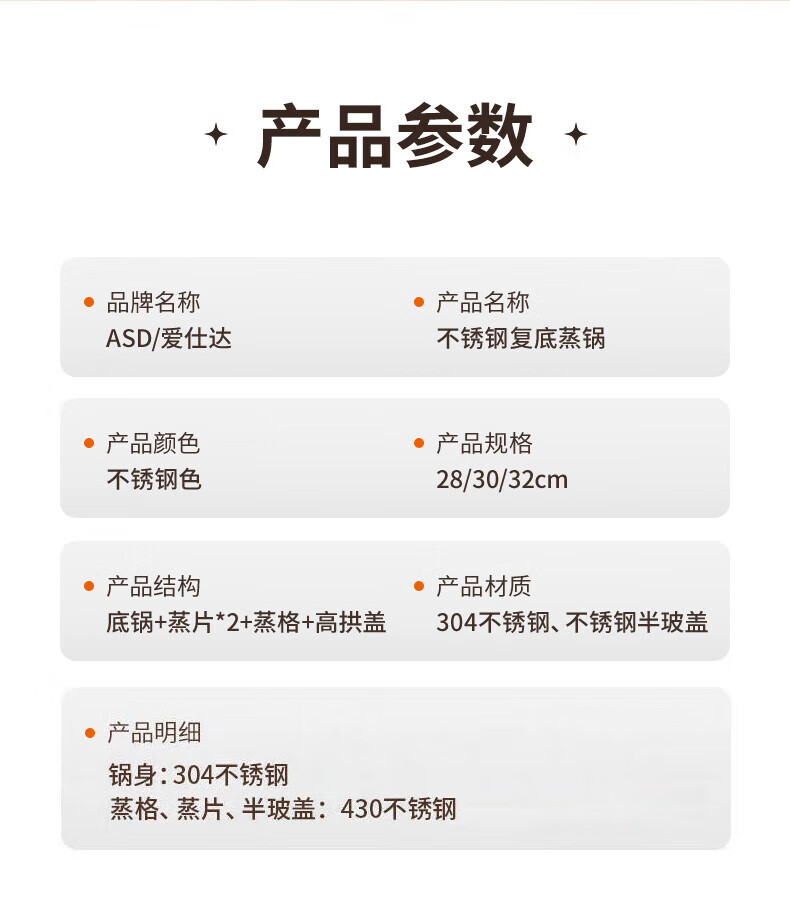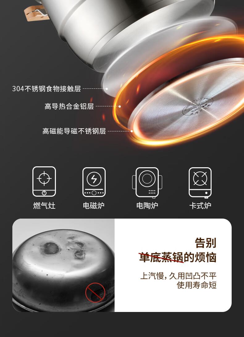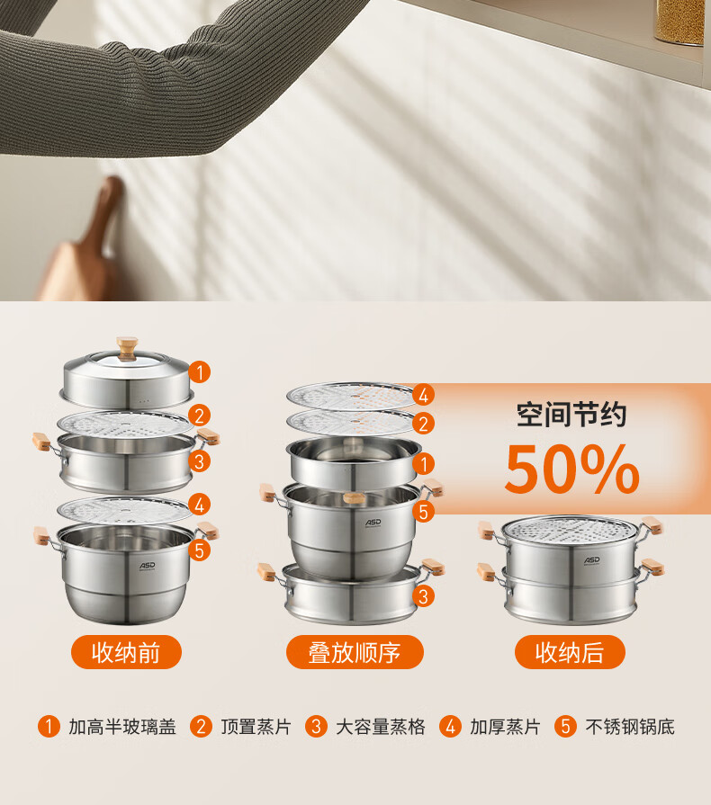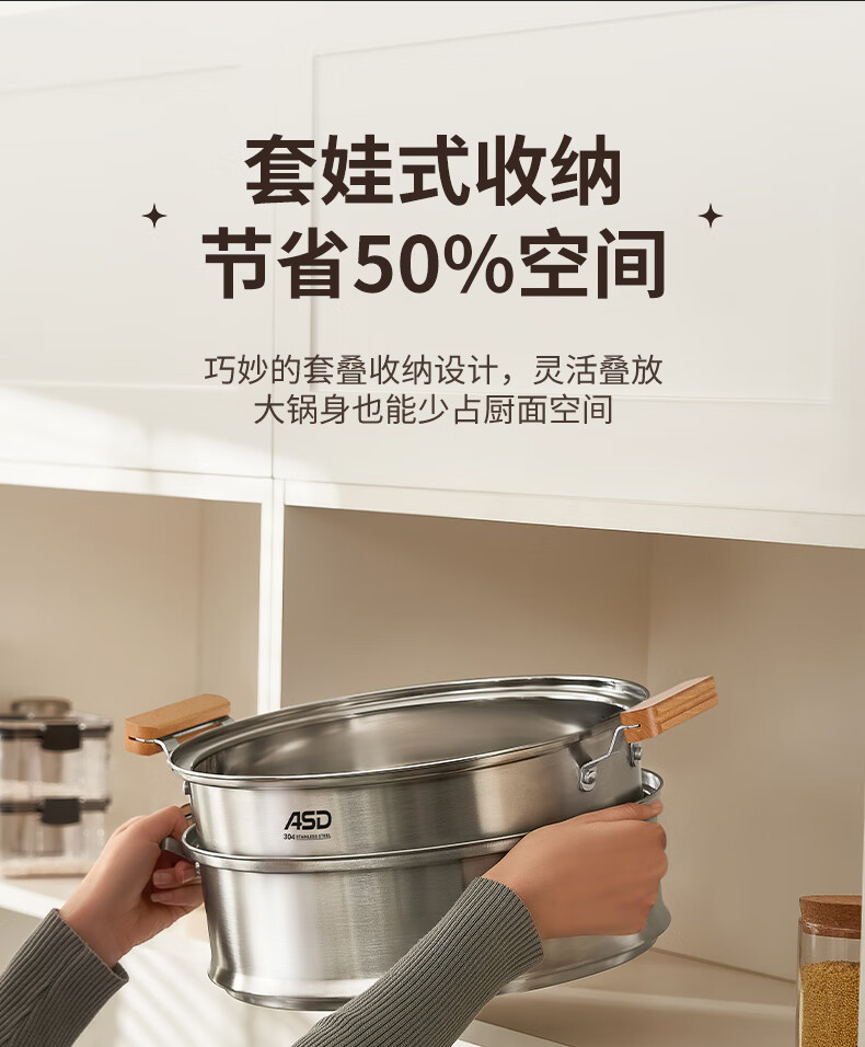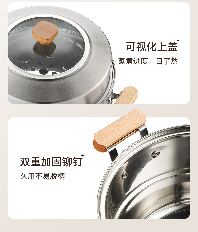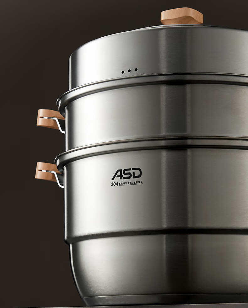 Aistar steamer 304 stainless steel thickened large capacity kitchen household double bottom steamed bun pot gas induction cooker universal heightened double-layer steamer 28cm