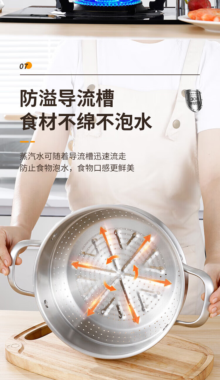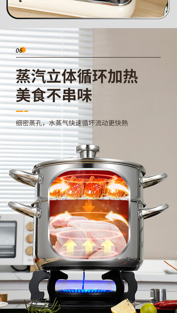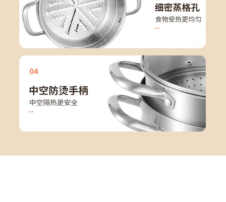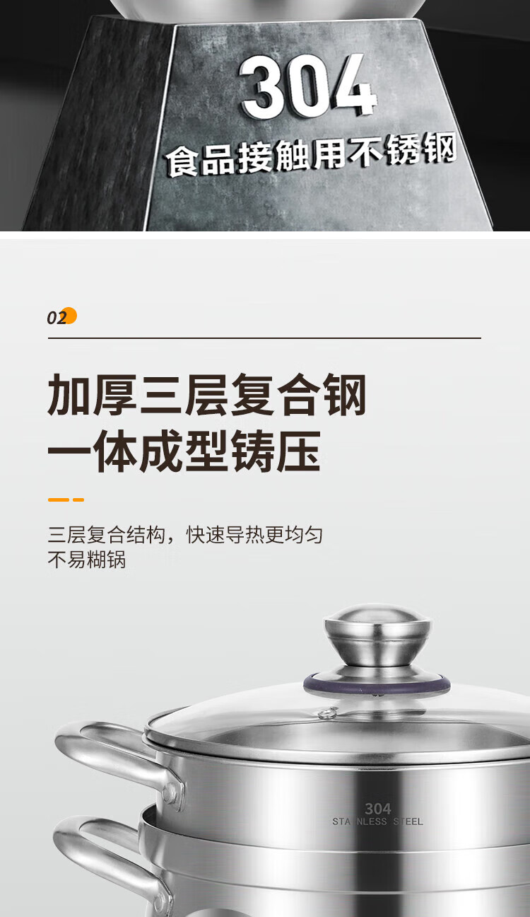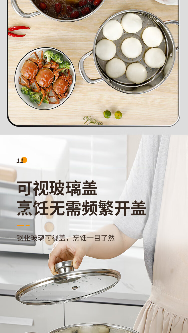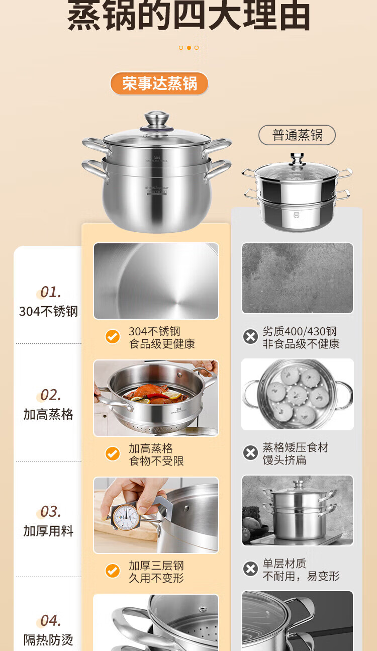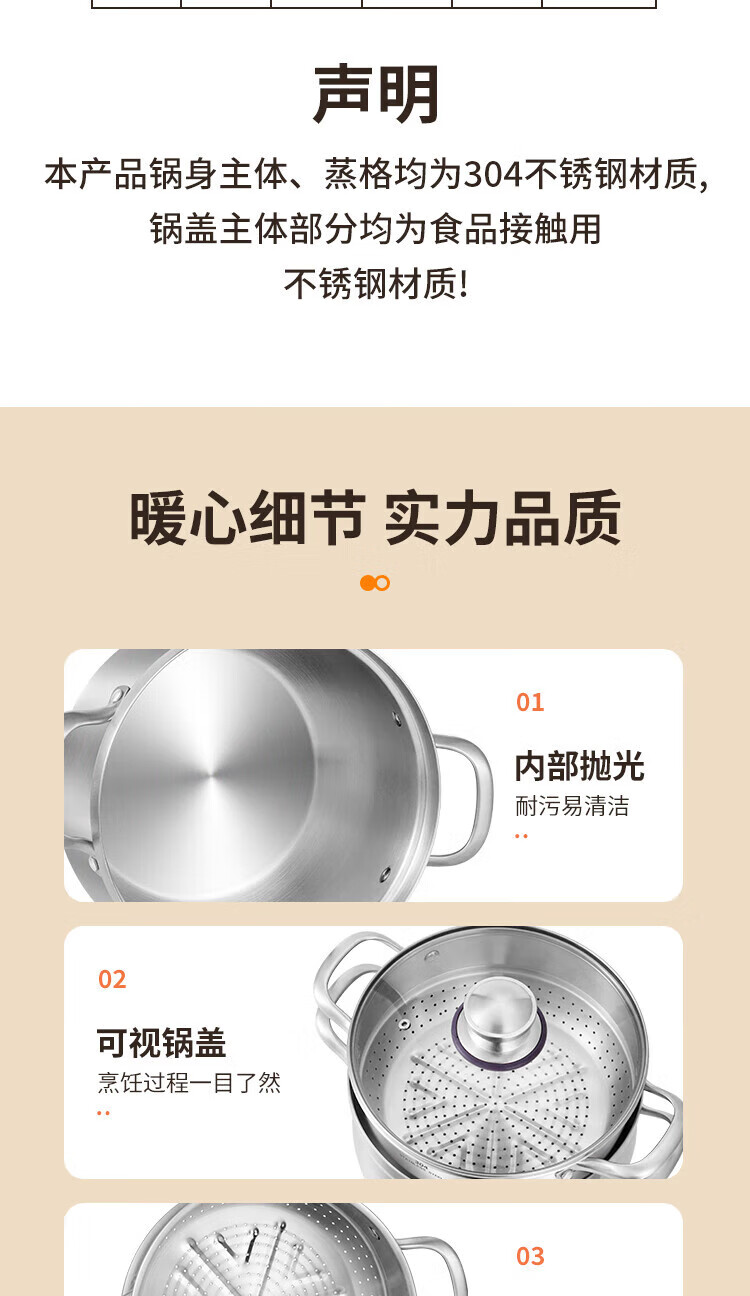 Royalstar steamer household stainless steel pot steamer thickened double bottom soup pot gas induction cooker universal steaming dual-purpose double-layer steamer 22cm