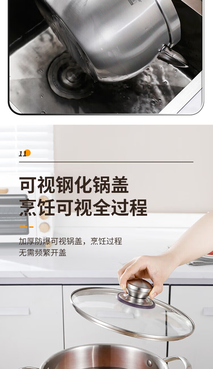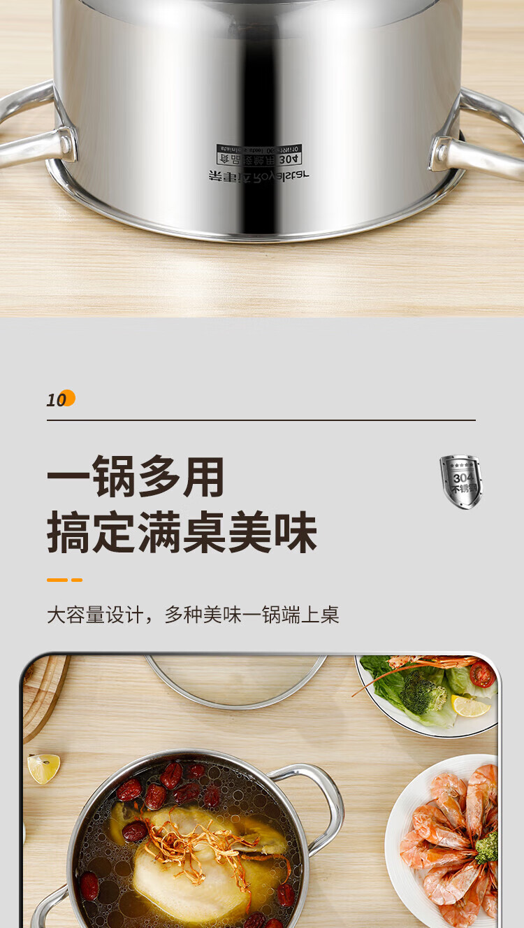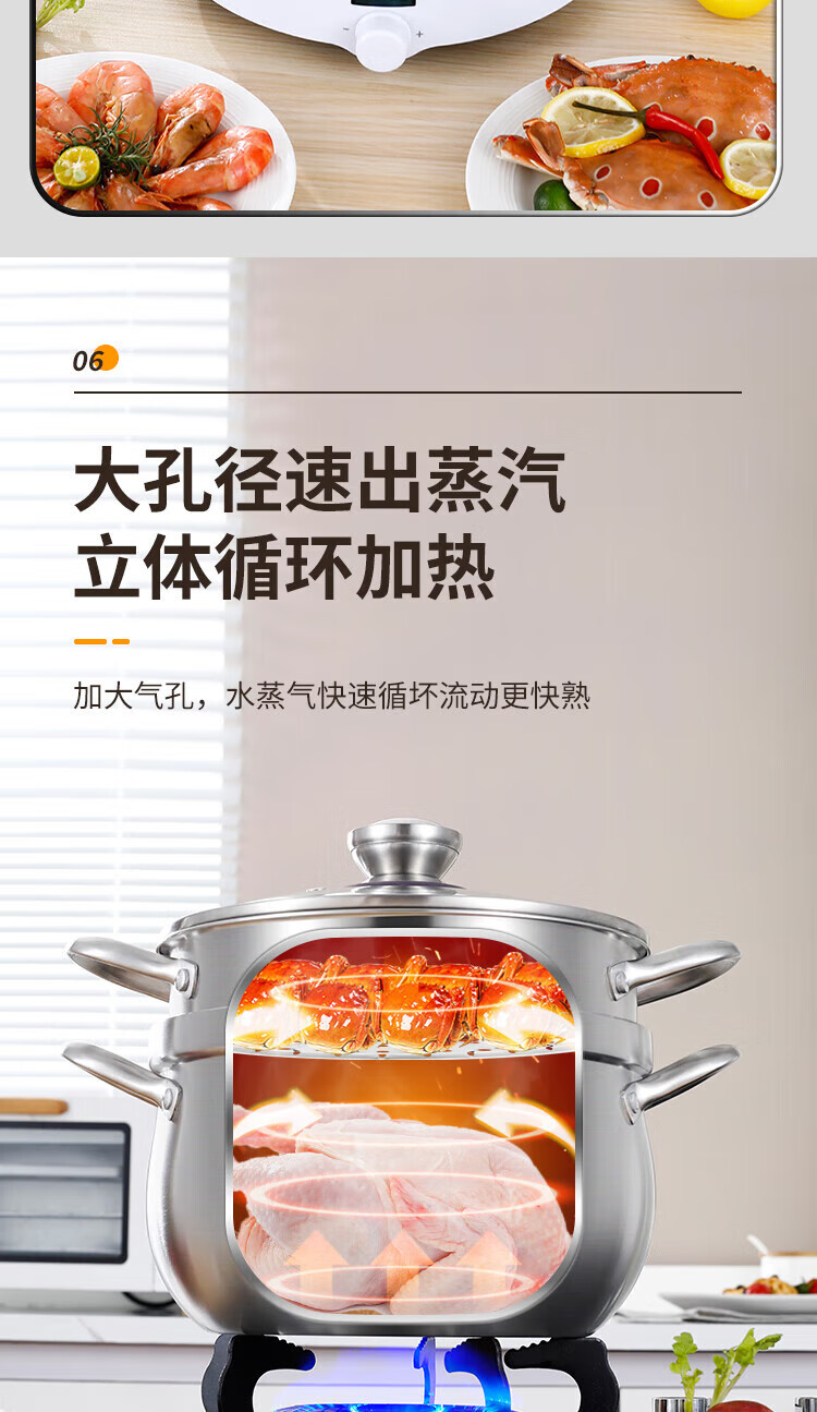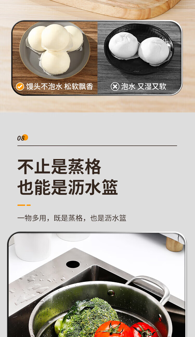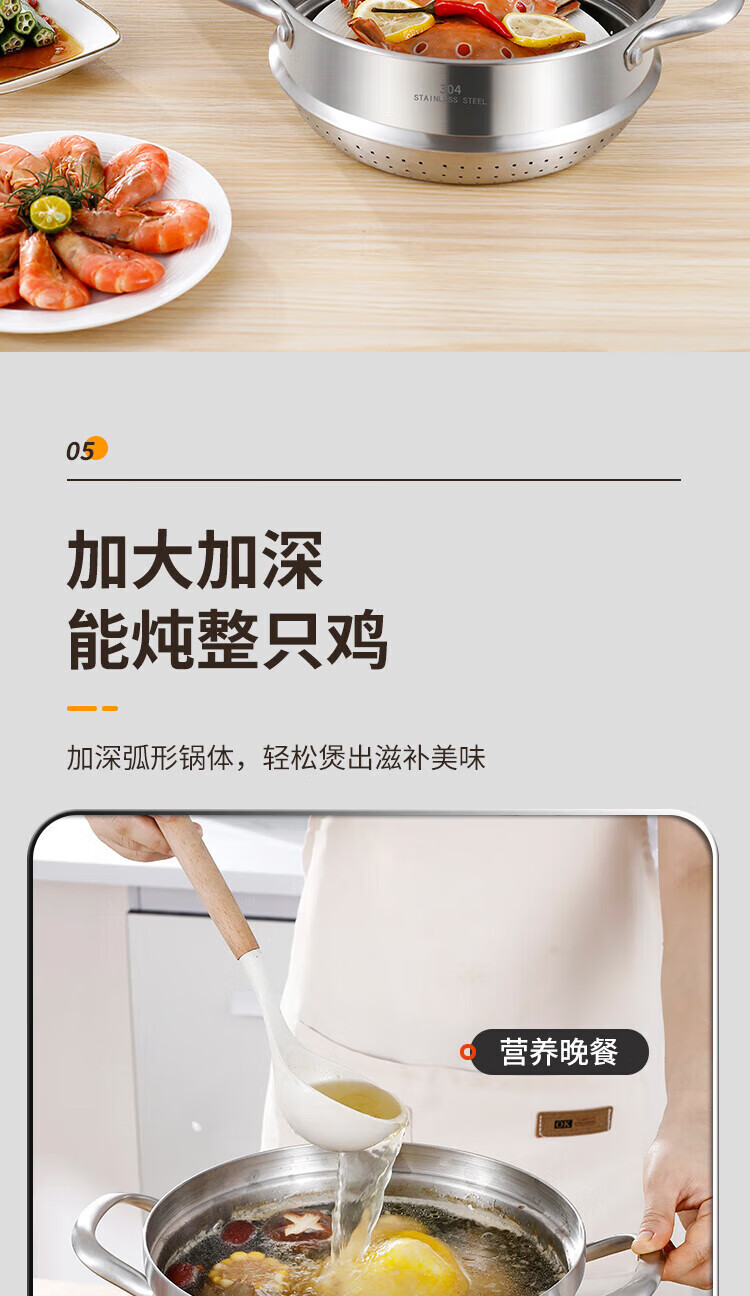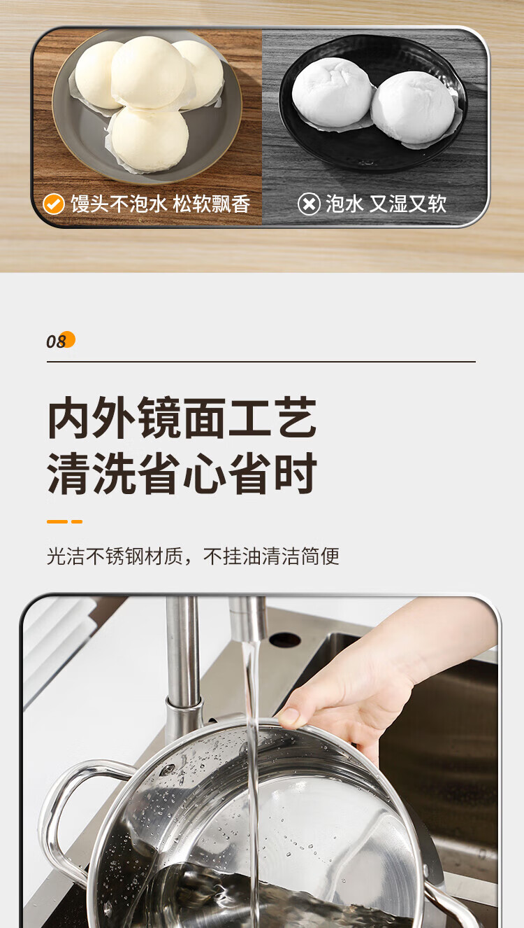Royalstar steamer household stainless steel pot steamer thickened double bottom soup pot gas induction cooker universal steaming dual-purpose double-layer steamer 22cm