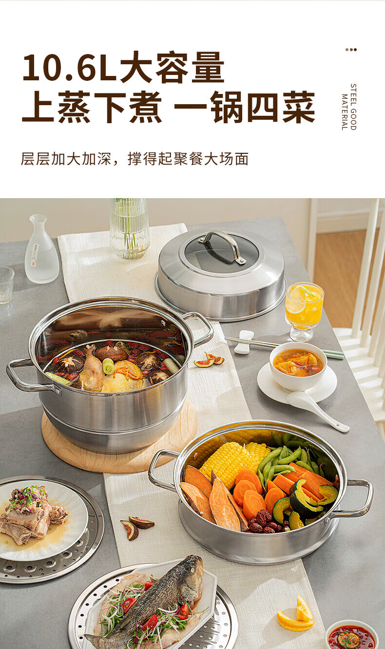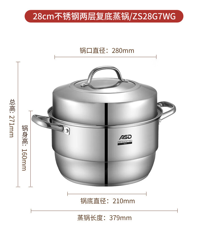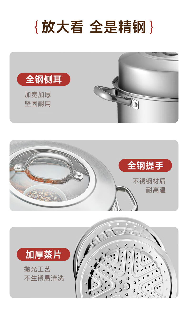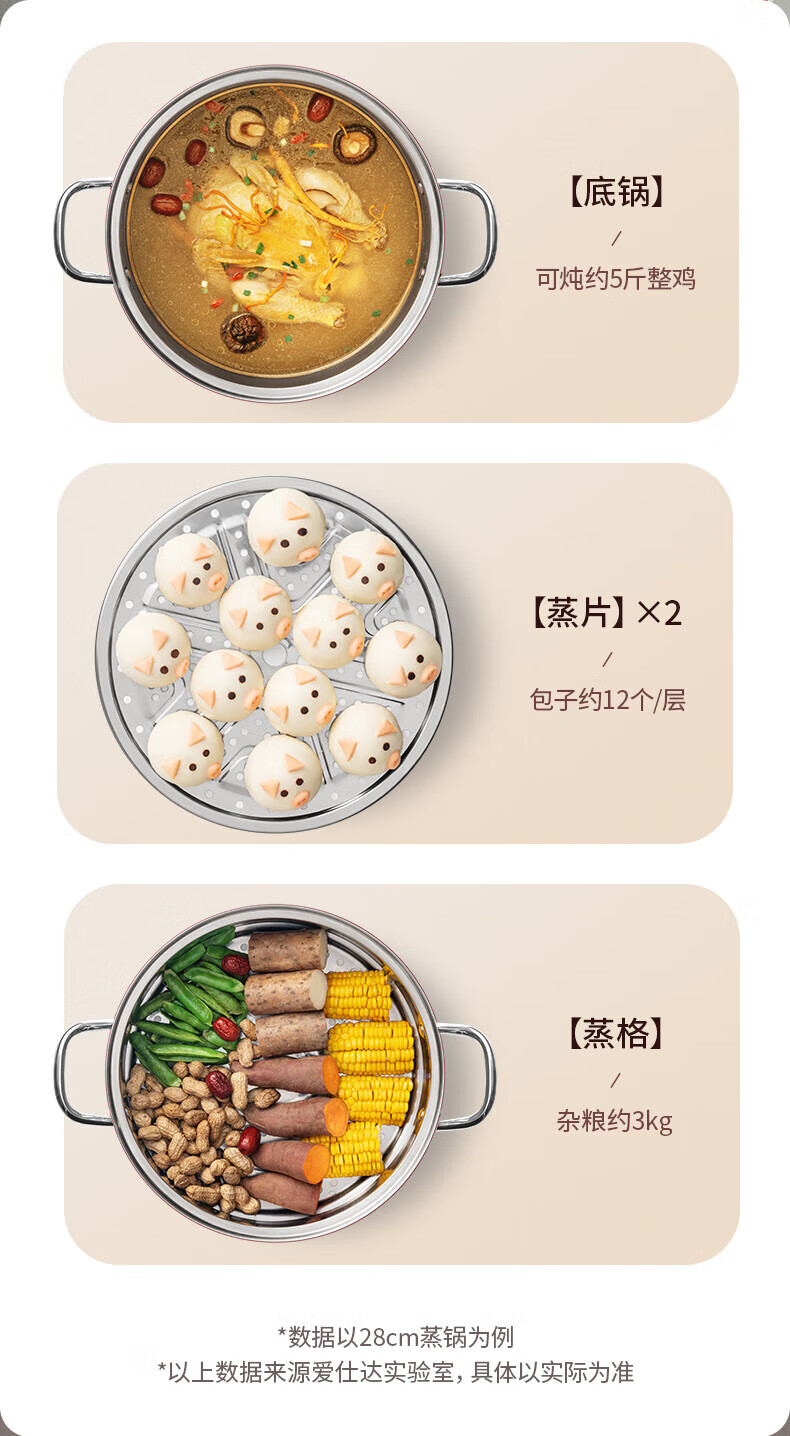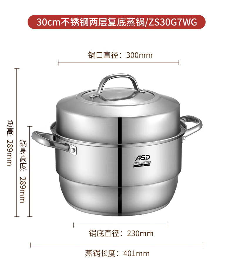 ASD (ASD) 304 stainless steel steamer, gas stove, induction cooker, universal steamer for steamed buns, steamed buns, household fish steamer, thickened pot, large three-layer steamer, 32cm