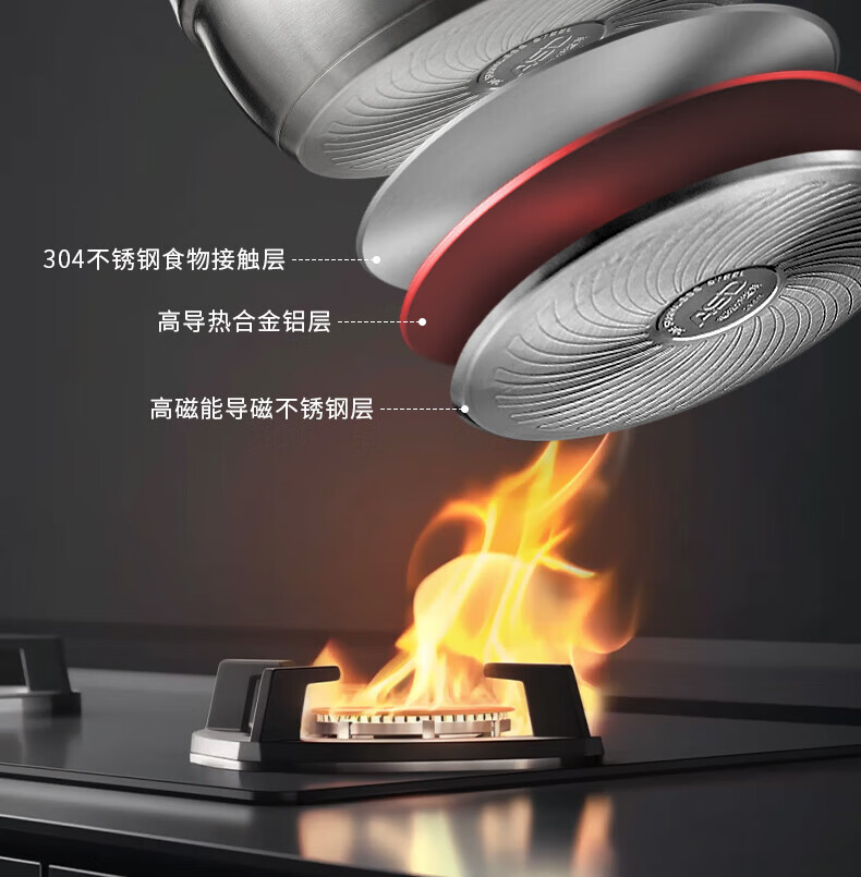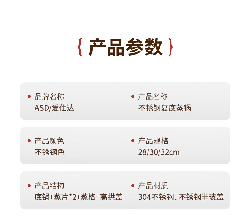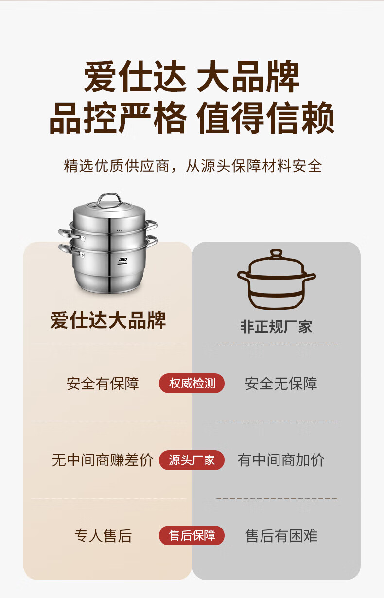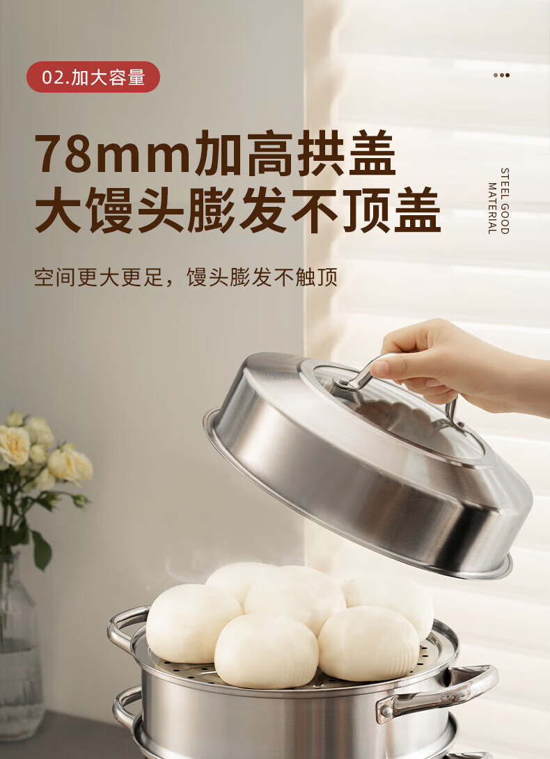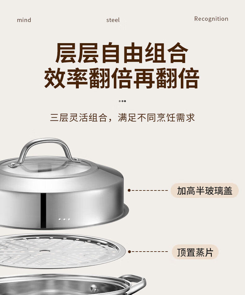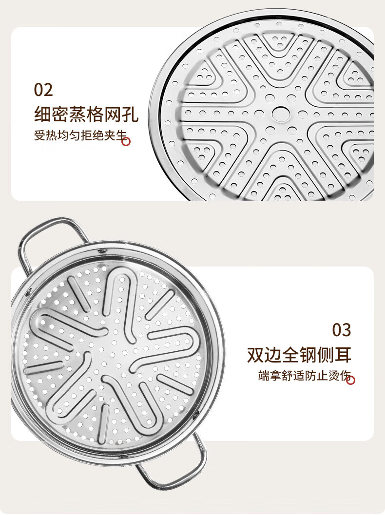 ASD (ASD) 304 stainless steel steamer, gas stove, induction cooker, universal steamer for steamed buns, steamed buns, household fish steamer, thickened pot, large three-layer steamer, 32cm
