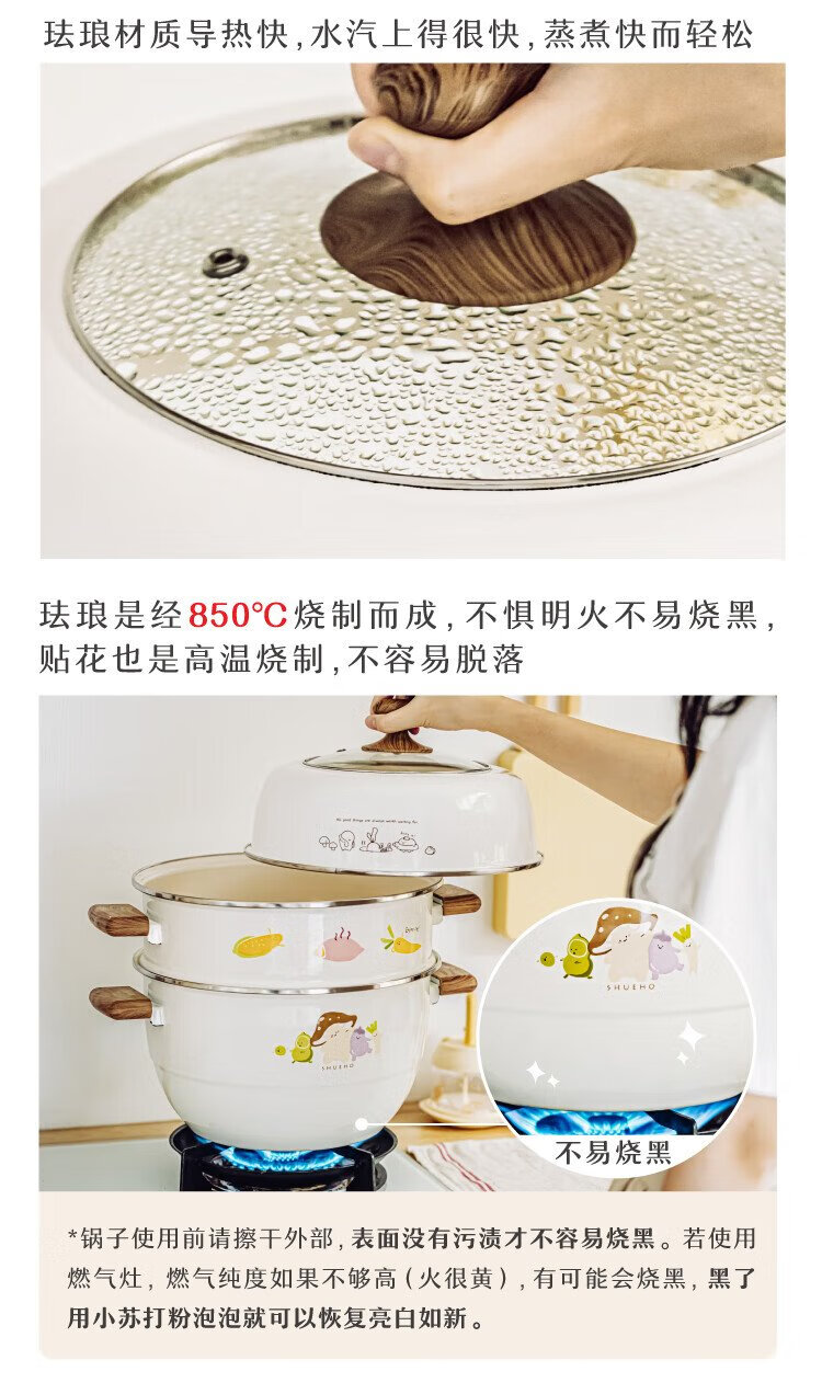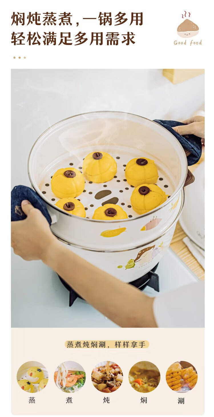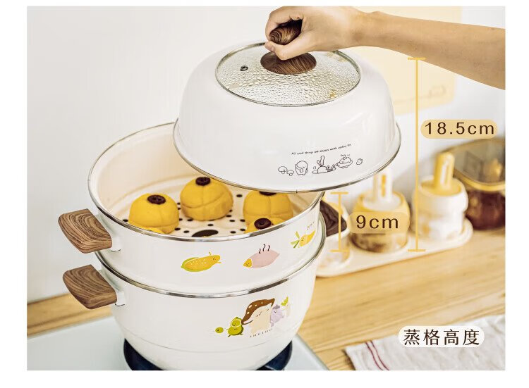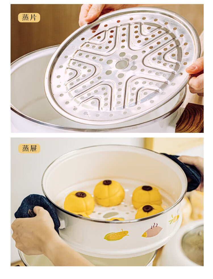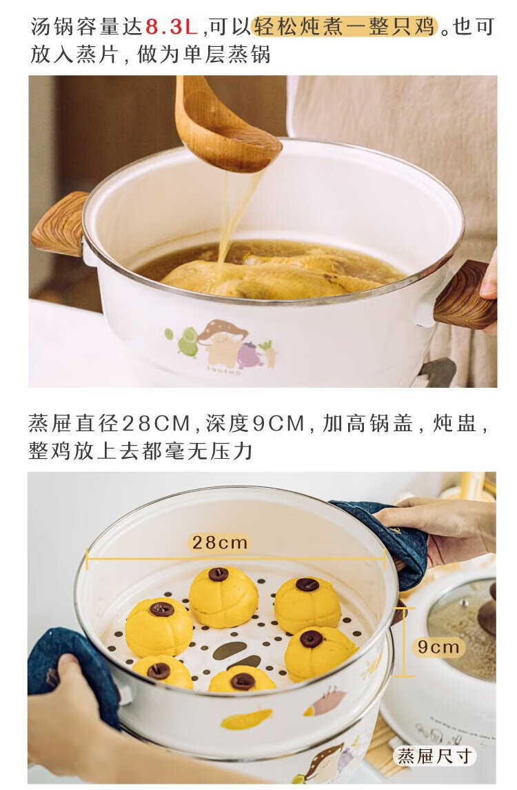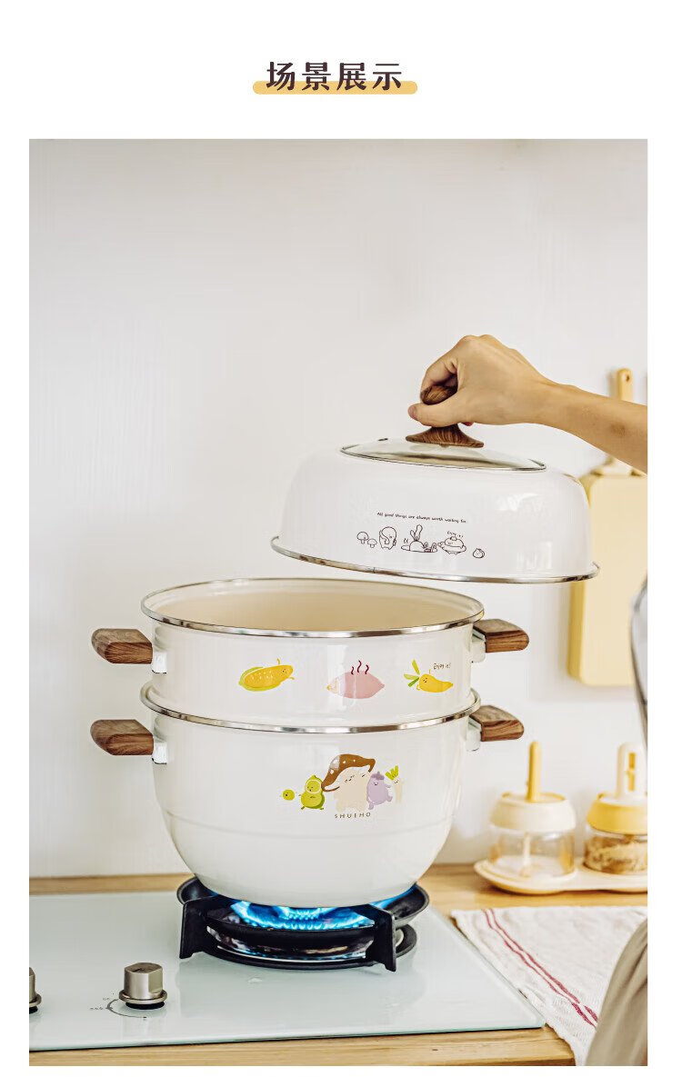 Shuke Yuanqi vegetable enamel steamer household steaming, cooking and stewing all-in-one gas induction cooker universal super large capacity double layer with steamer 28cm steamer single pot + single layer steamer 28cm