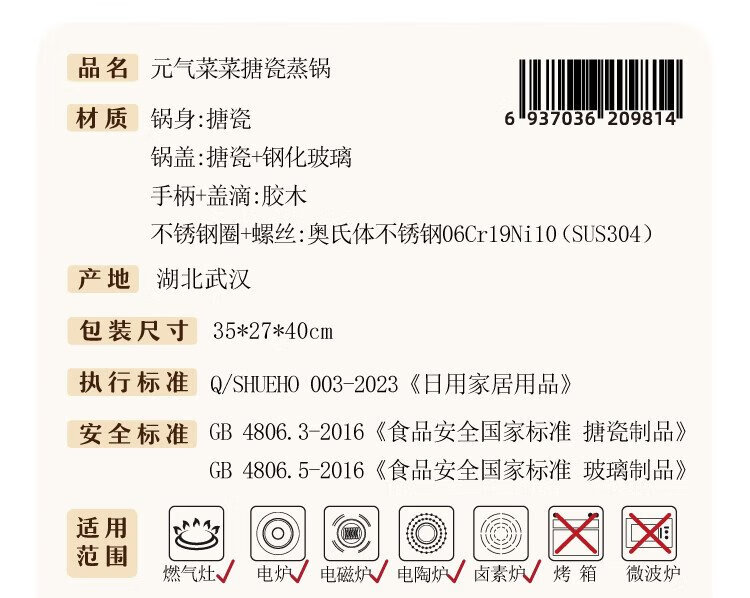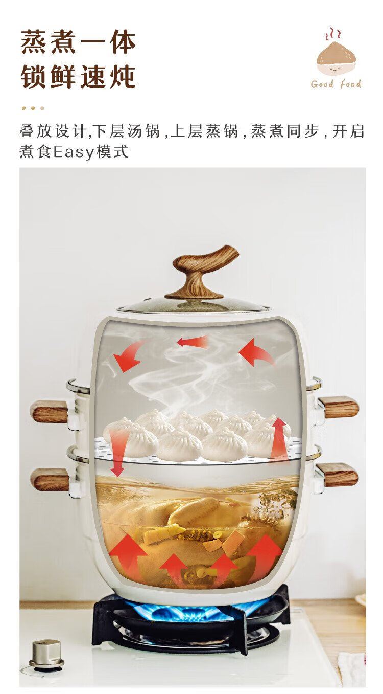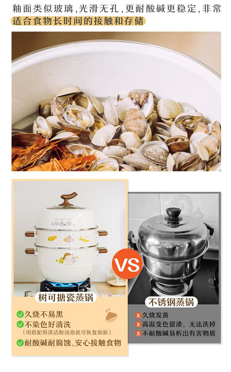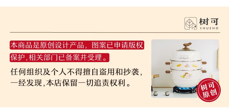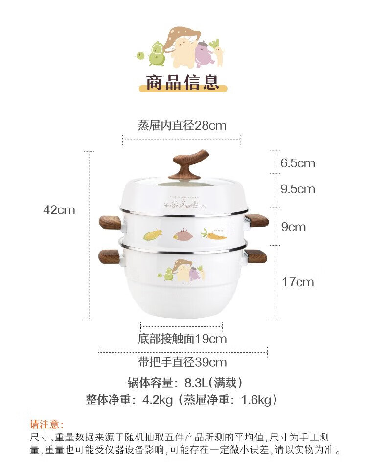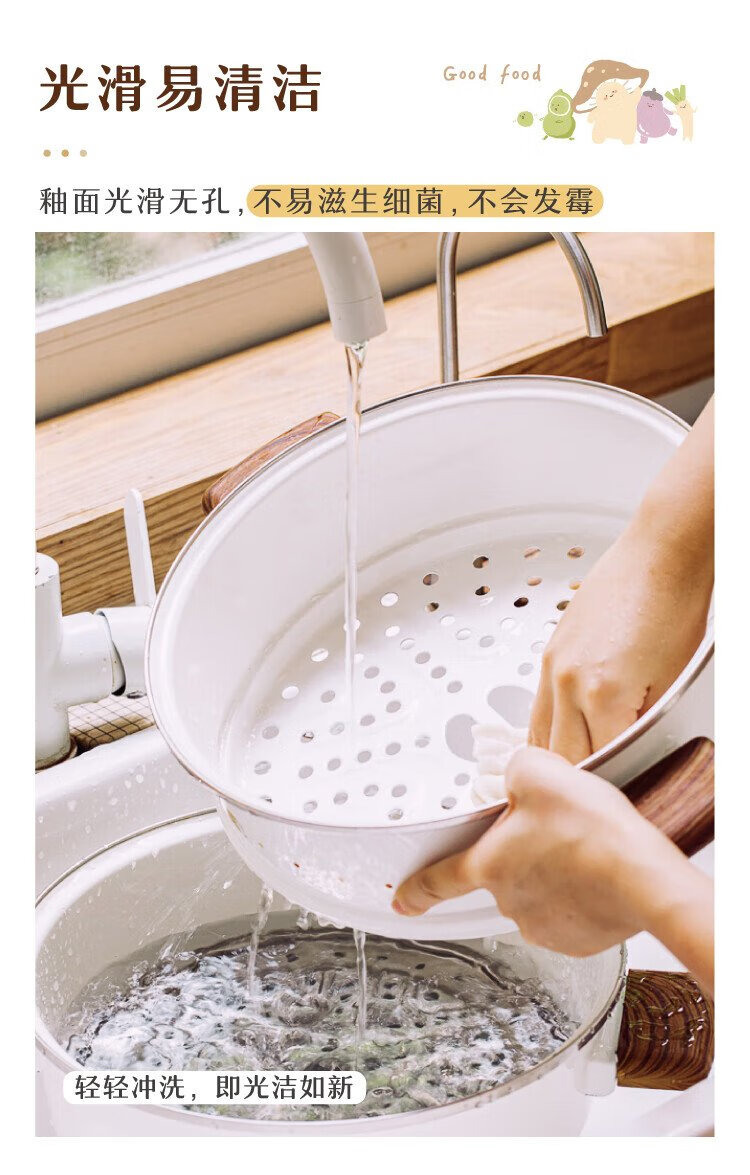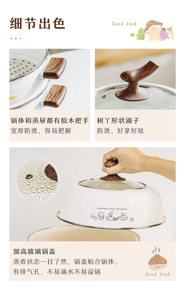 Shuke Yuanqi vegetable enamel steamer household steaming, cooking and stewing all-in-one gas induction cooker universal super large capacity double layer with steamer 28cm steamer single pot + single layer steamer 28cm
