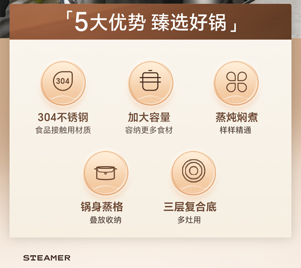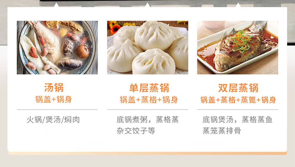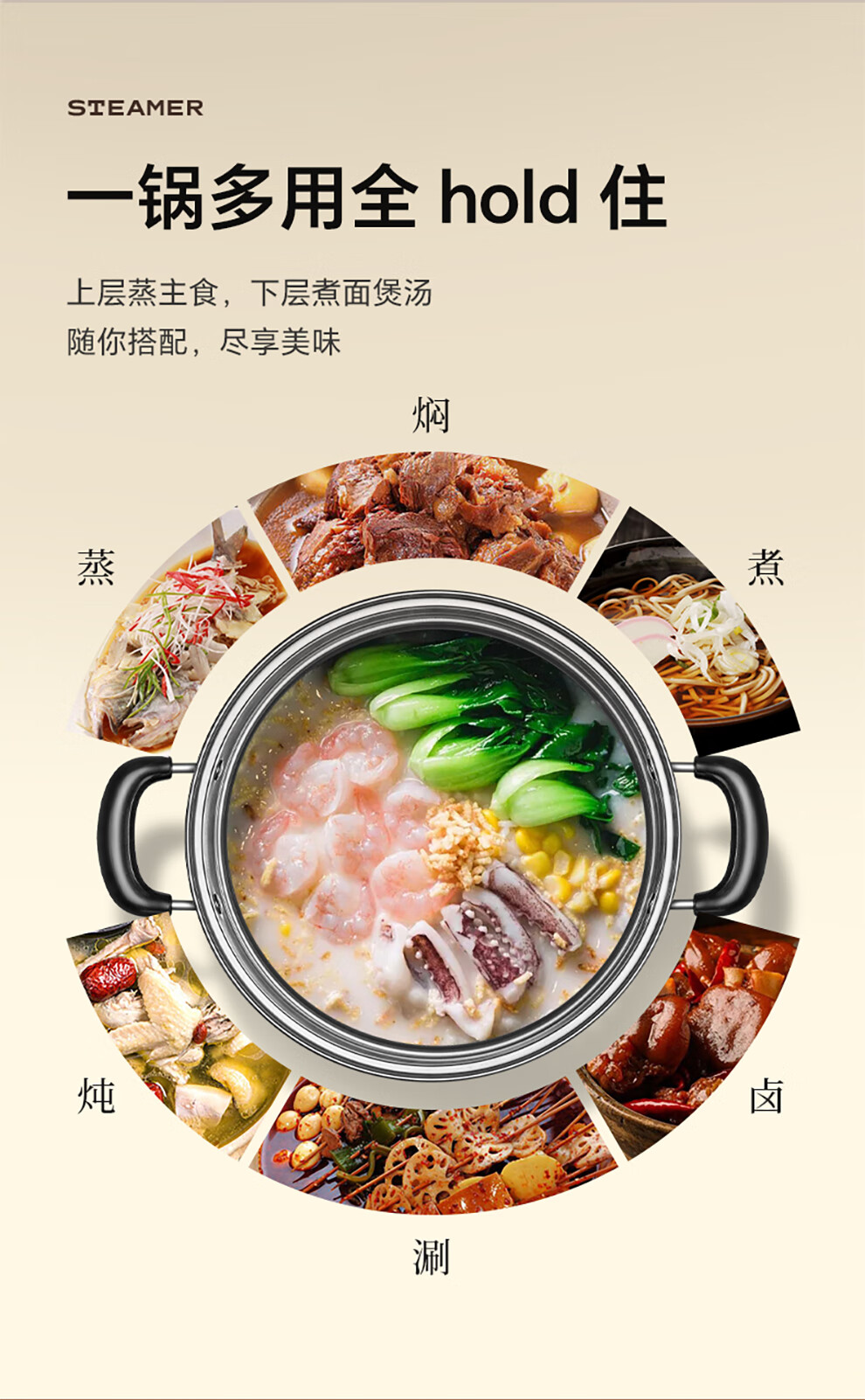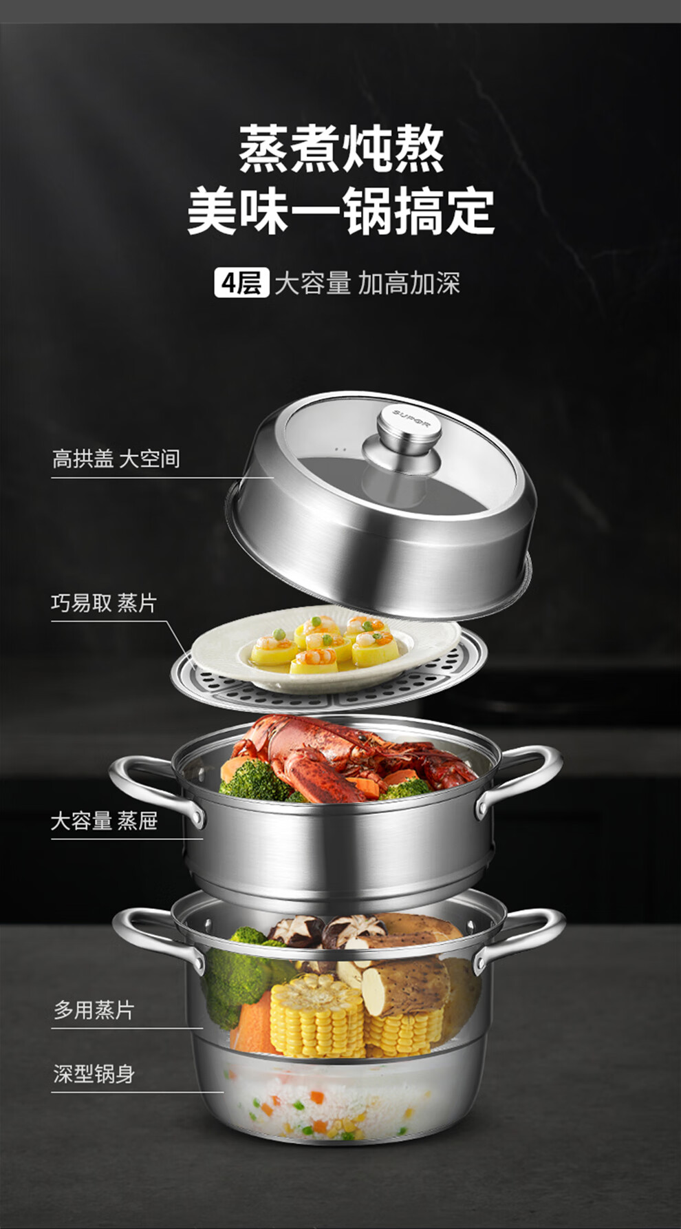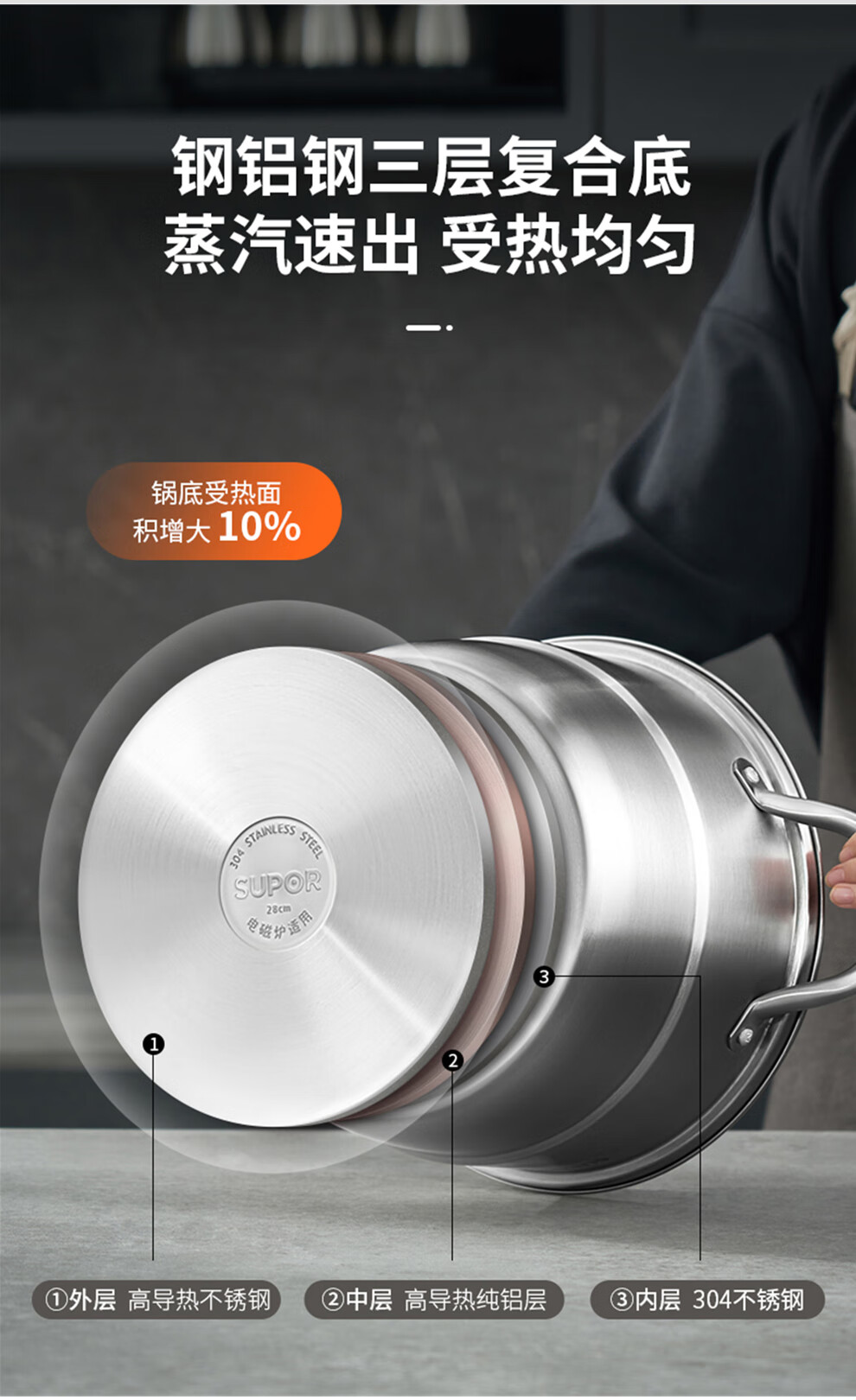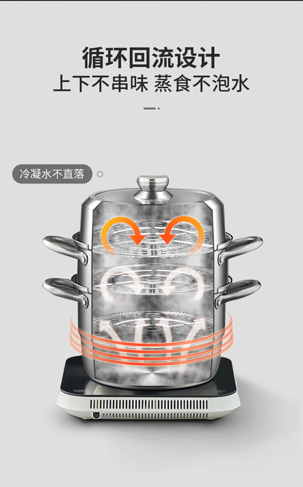 Supor steamer three-layer multi-bottom 304 stainless steel large-capacity basket soup pot double-layer 3-layer large steamer steamer steamer pot universal three-layer multi-bottom steamer 32cm