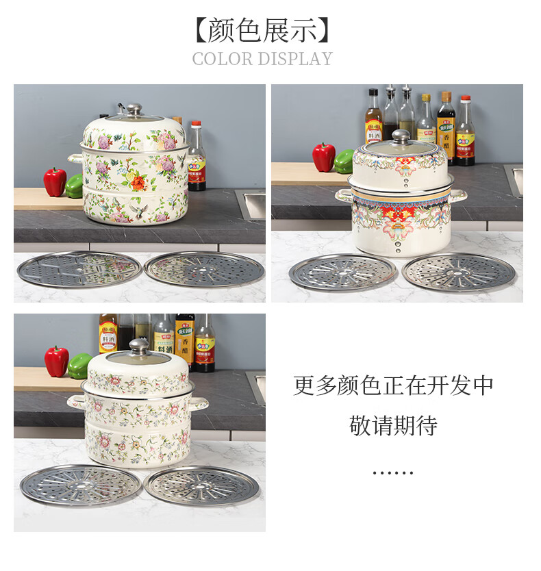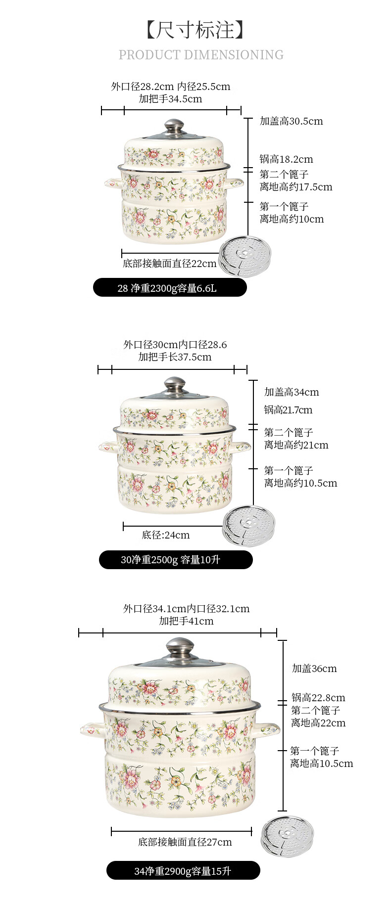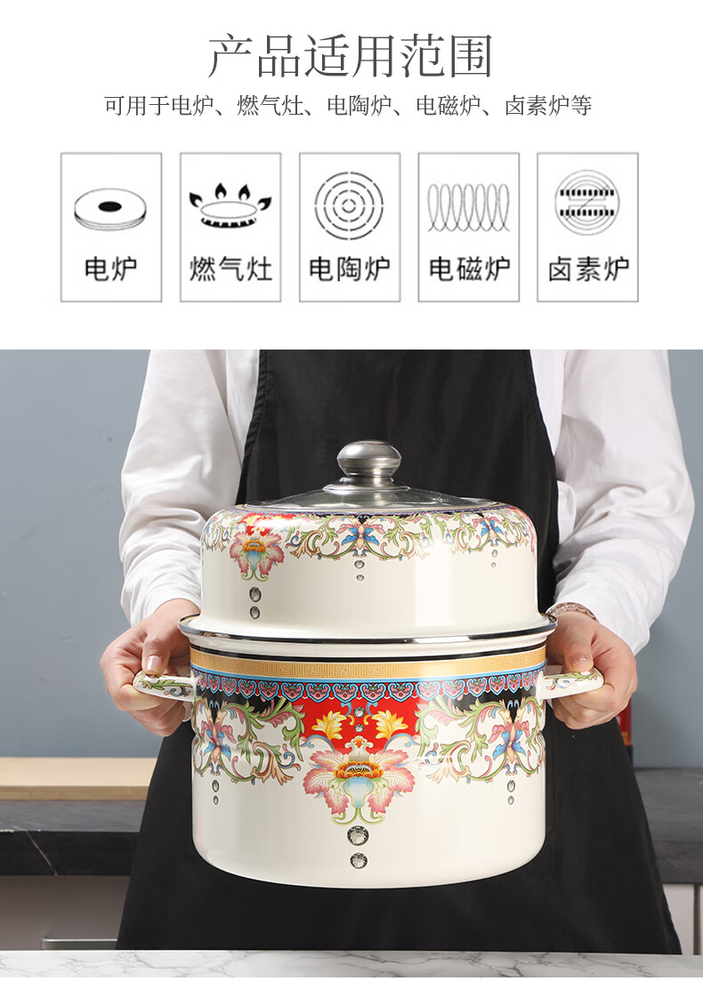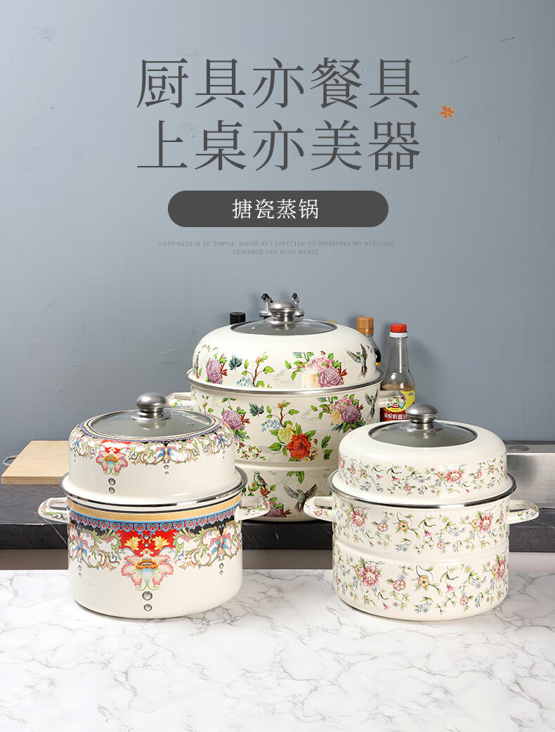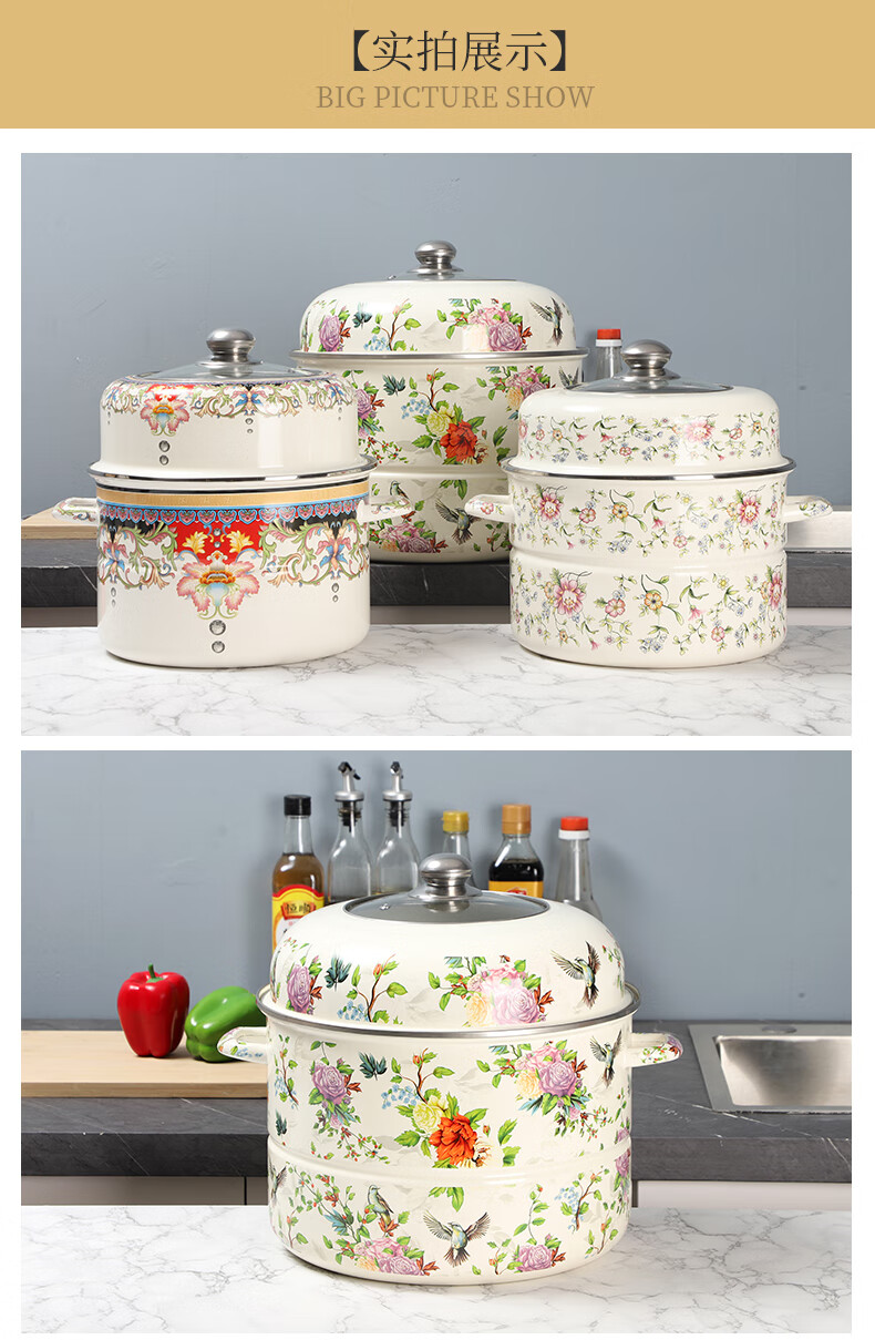 Oulijia enamel steamer with steaming grate, stew pot, soup pot, steamed buns, steamed buns, induction cooker, gas universal, aromatic - visible lid, 2 layers, 26cm