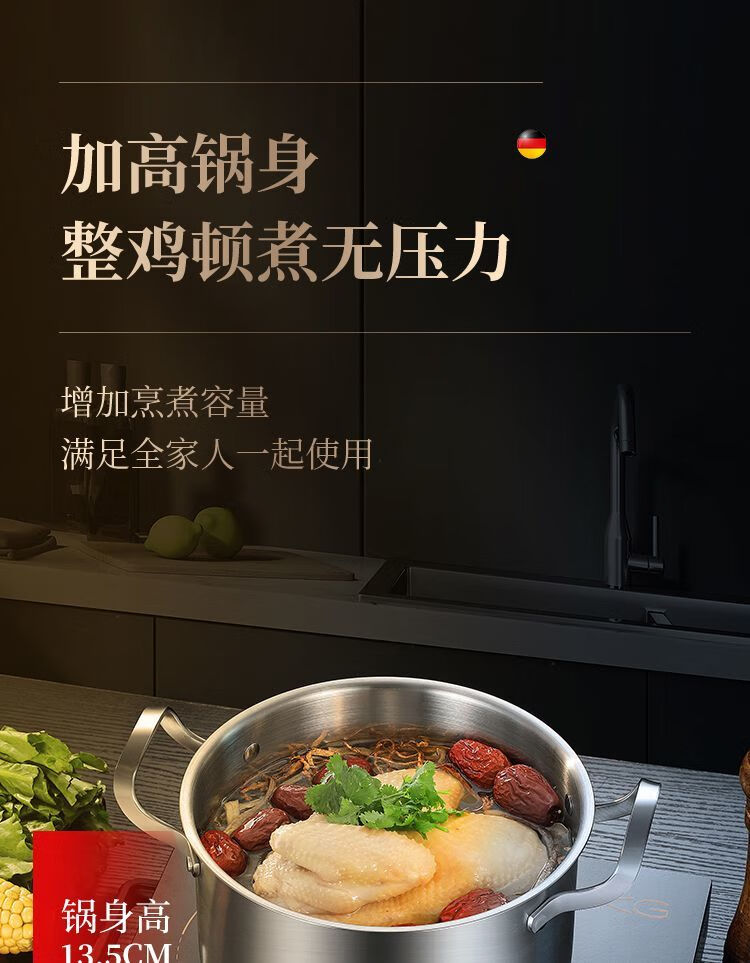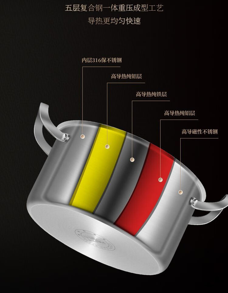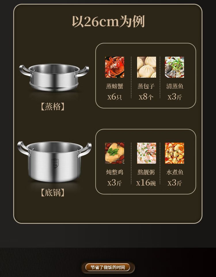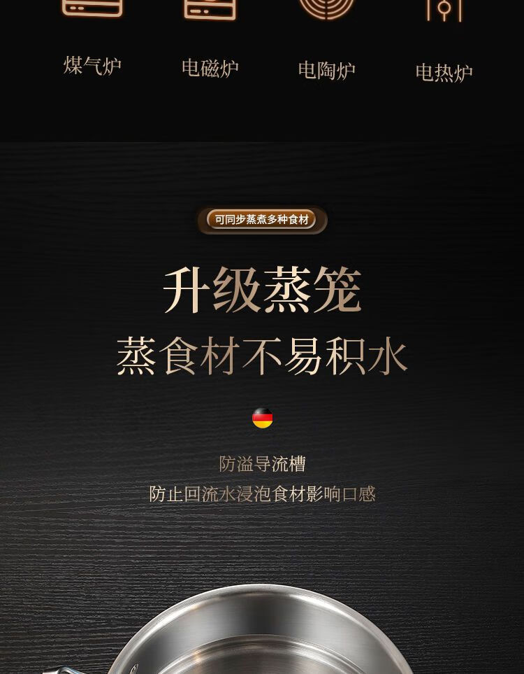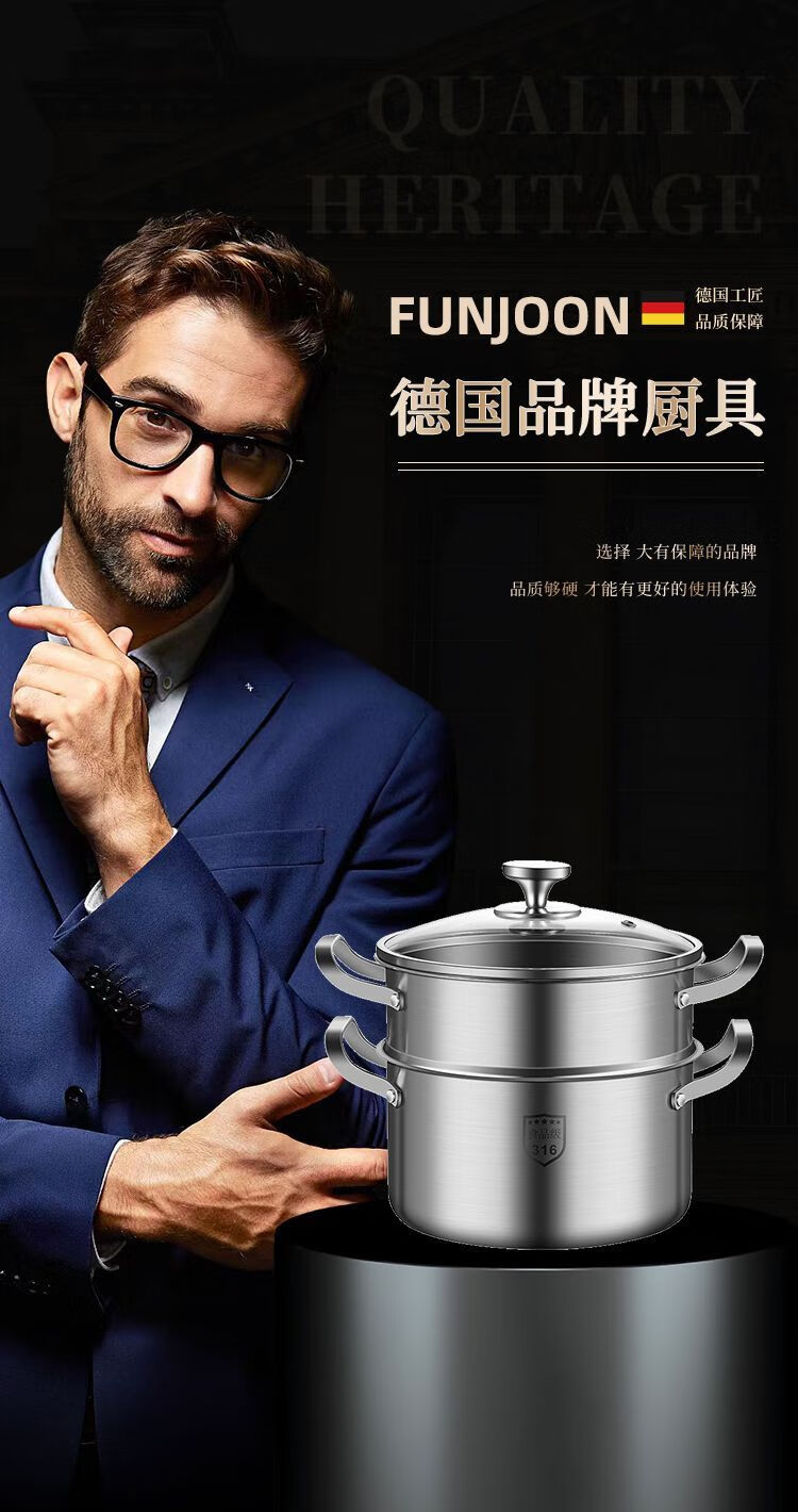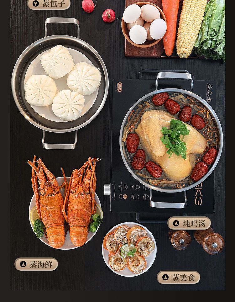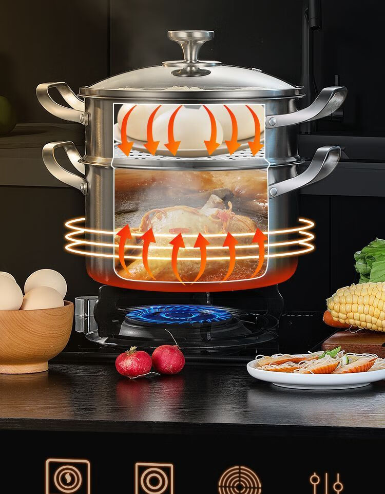 Billion Bear extra thick 316 stainless steel steamer gas stove double-layer soup pot household food-grade electric steamer stew and steam all-in-one double-layer soup steamer steel handle 28cm