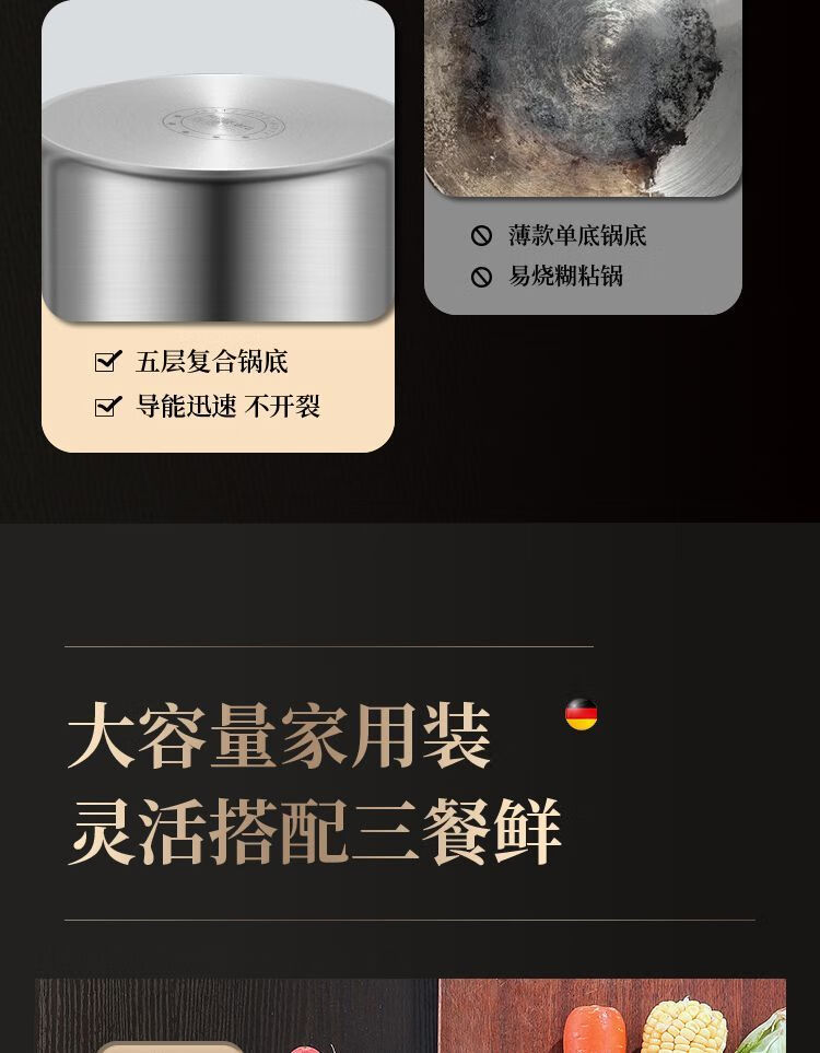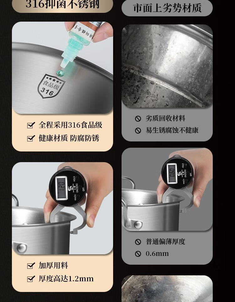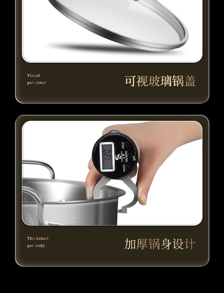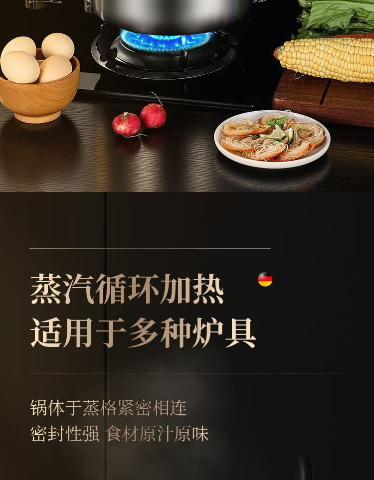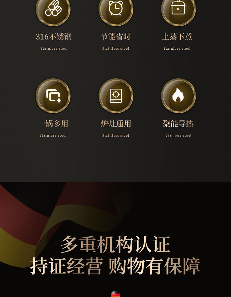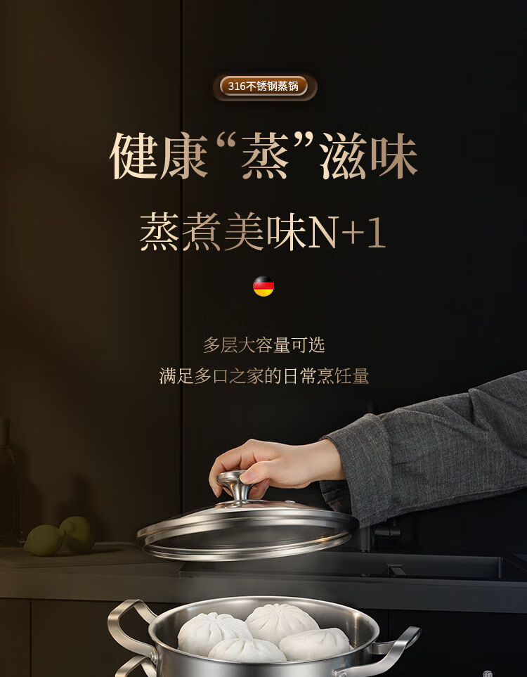 Billion Bear extra thick 316 stainless steel steamer gas stove double-layer soup pot household food-grade electric steamer stew and steam all-in-one double-layer soup steamer steel handle 28cm