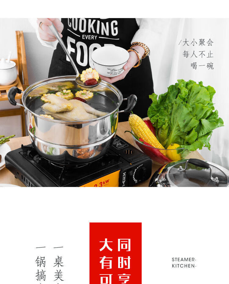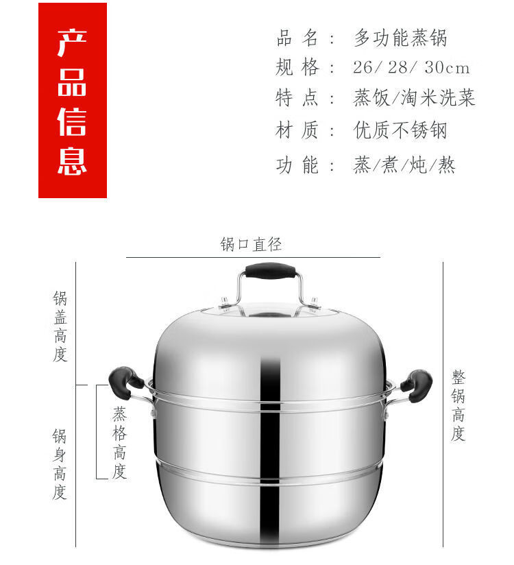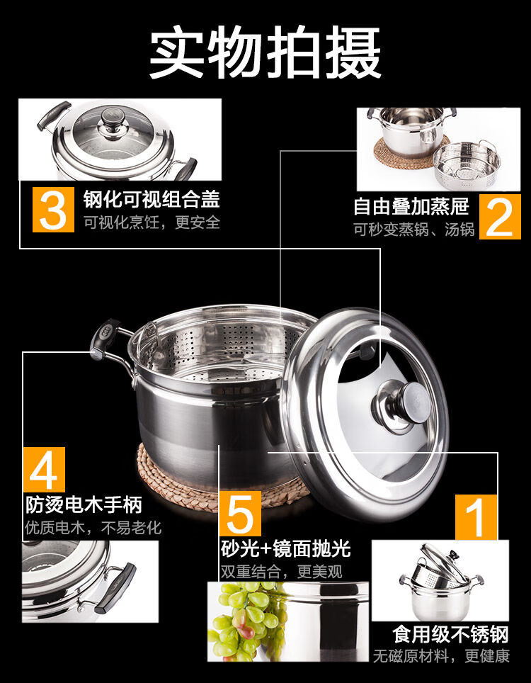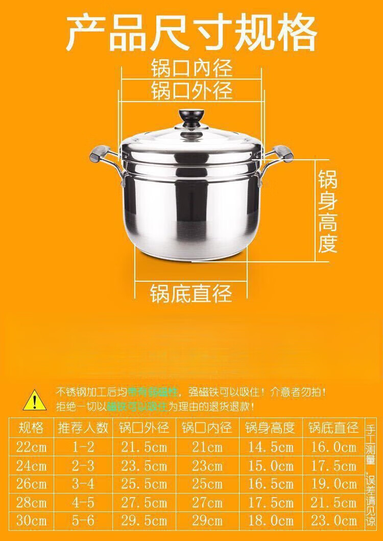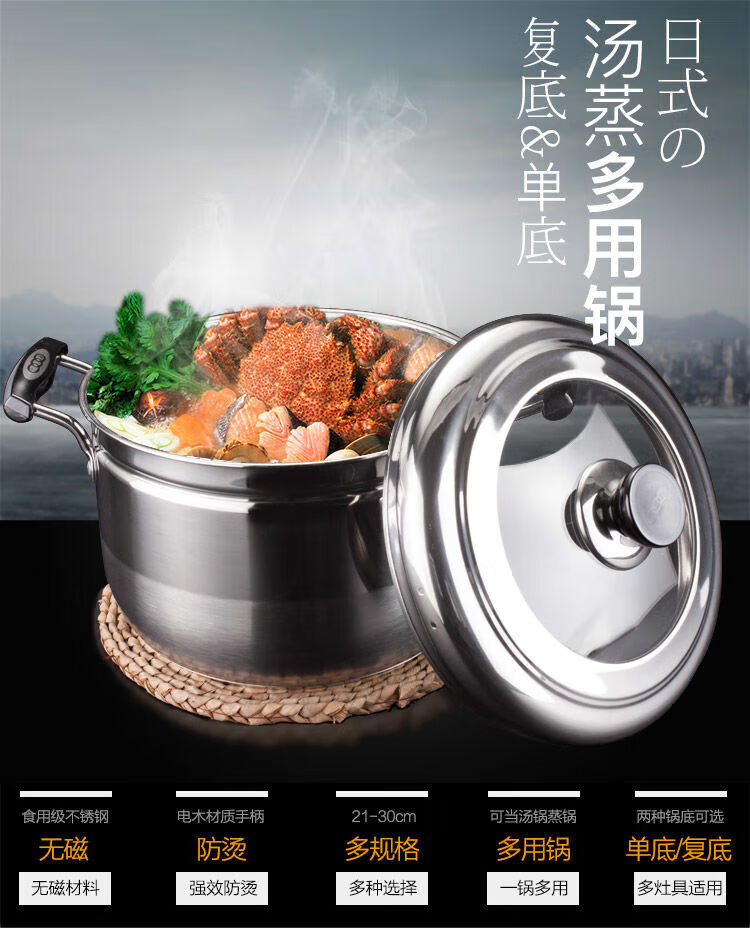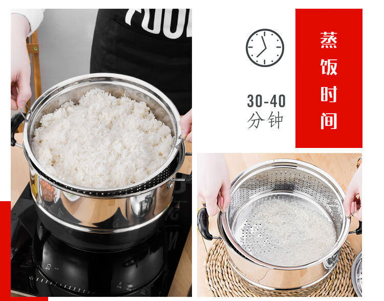 Rice steamer, stainless steel small steamer, one layer, single layer, household rice steamer, steamer, soup, water-proof, dual-purpose, extra thick type (suitable for 2-3 people) 24cm