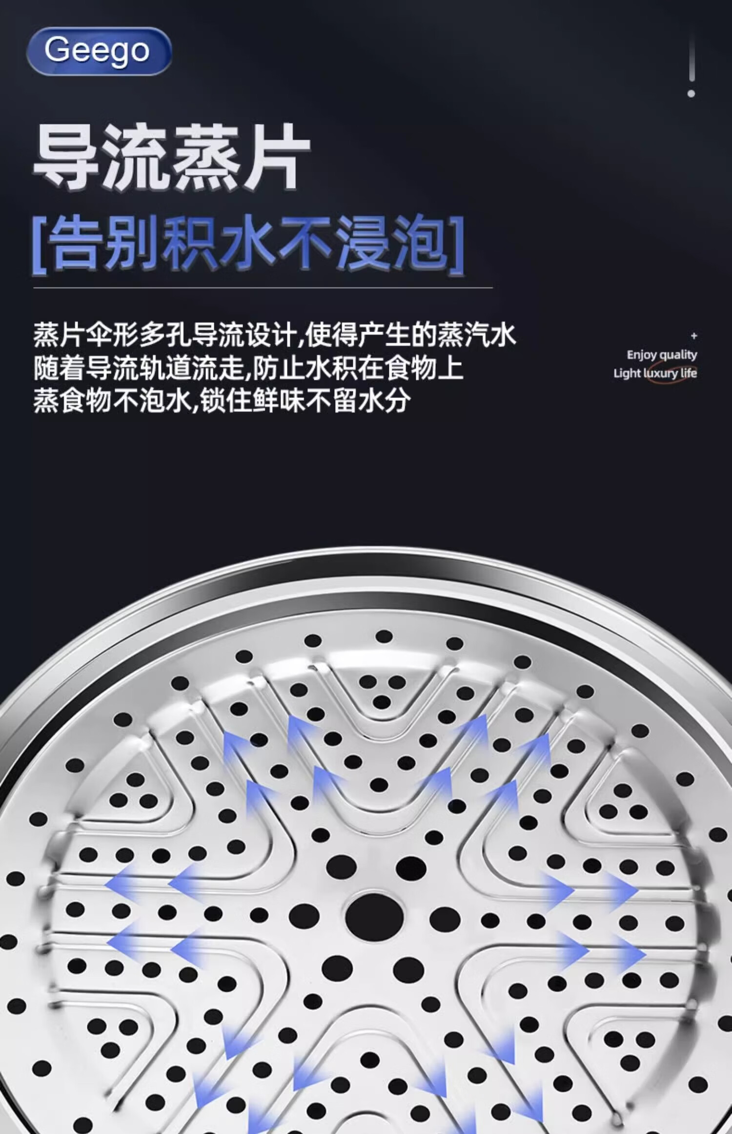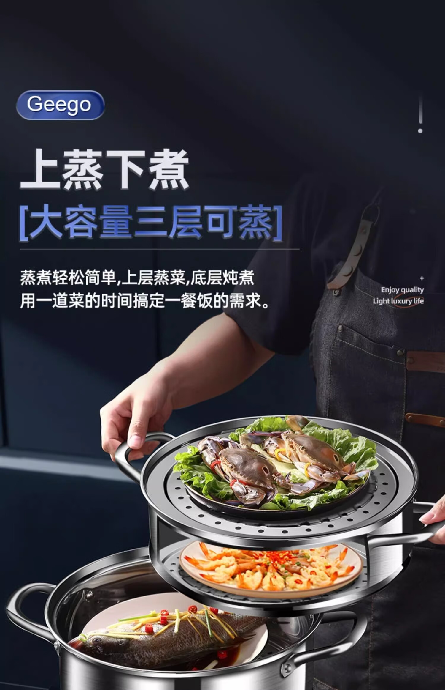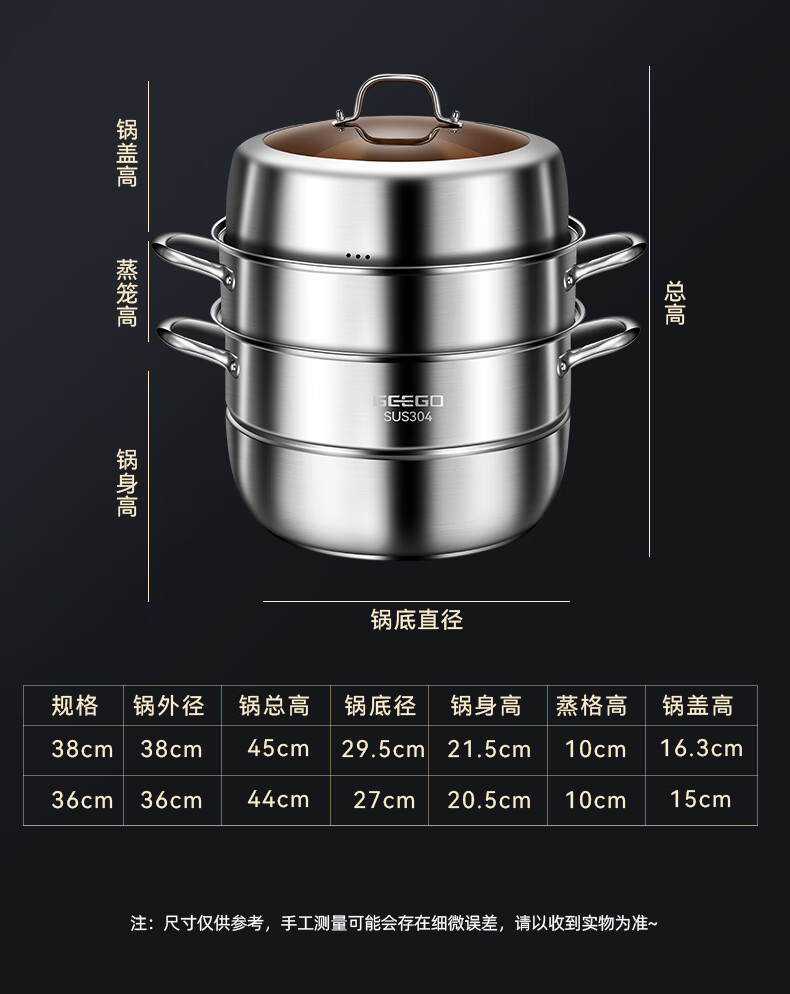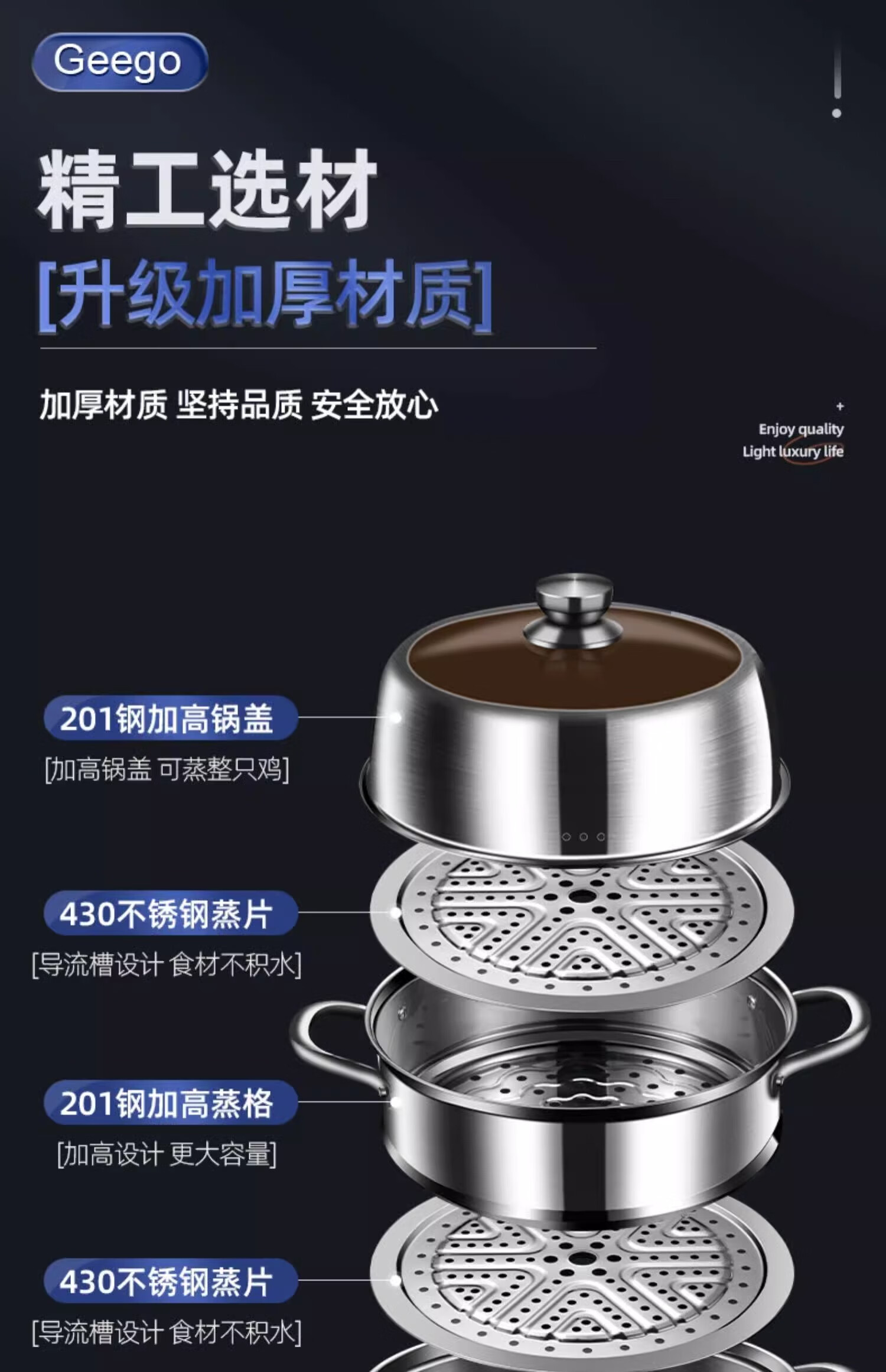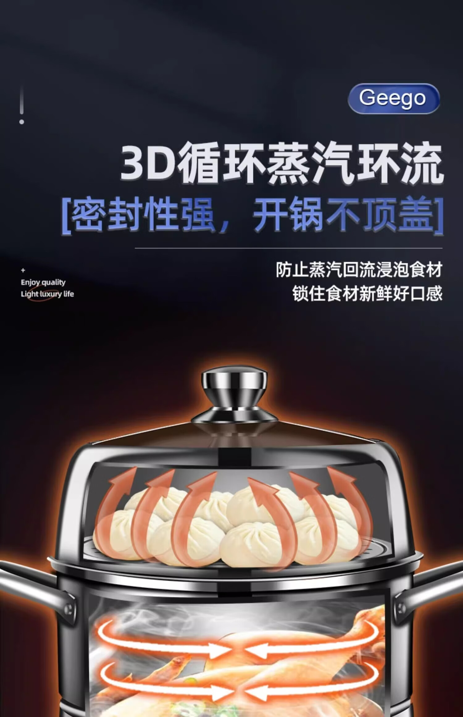 GEEGO thickened 304 stainless steel steamer three layers 36cm large induction cooker universal large steamer gas stove large capacity thickened 304 large steamer about 4.0KG 3 layers 38cm