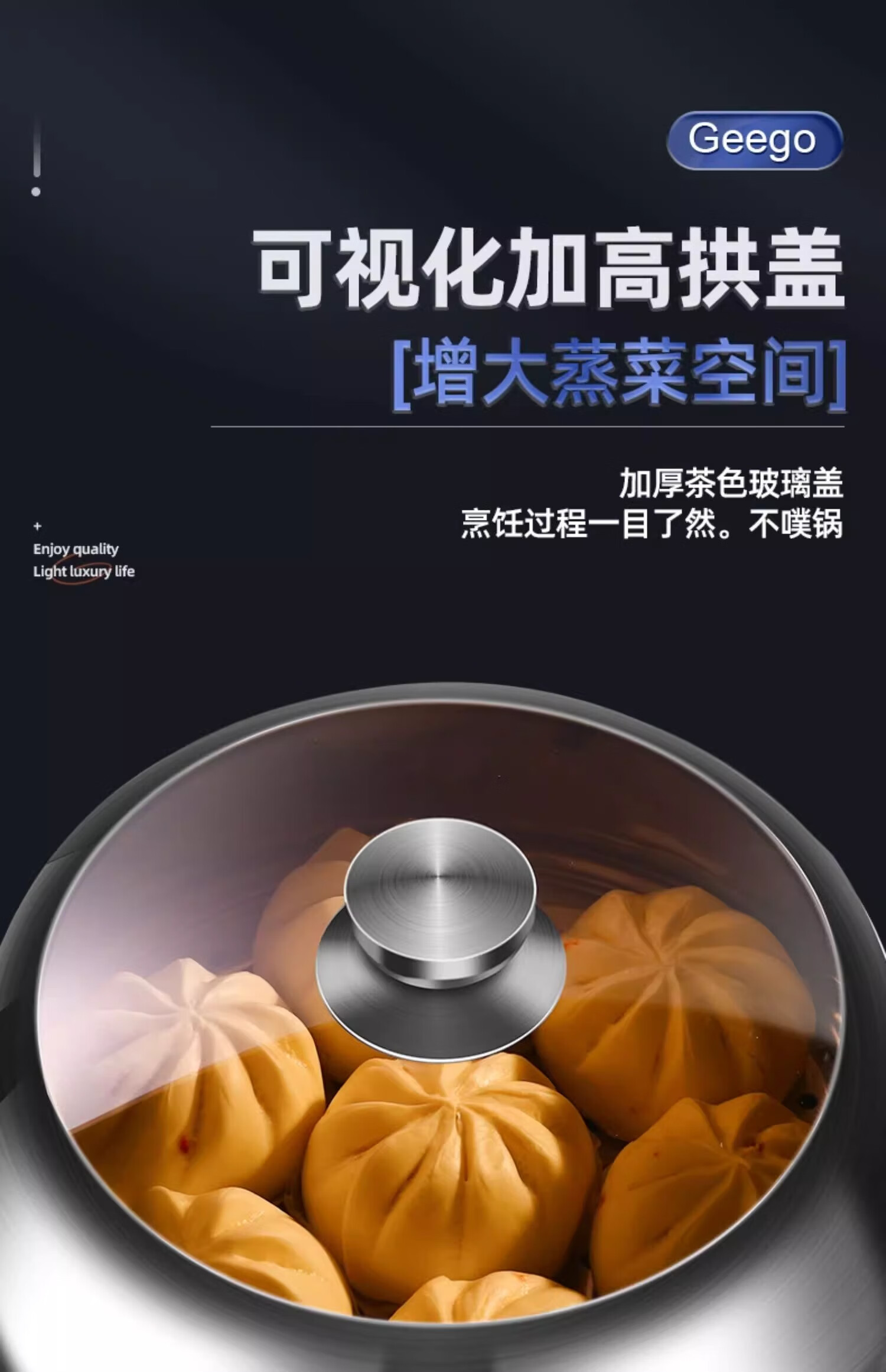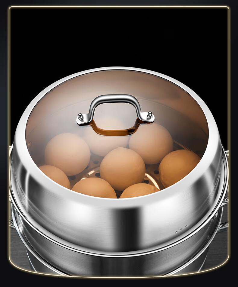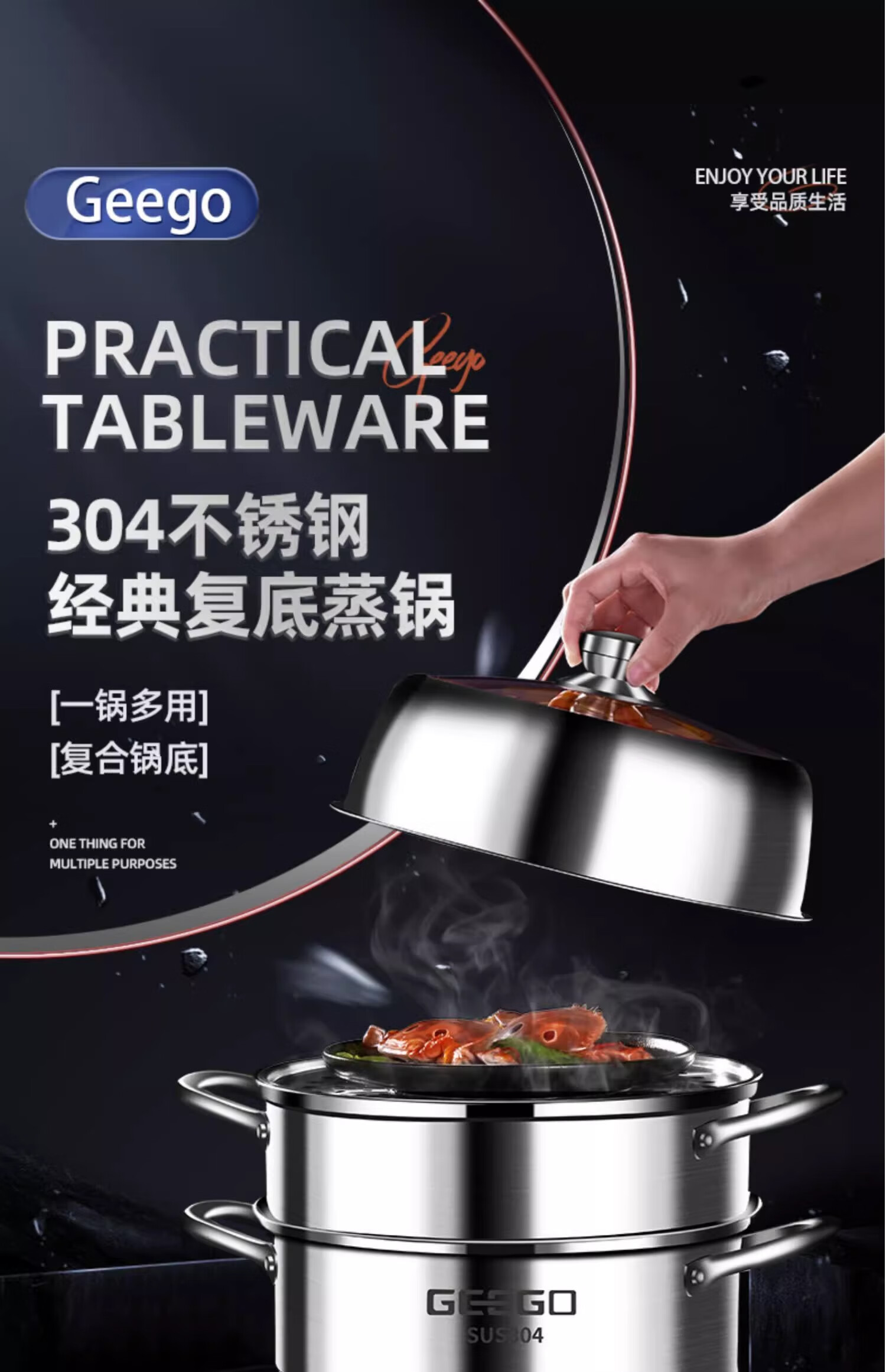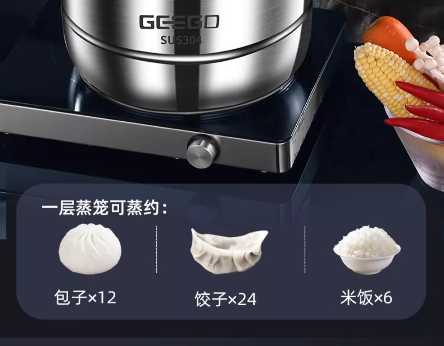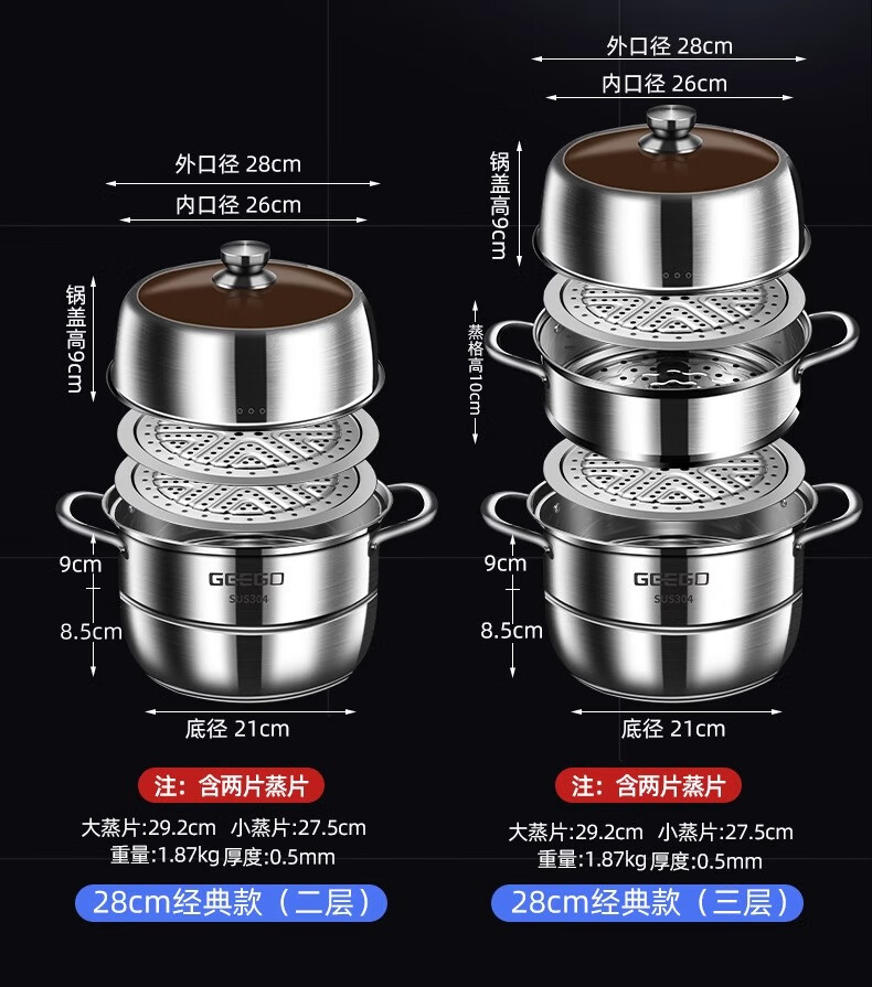 GEEGO thickened 304 stainless steel steamer three layers 36cm large induction cooker universal large steamer gas stove large capacity thickened 304 large steamer about 4.0KG 3 layers 38cm