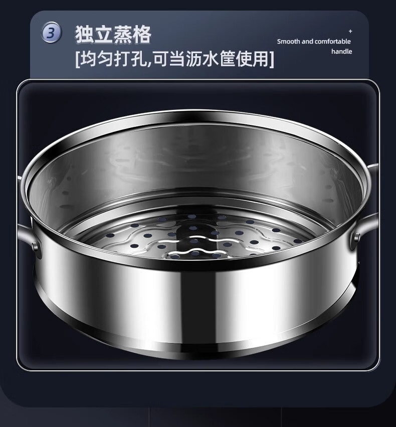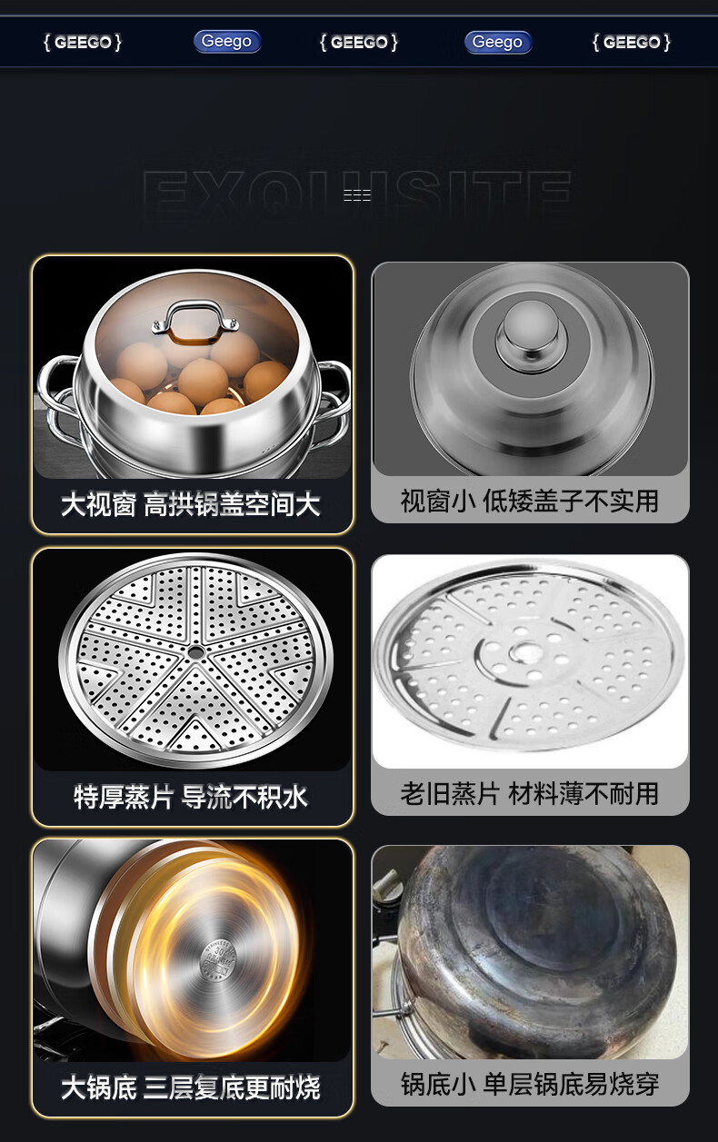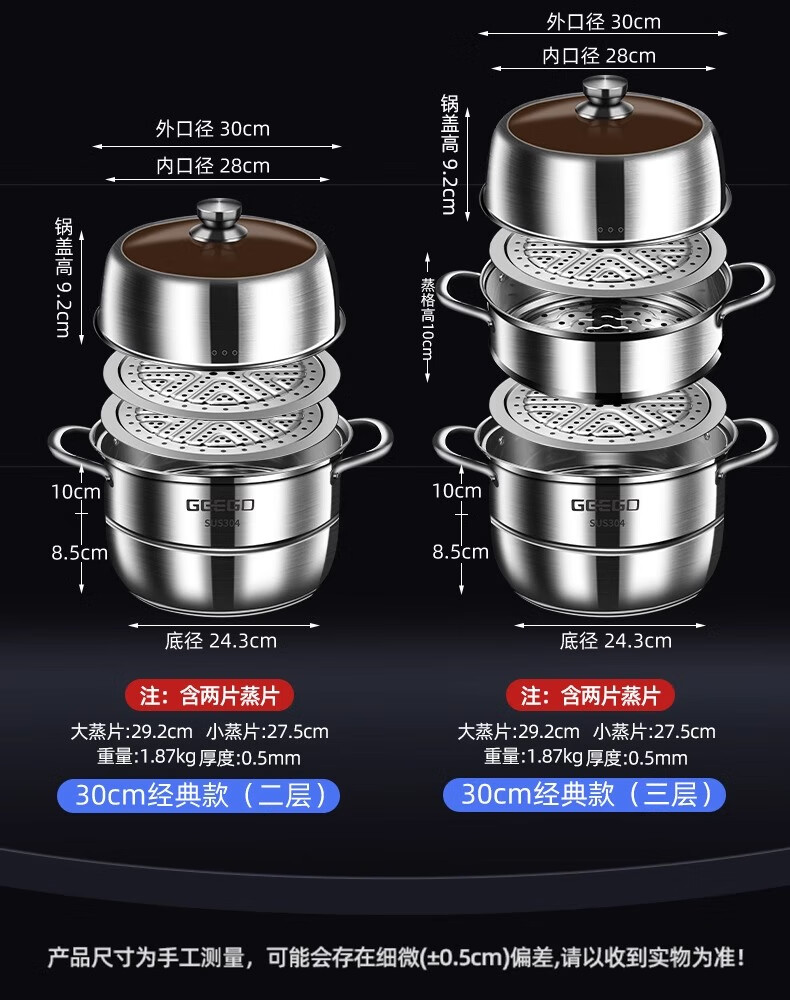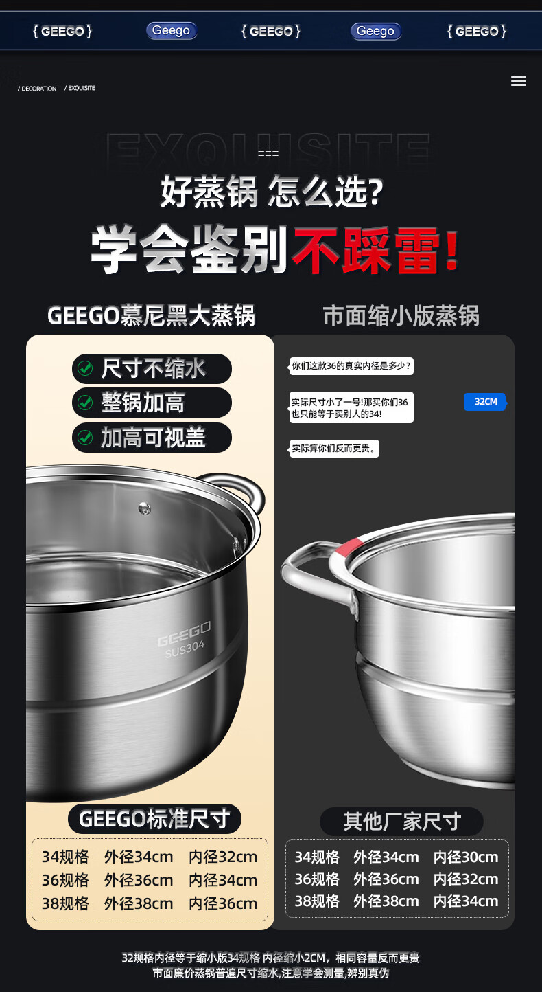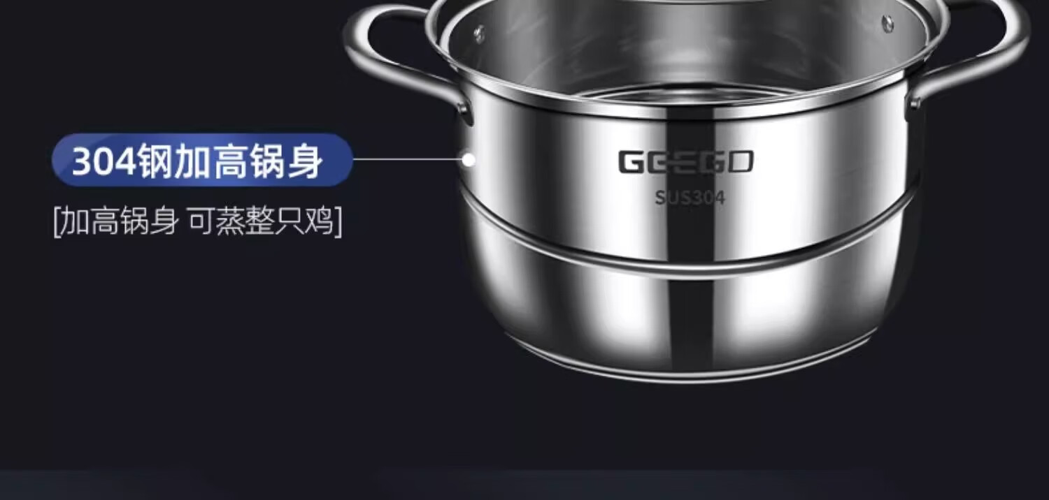 GEEGO thickened 304 stainless steel steamer three layers 36cm large induction cooker universal large steamer gas stove large capacity thickened 304 large steamer about 4.0KG 3 layers 38cm