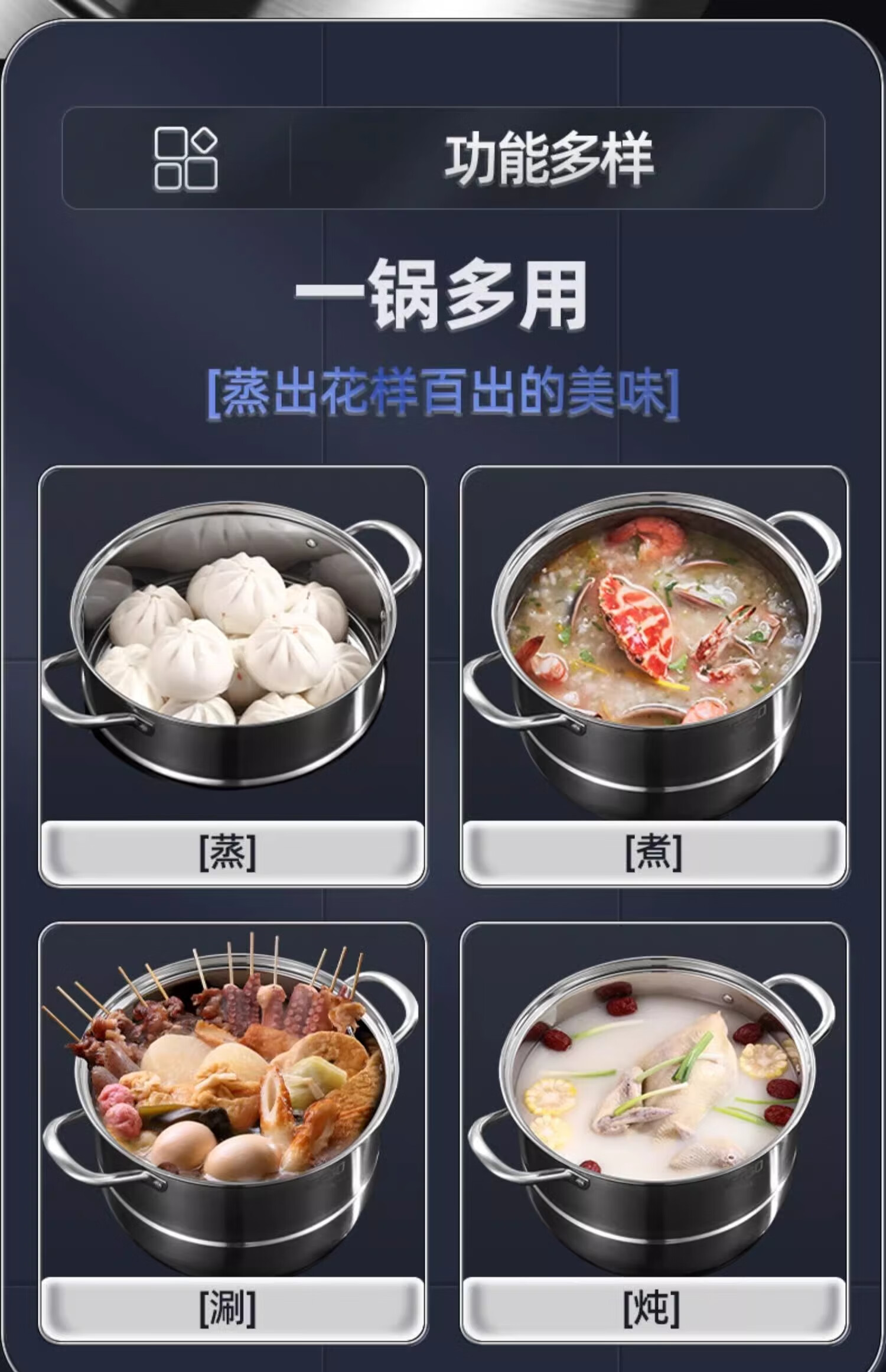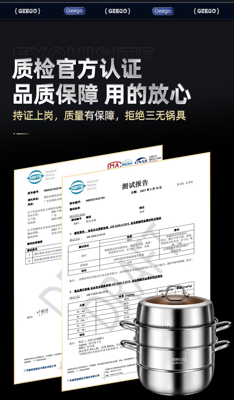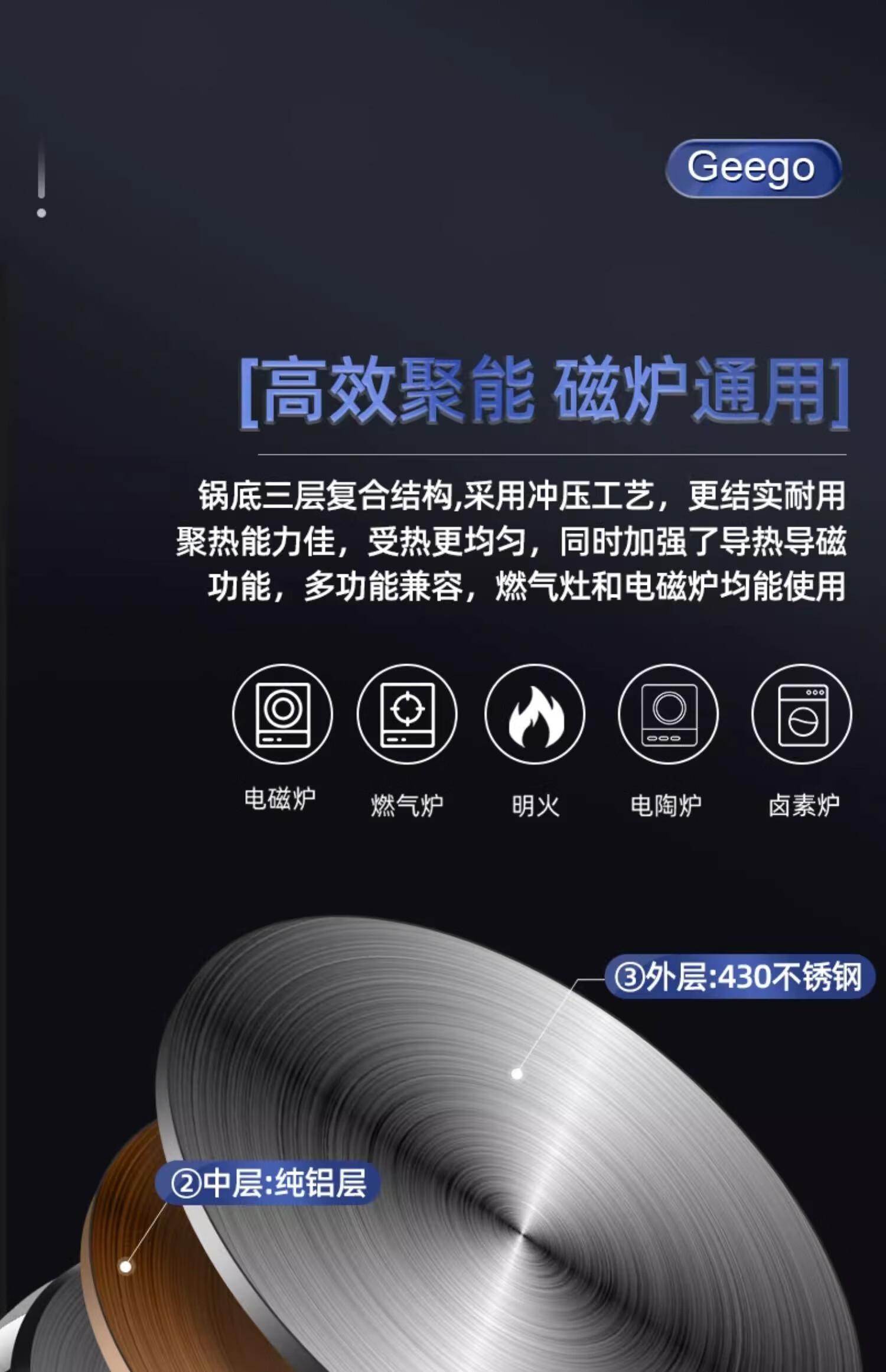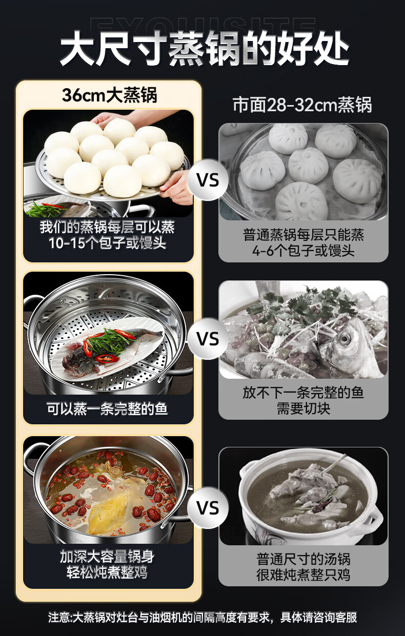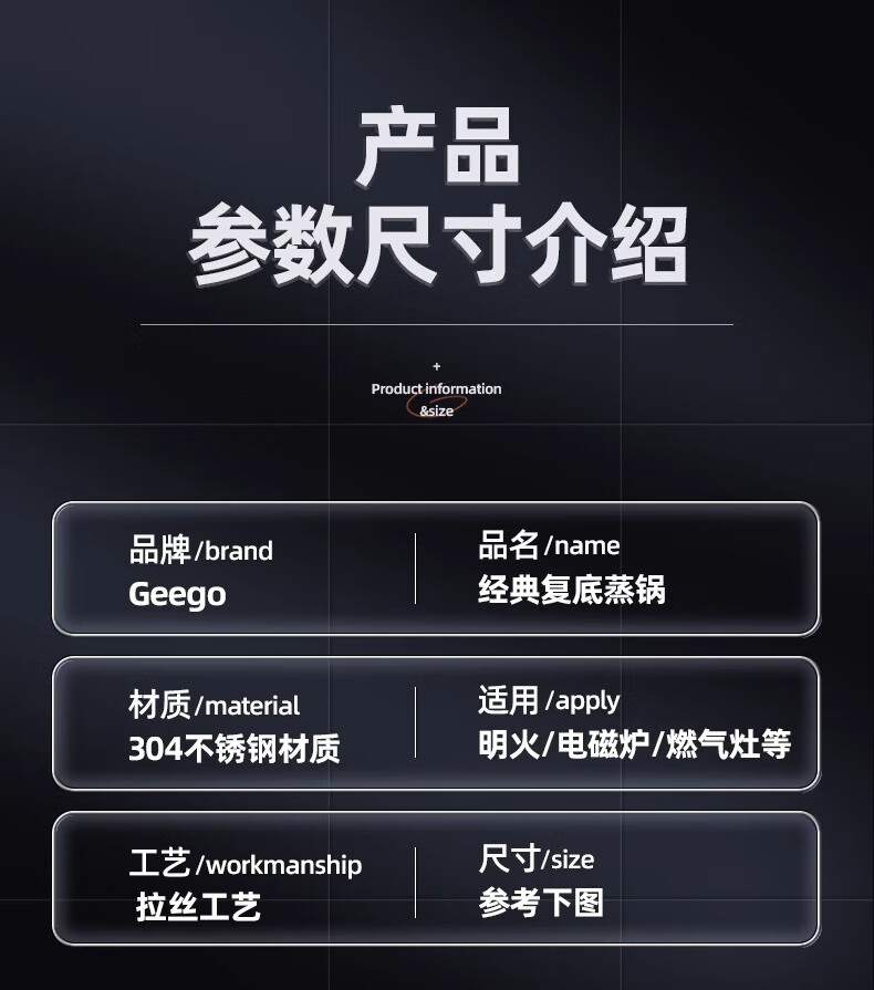 GEEGO thickened 304 stainless steel steamer three layers 36cm large induction cooker universal large steamer gas stove large capacity thickened 304 large steamer about 4.0KG 3 layers 38cm