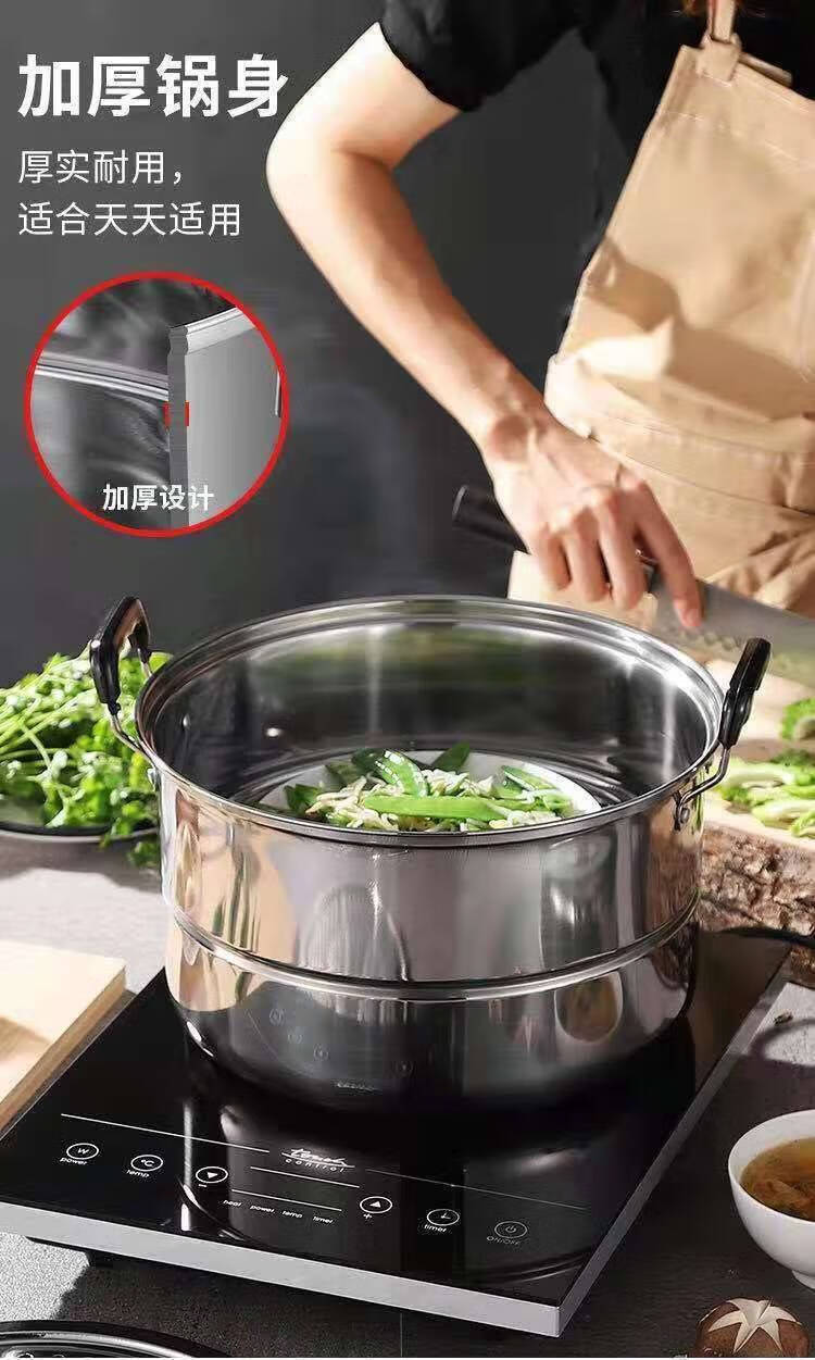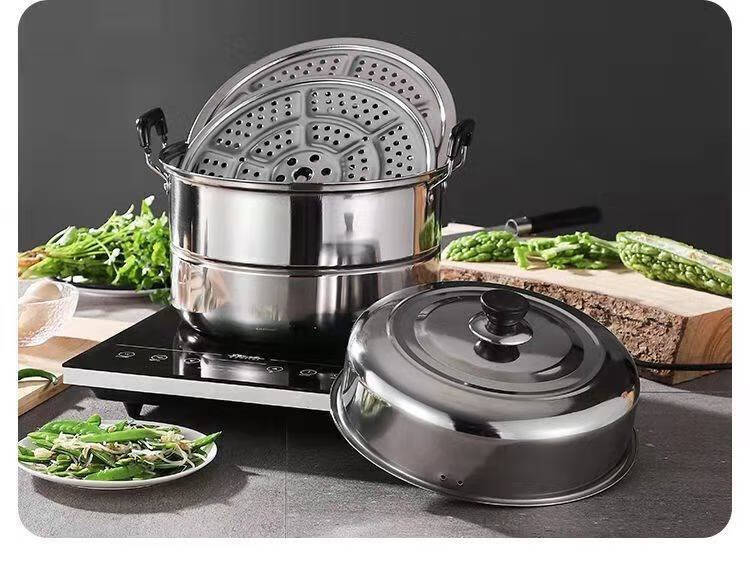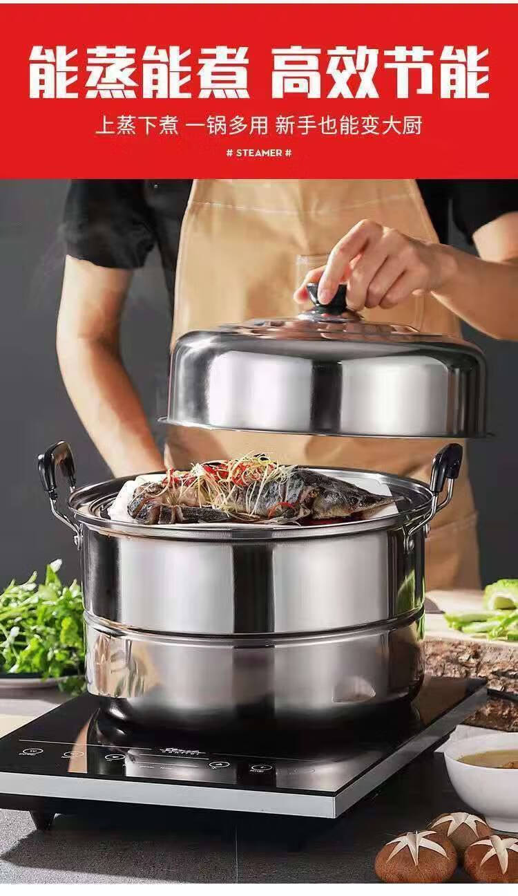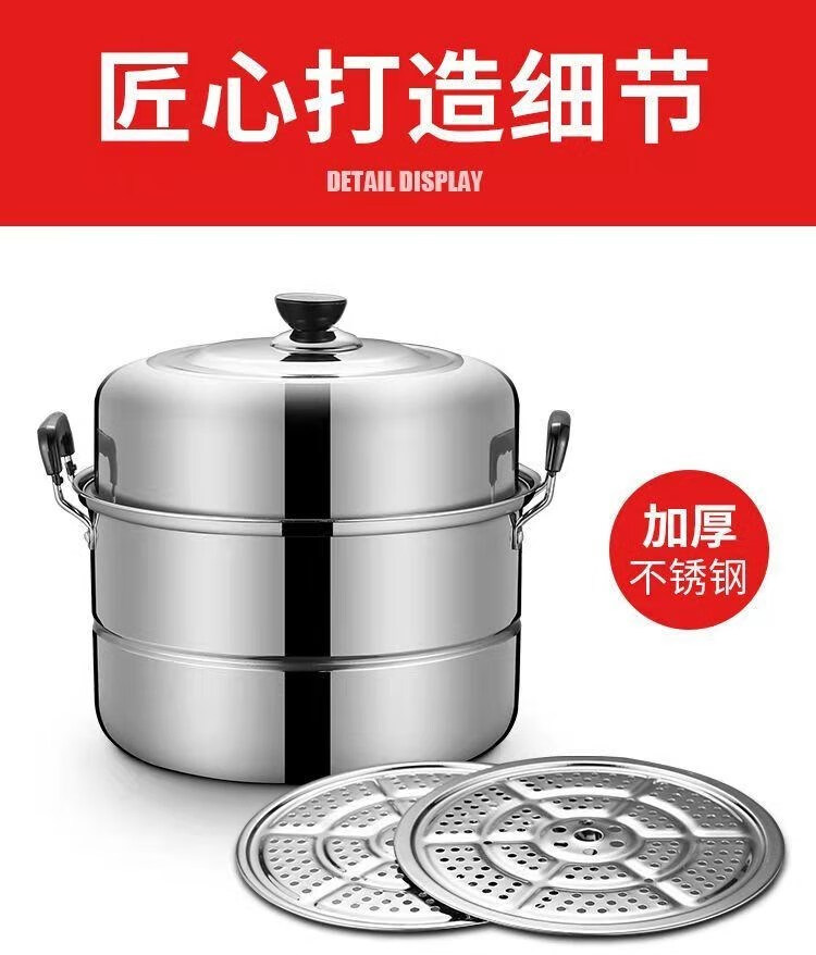 Steamer 304 stainless steel thickened steamer multi-functional household basket for cooking and stewing large capacity induction cooker gas special 32CM double layer with steaming sheet extra thick 1cm universal