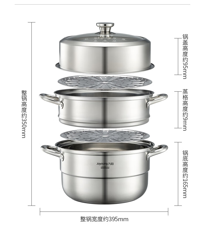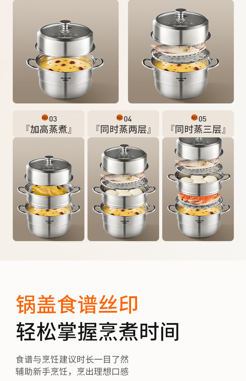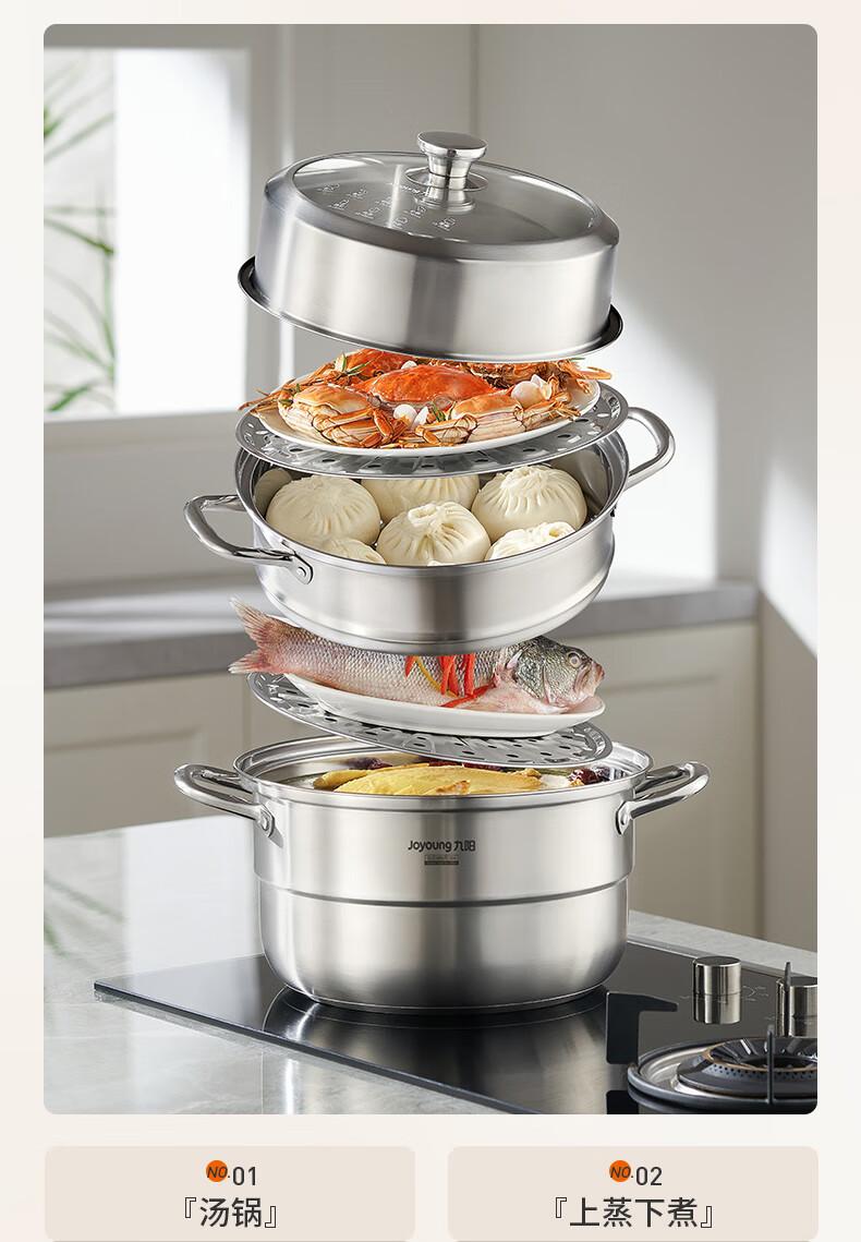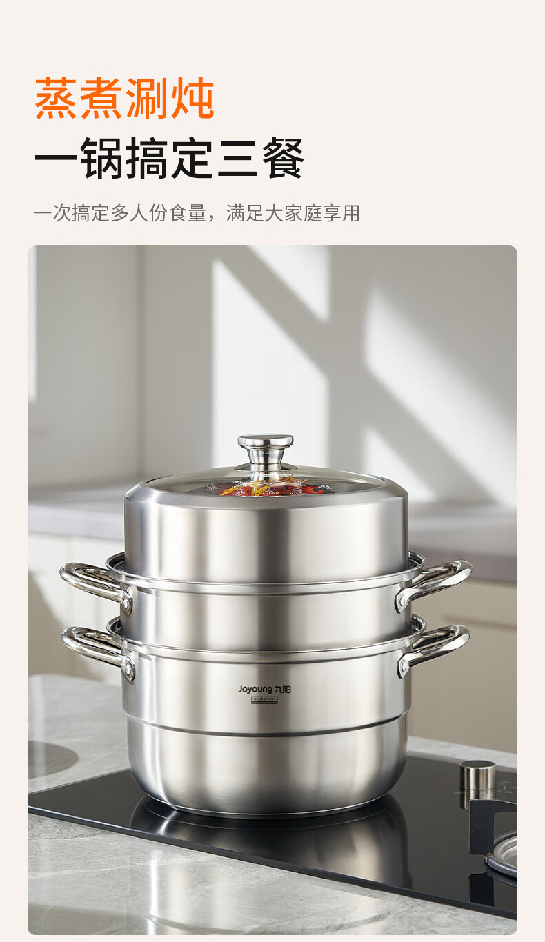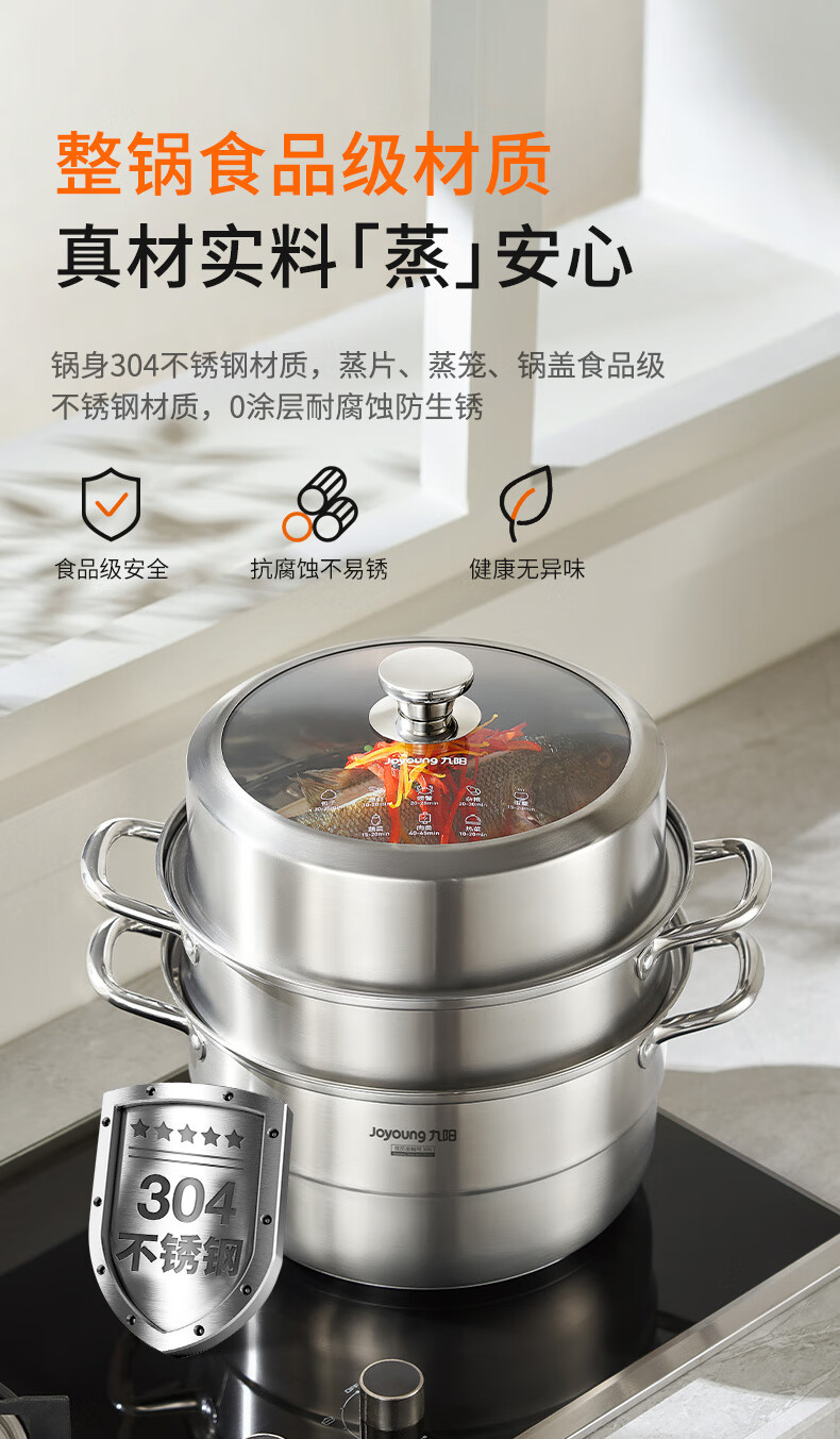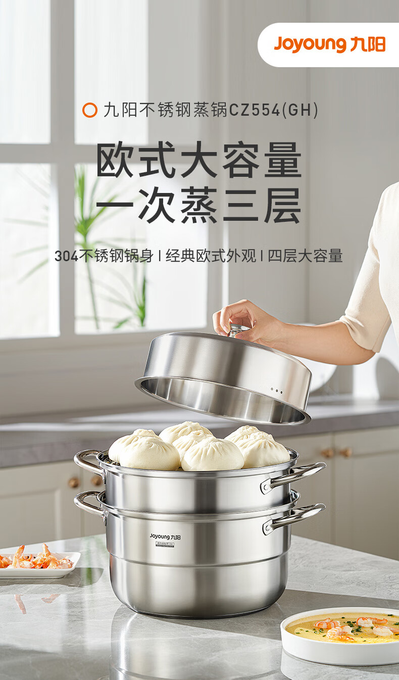 Joyoung 304 stainless steel steamer three-layer large capacity household steamed buns and steamed buns stew pot gas stove induction cooker universal CZ554 3-layer 30cm