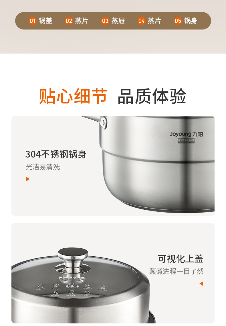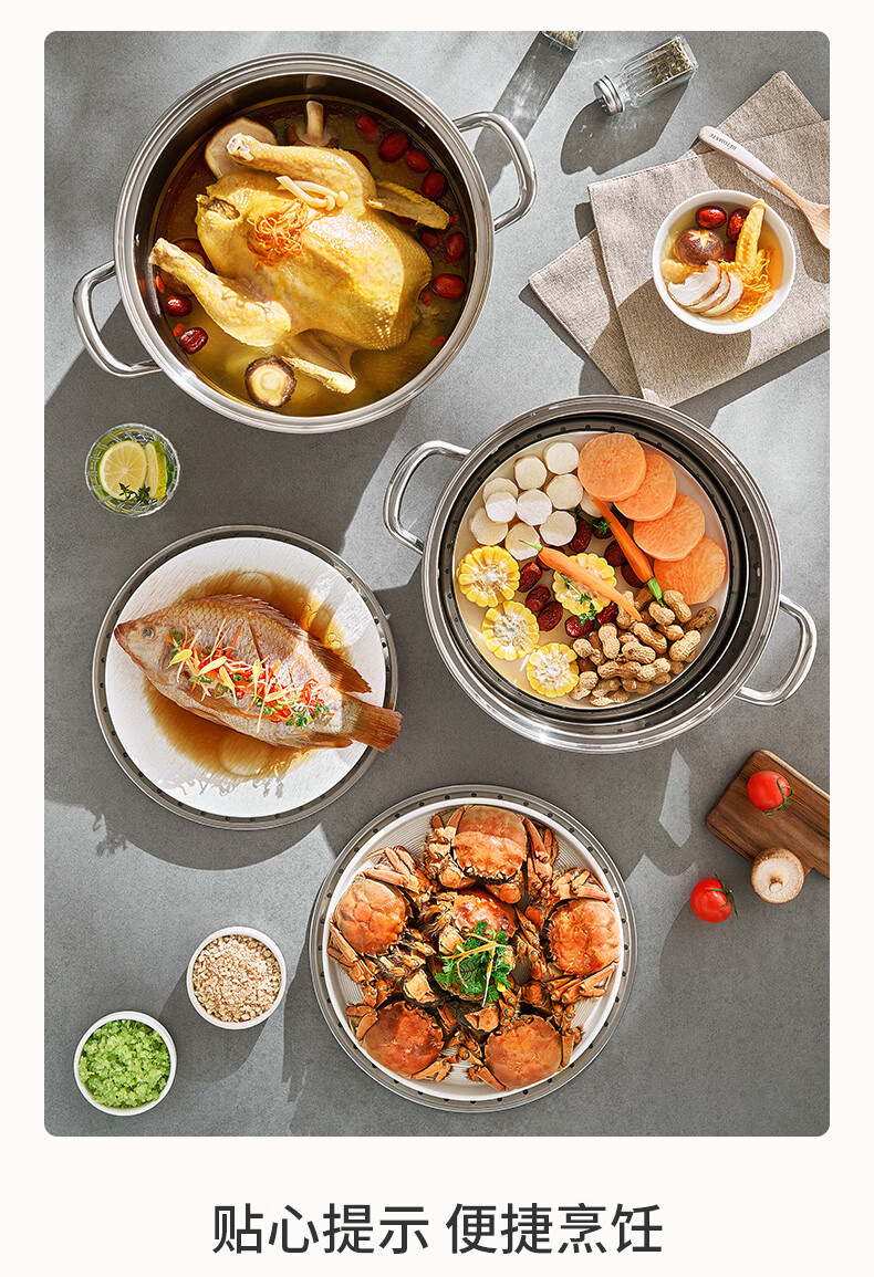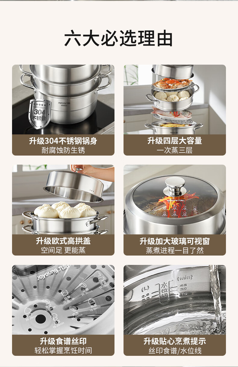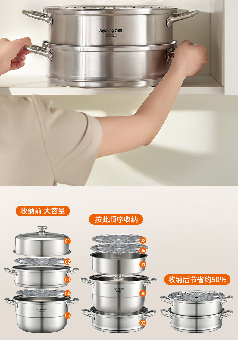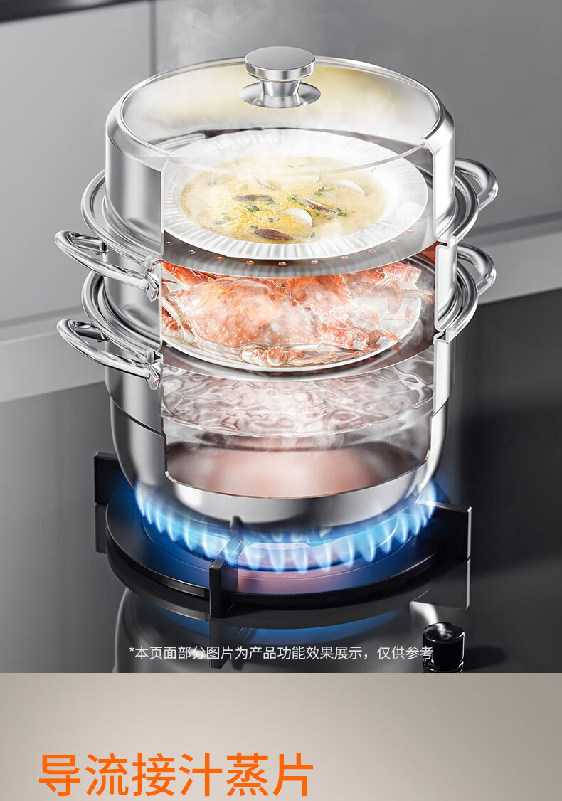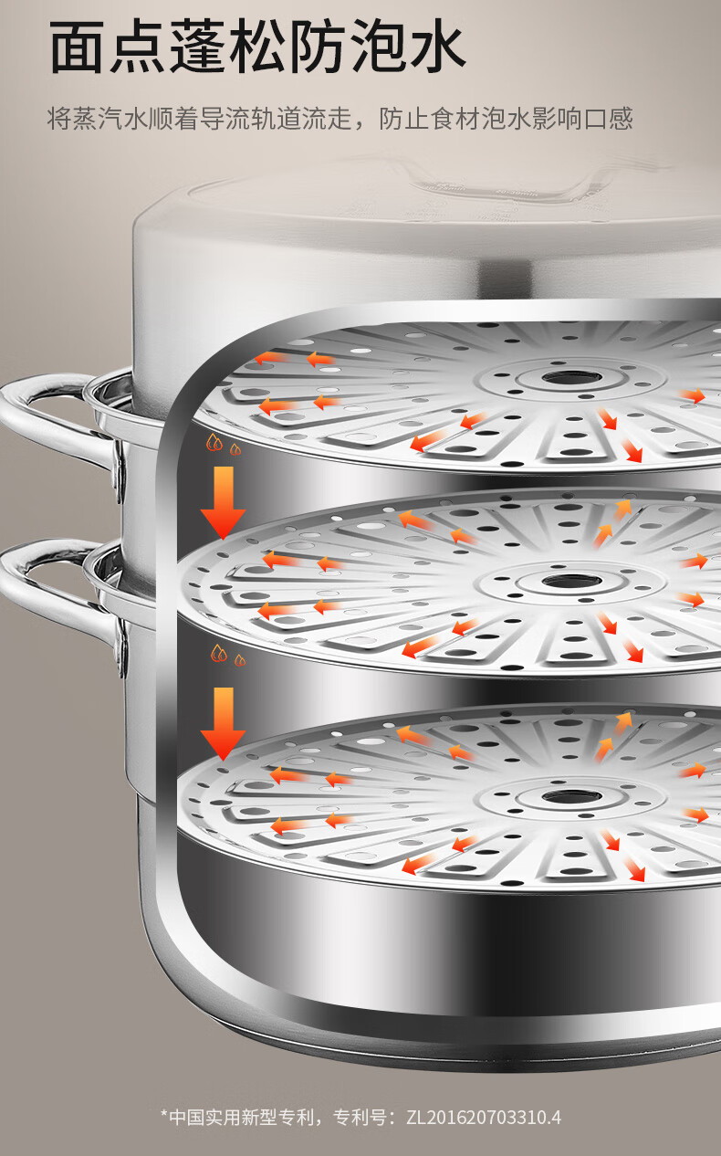 Joyoung 304 stainless steel steamer three-layer large capacity household steamed buns and steamed buns stew pot gas stove induction cooker universal CZ554 3-layer 30cm