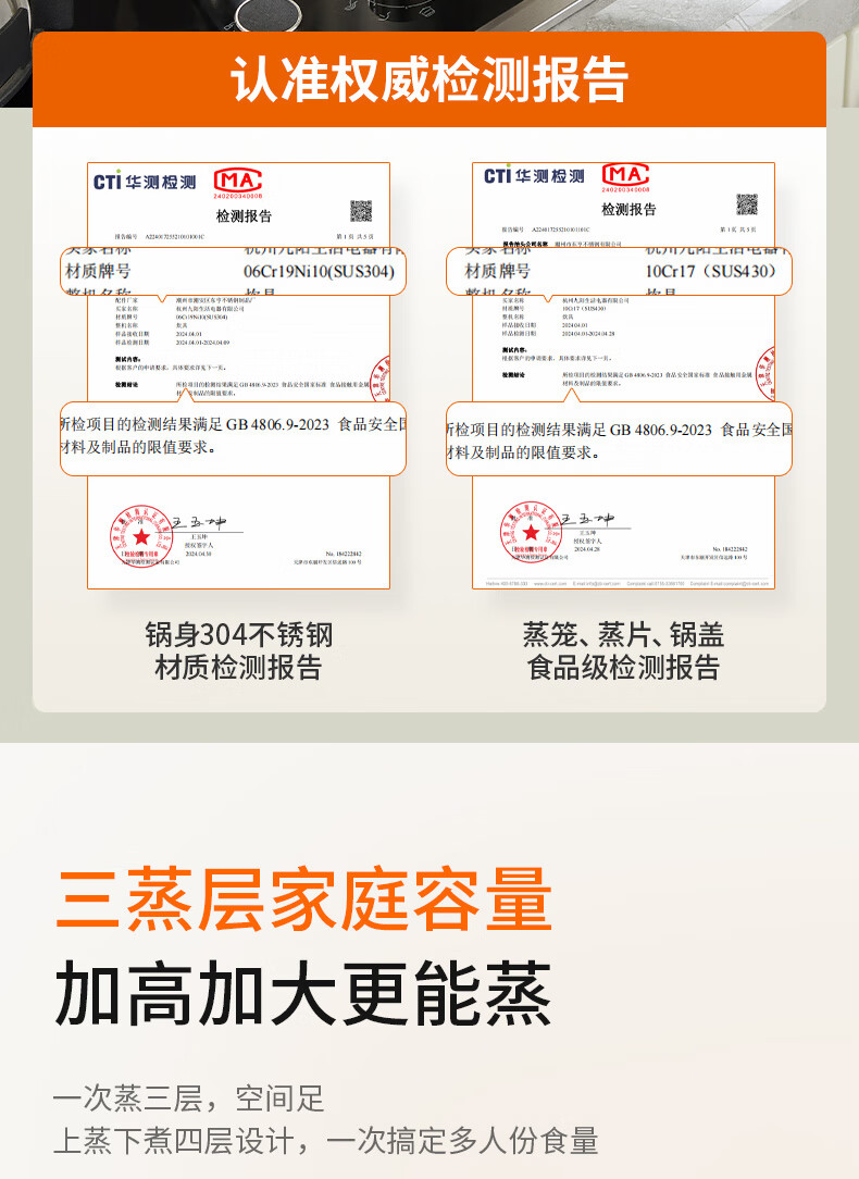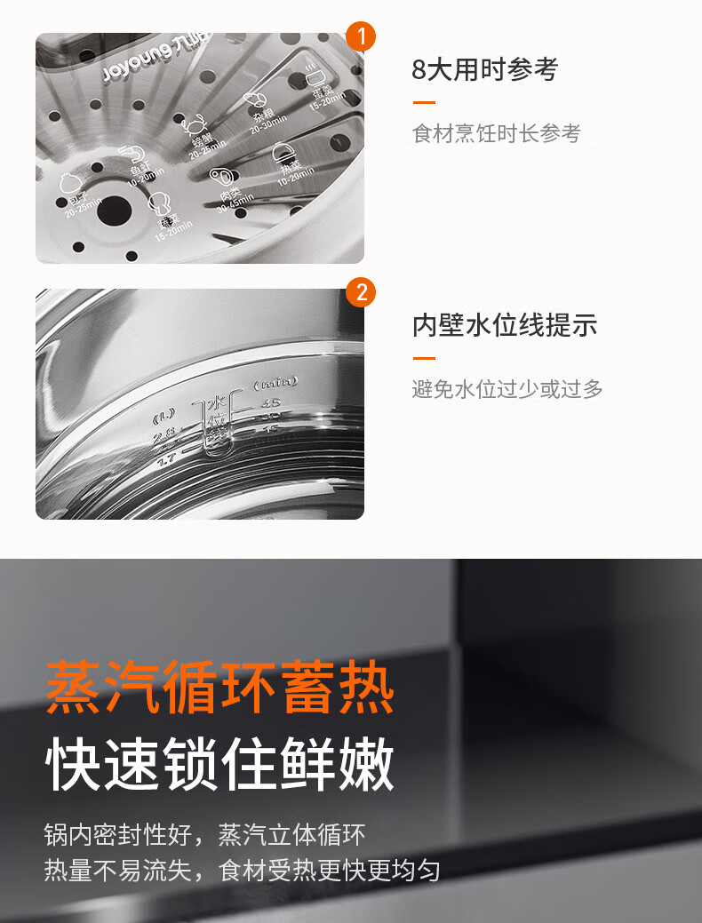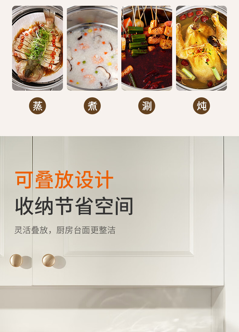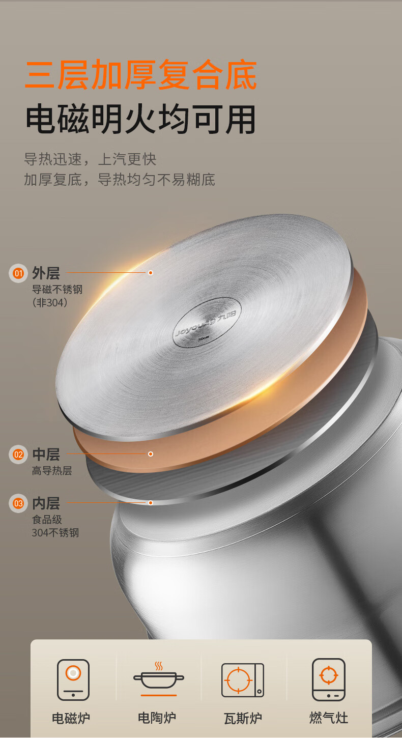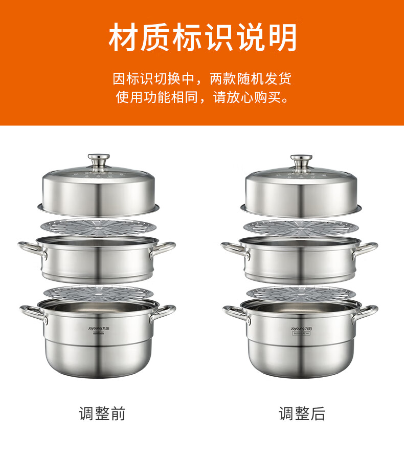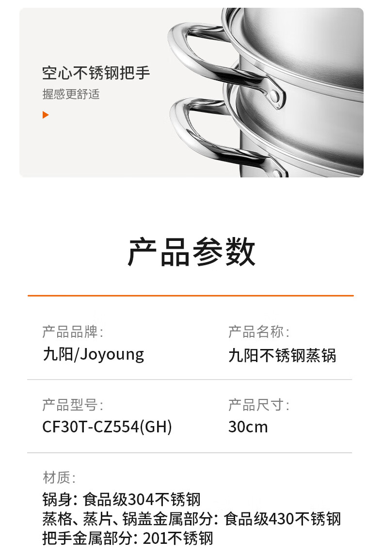 Joyoung 304 stainless steel steamer three-layer large capacity household steamed buns and steamed buns stew pot gas stove induction cooker universal CZ554 3-layer 30cm
