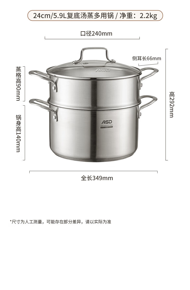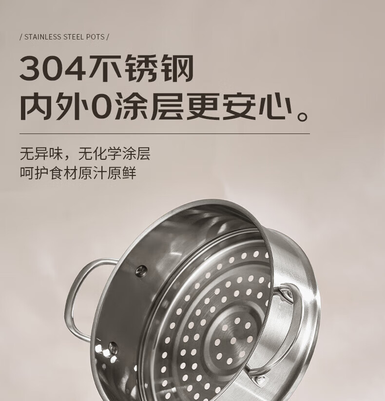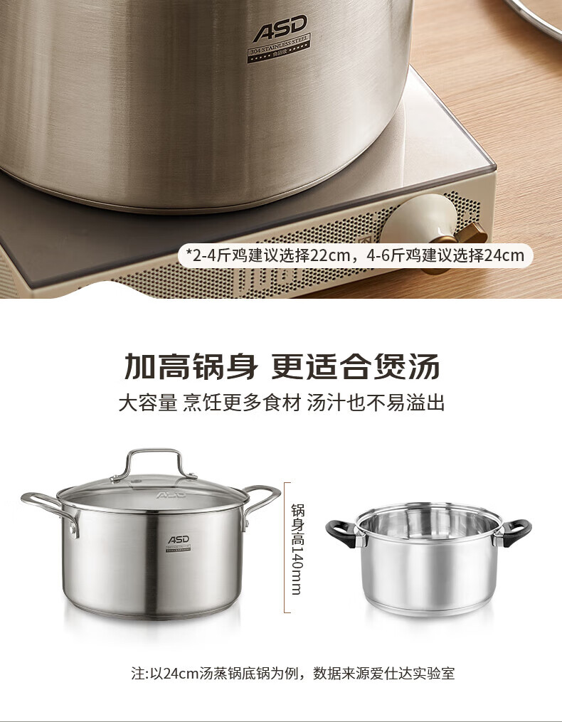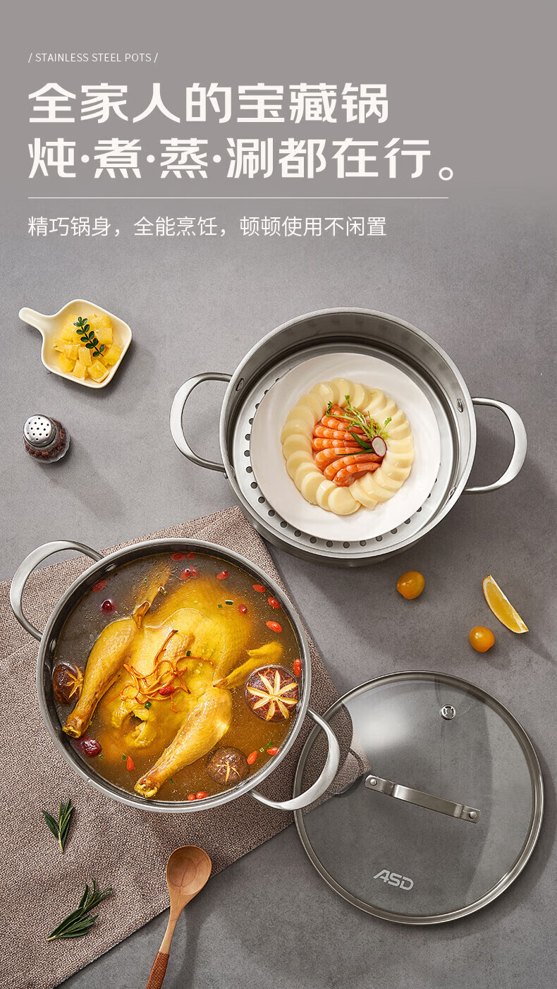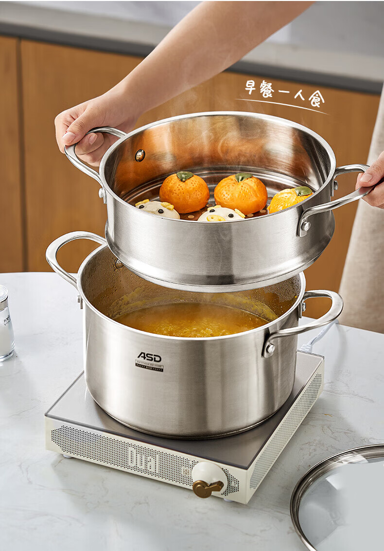 ASD small steamer soup pot uncoated 304 stainless steel thickened home kitchen multi-functional steamer cooking and stew integrated pot thickened 304 stainless steel soup steamer 24cm