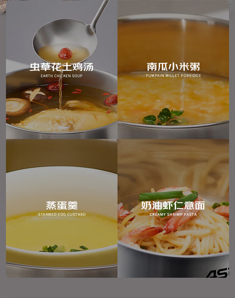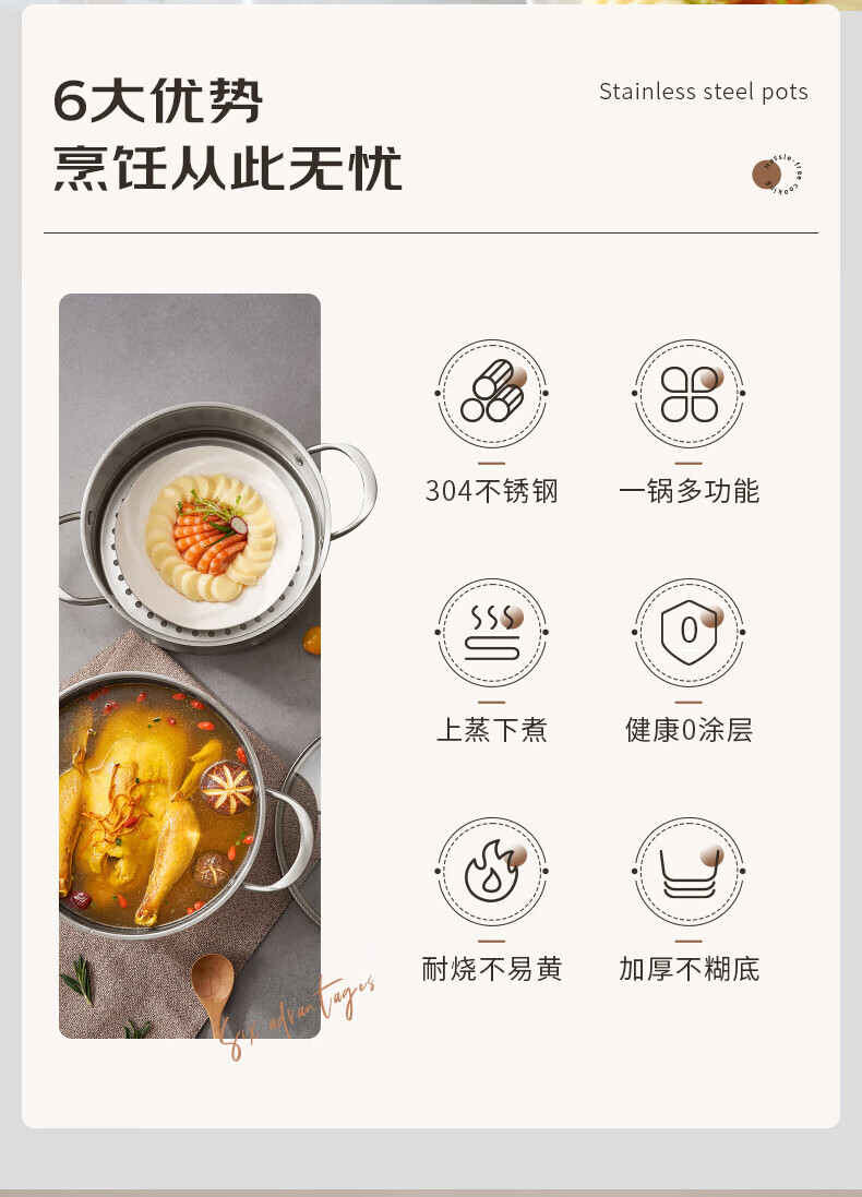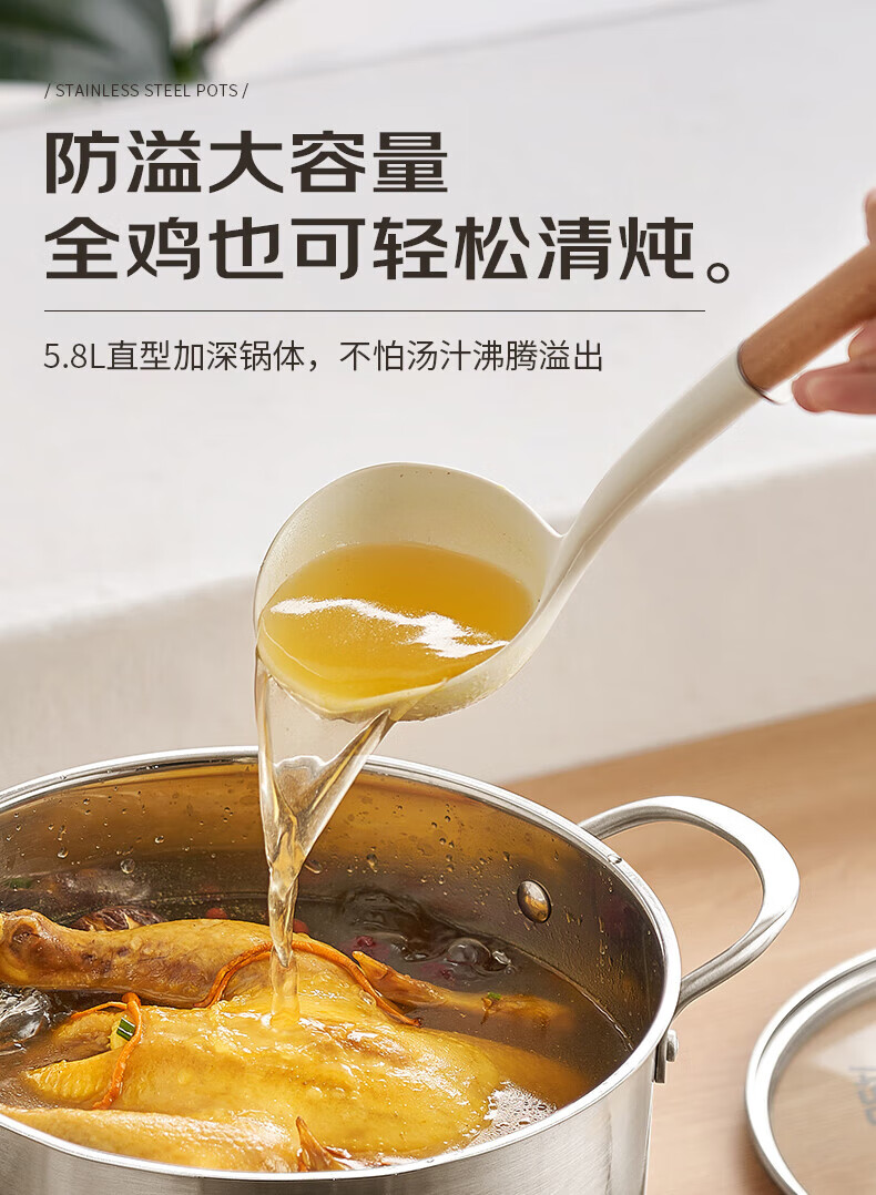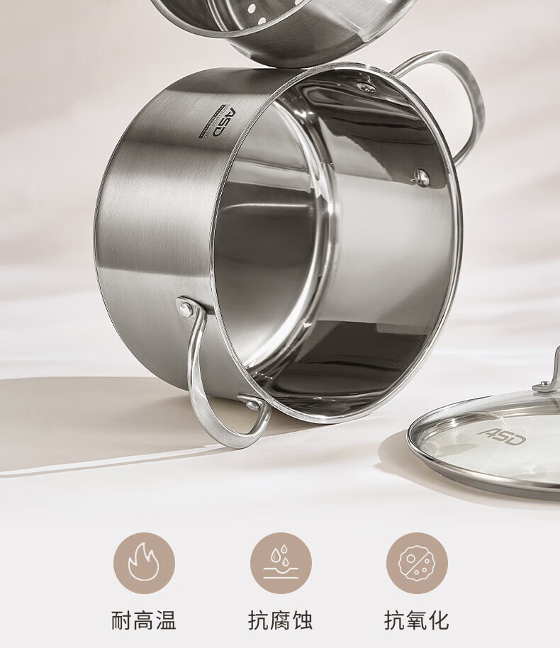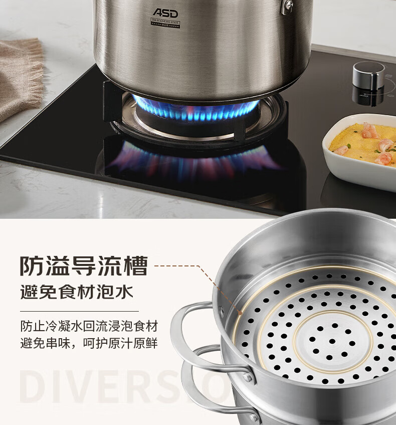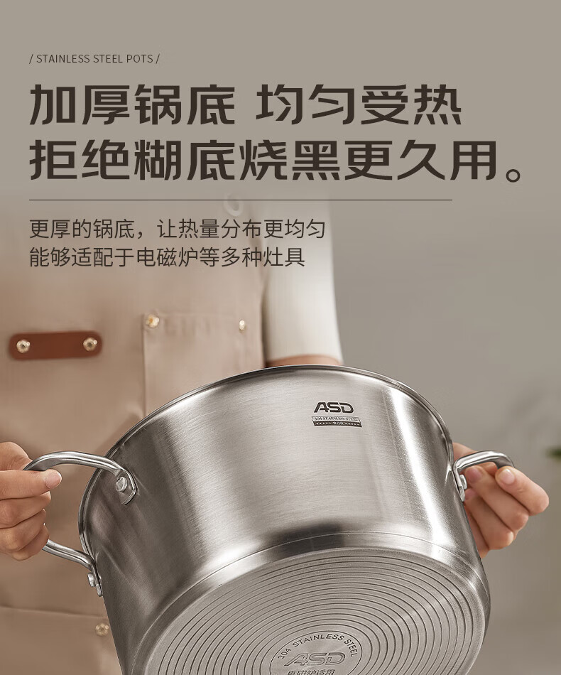 ASD small steamer soup pot uncoated 304 stainless steel thickened home kitchen multi-functional steamer cooking and stew integrated pot thickened 304 stainless steel soup steamer 24cm