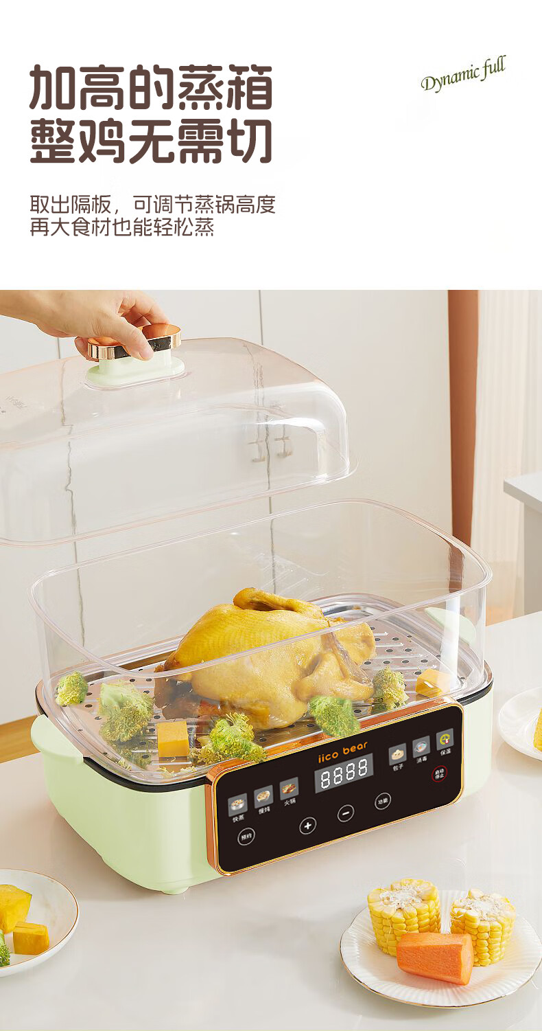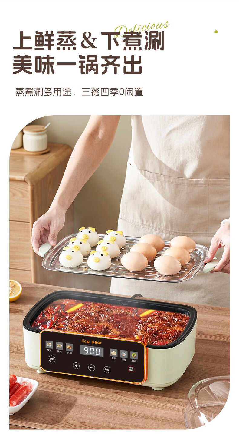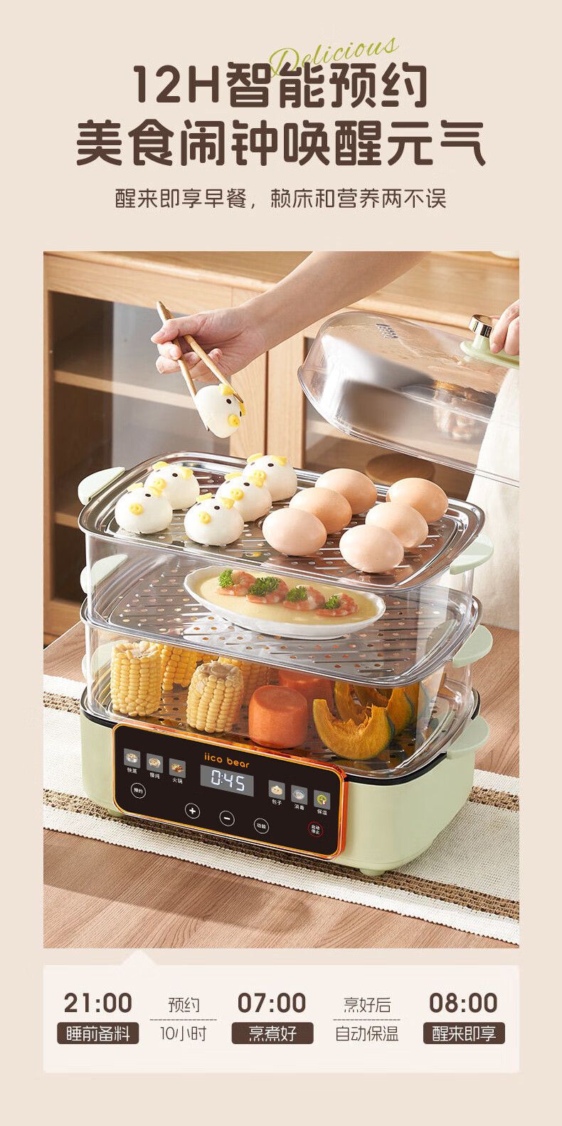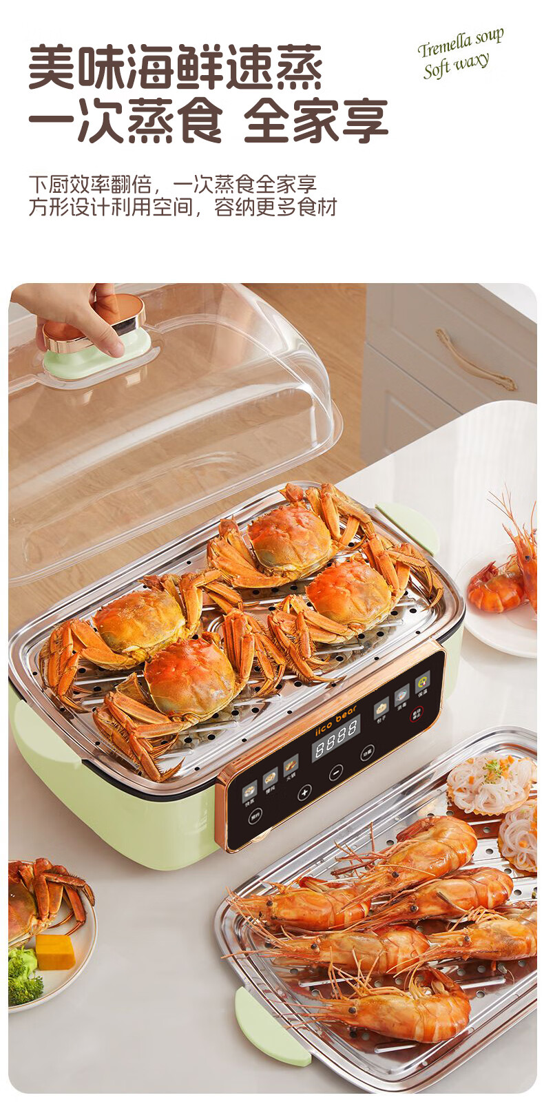 Iicobear electric steamer electric cooking pot multi-functional household steamed fish steamed bun pot three-layer large-capacity timed stew and steam all-in-one pot retro green 48L with steaming pad 3 layers 36cm