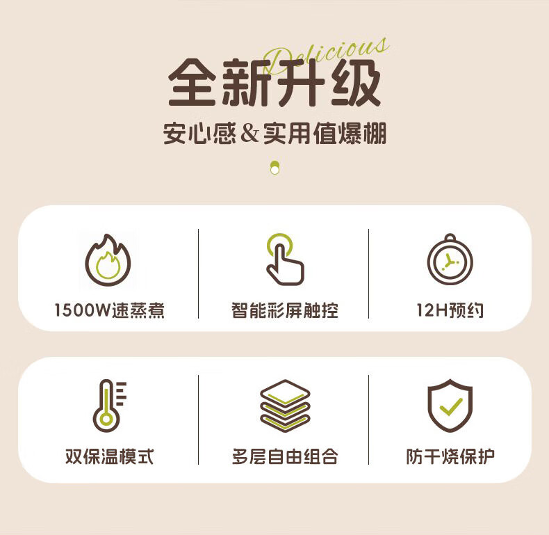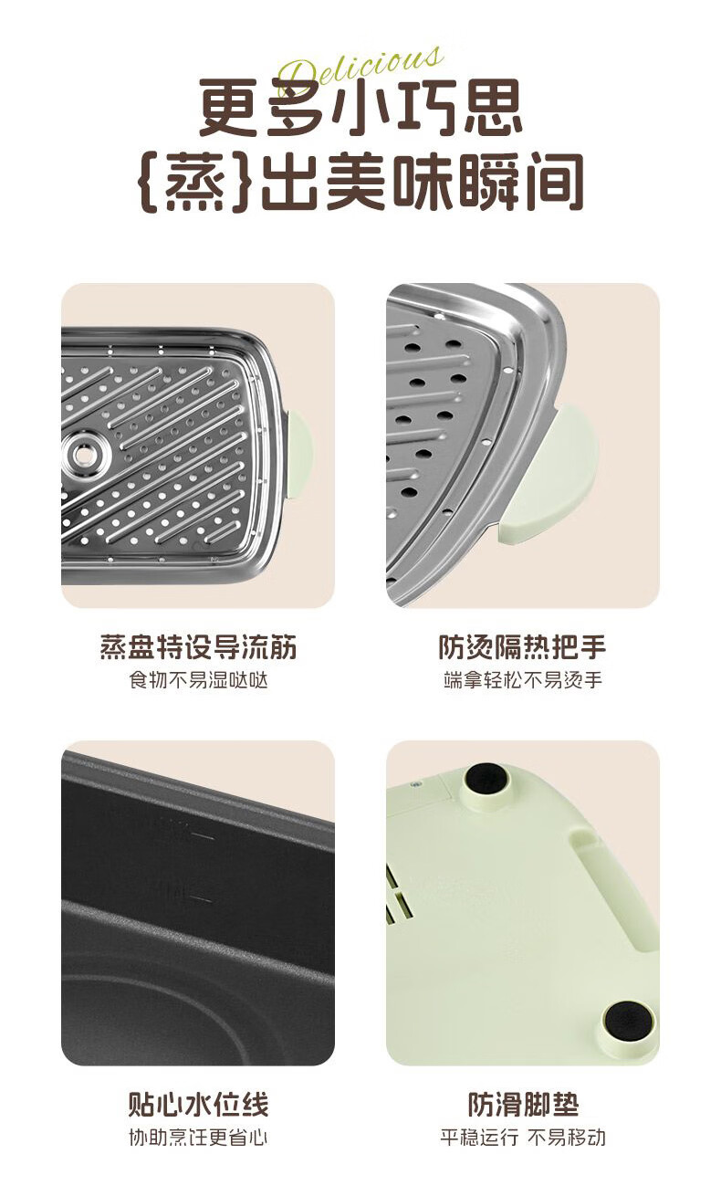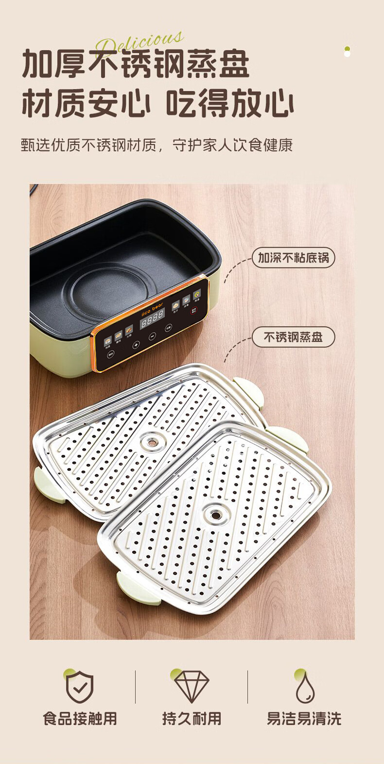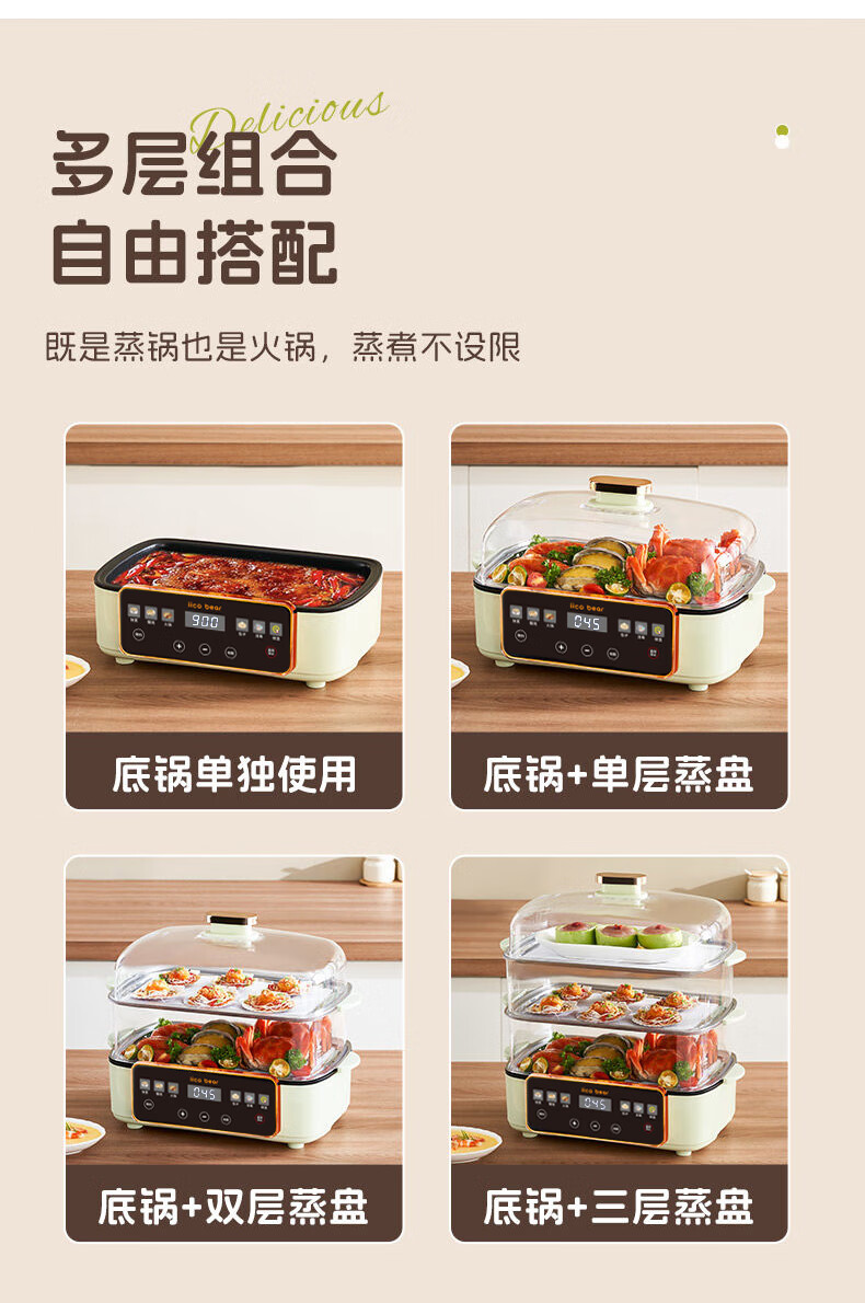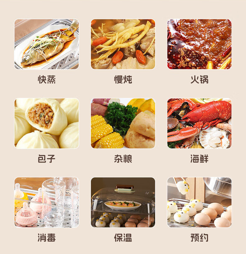Iicobear electric steamer electric cooking pot multi-functional household steamed fish steamed bun pot three-layer large-capacity timed stew and steam all-in-one pot retro green 48L with steaming pad 3 layers 36cm