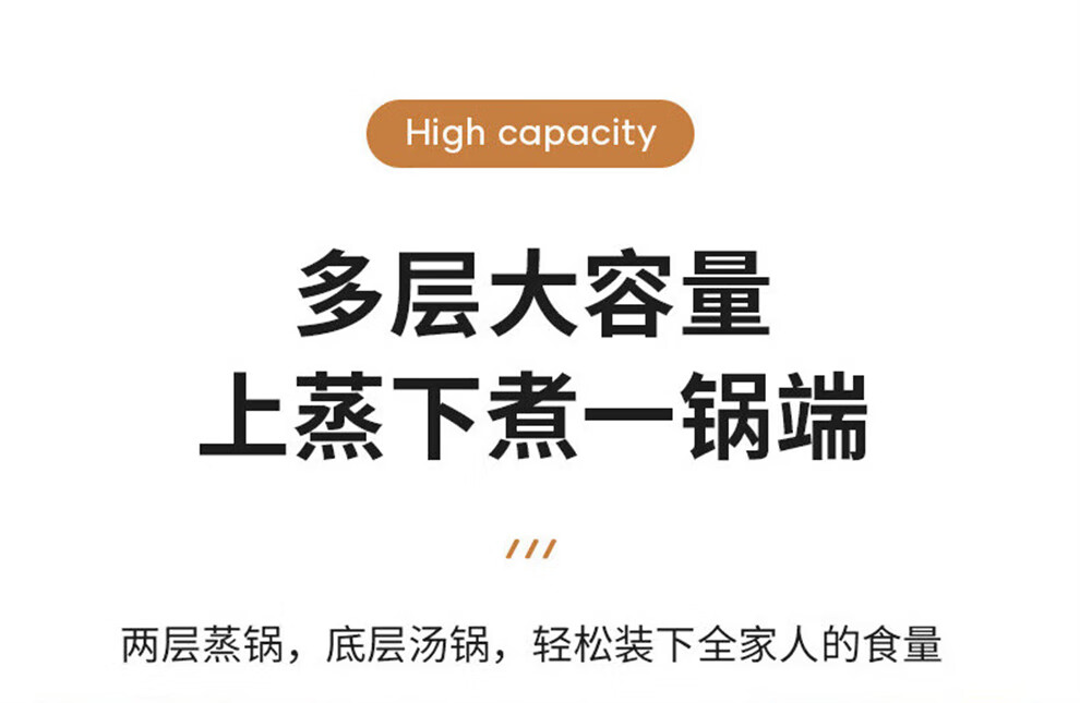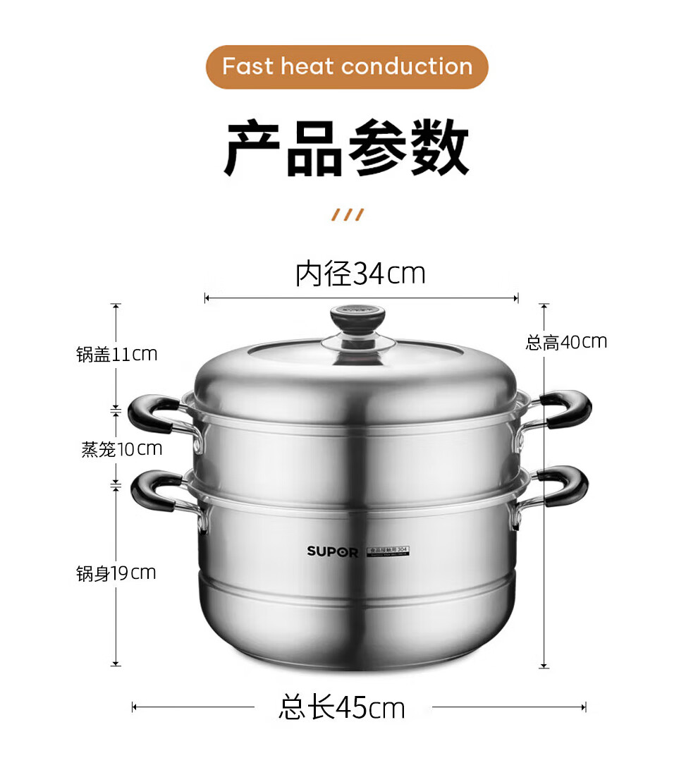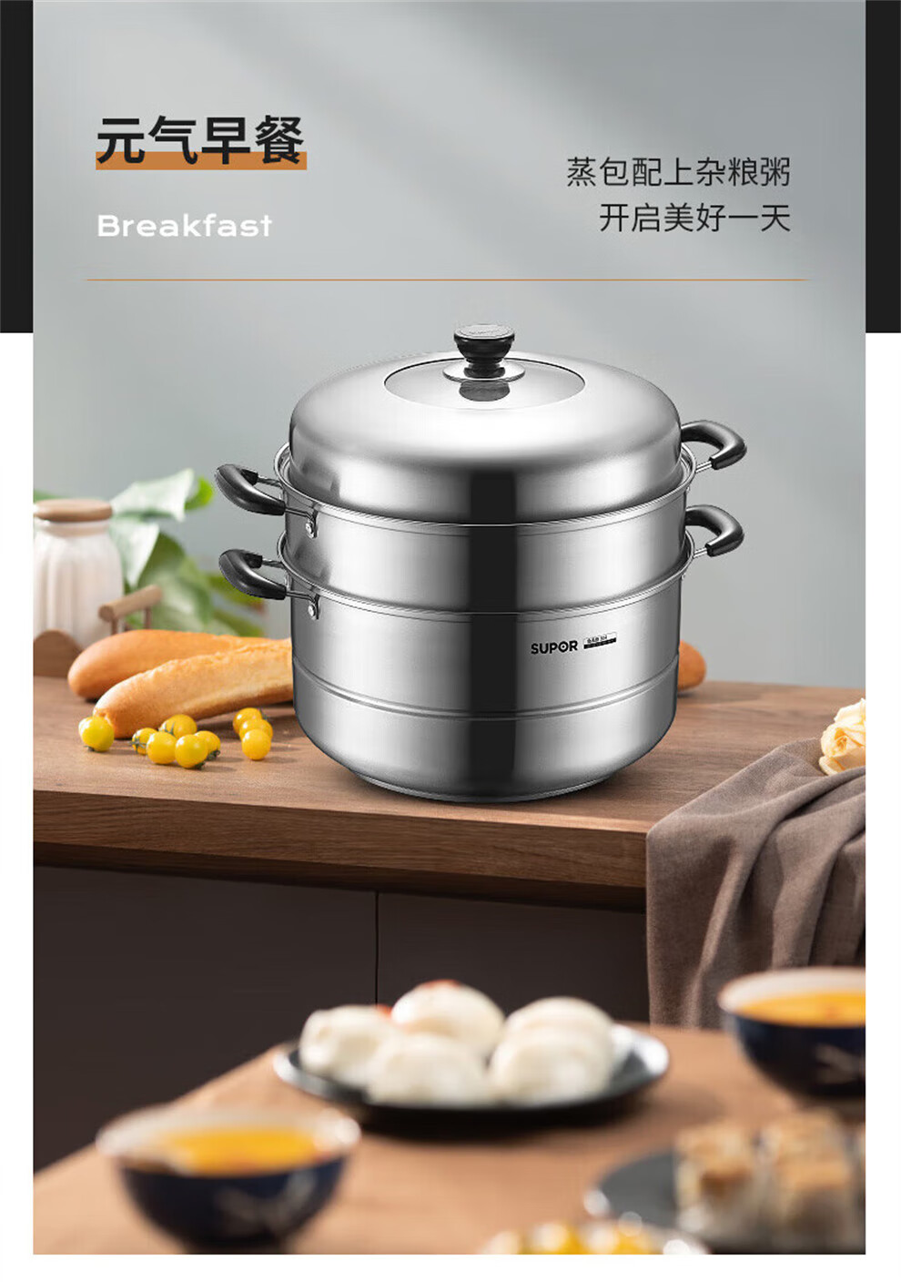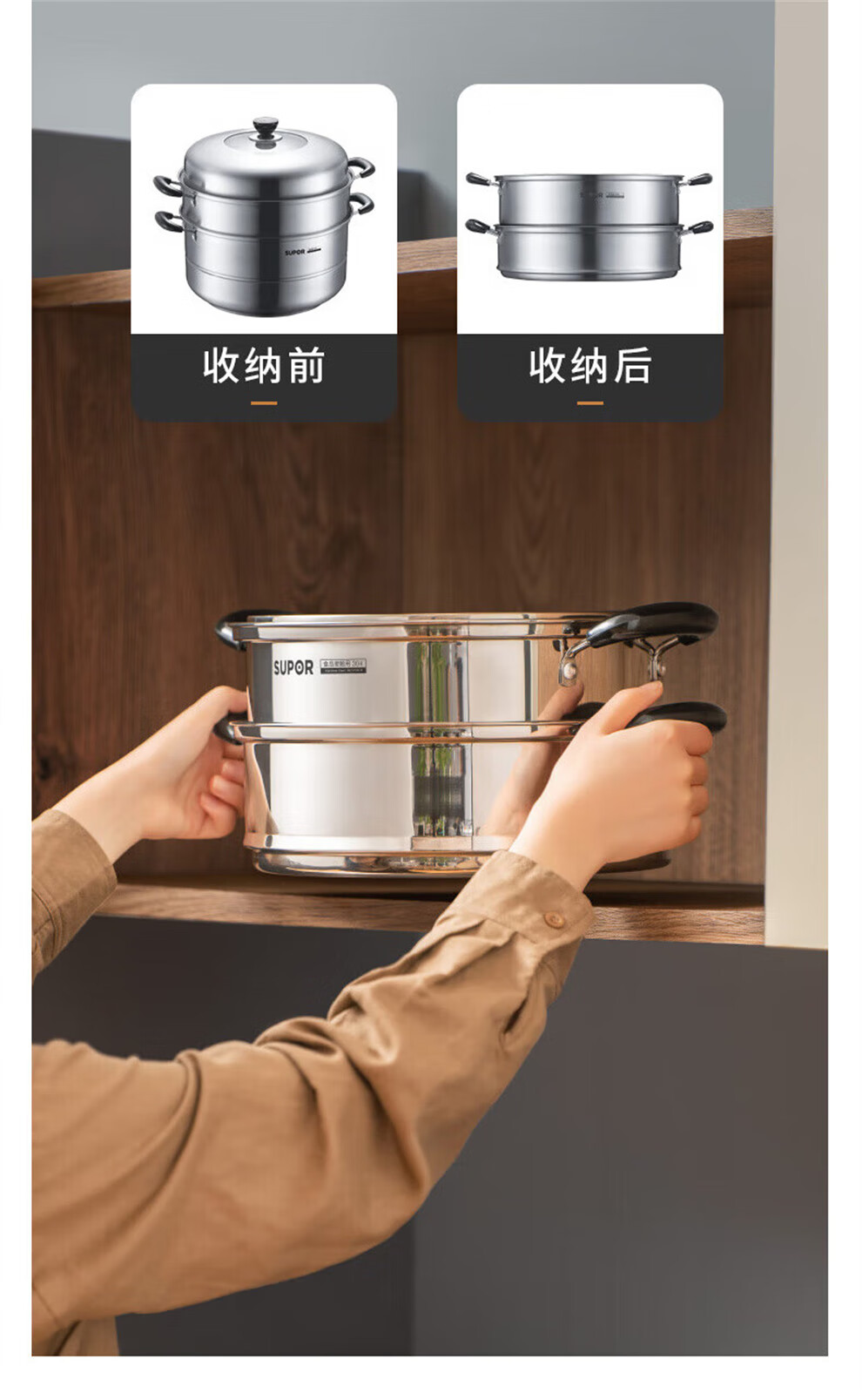 Supor large-capacity steamer three-layer household steamer 304 stainless steel enlarged steaming and cooking dual-purpose pot induction cooker gas universal 3-layer steamer + 1 original steamer becomes 4 layers 34cm