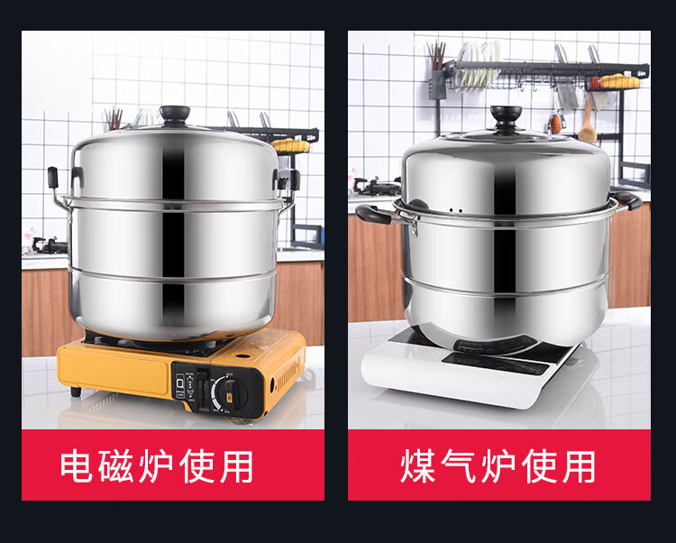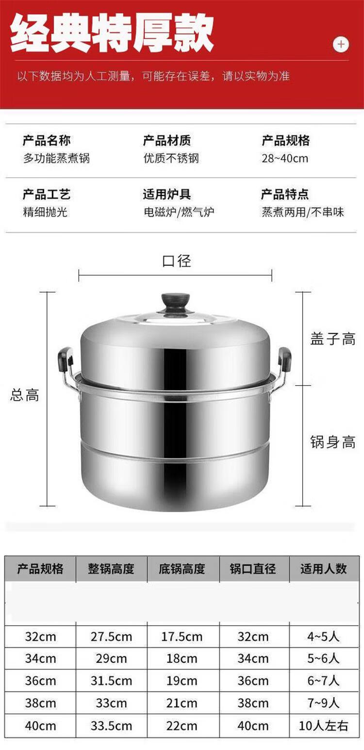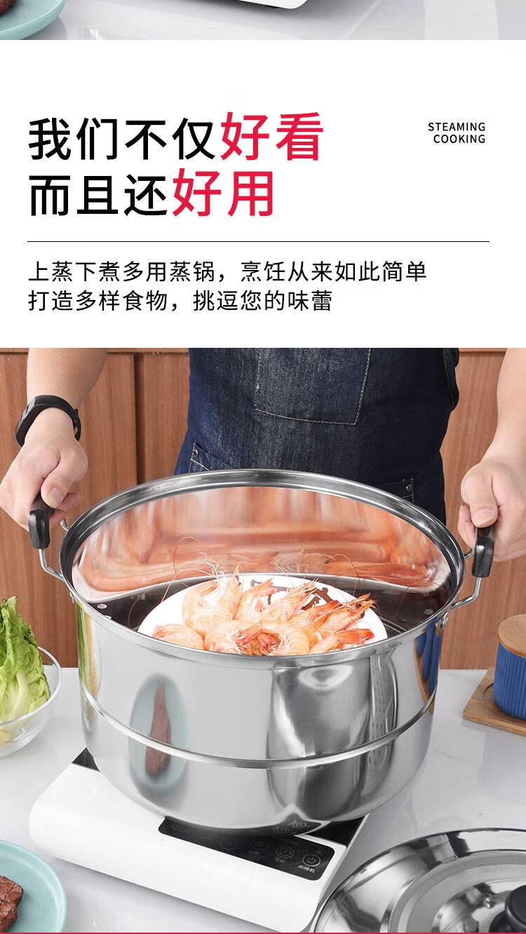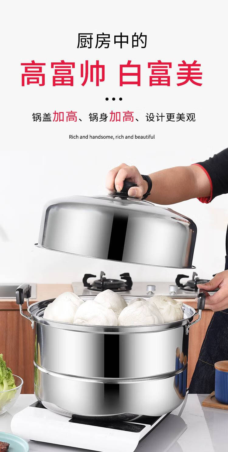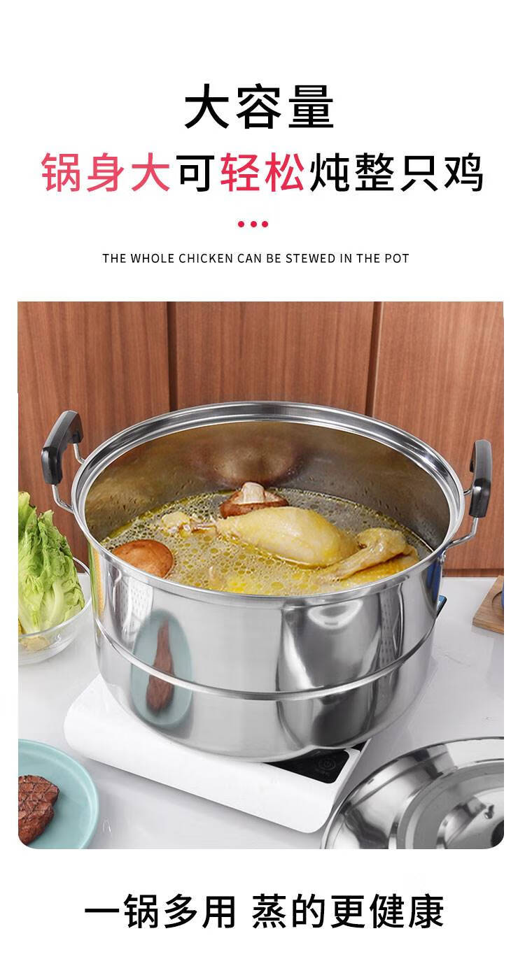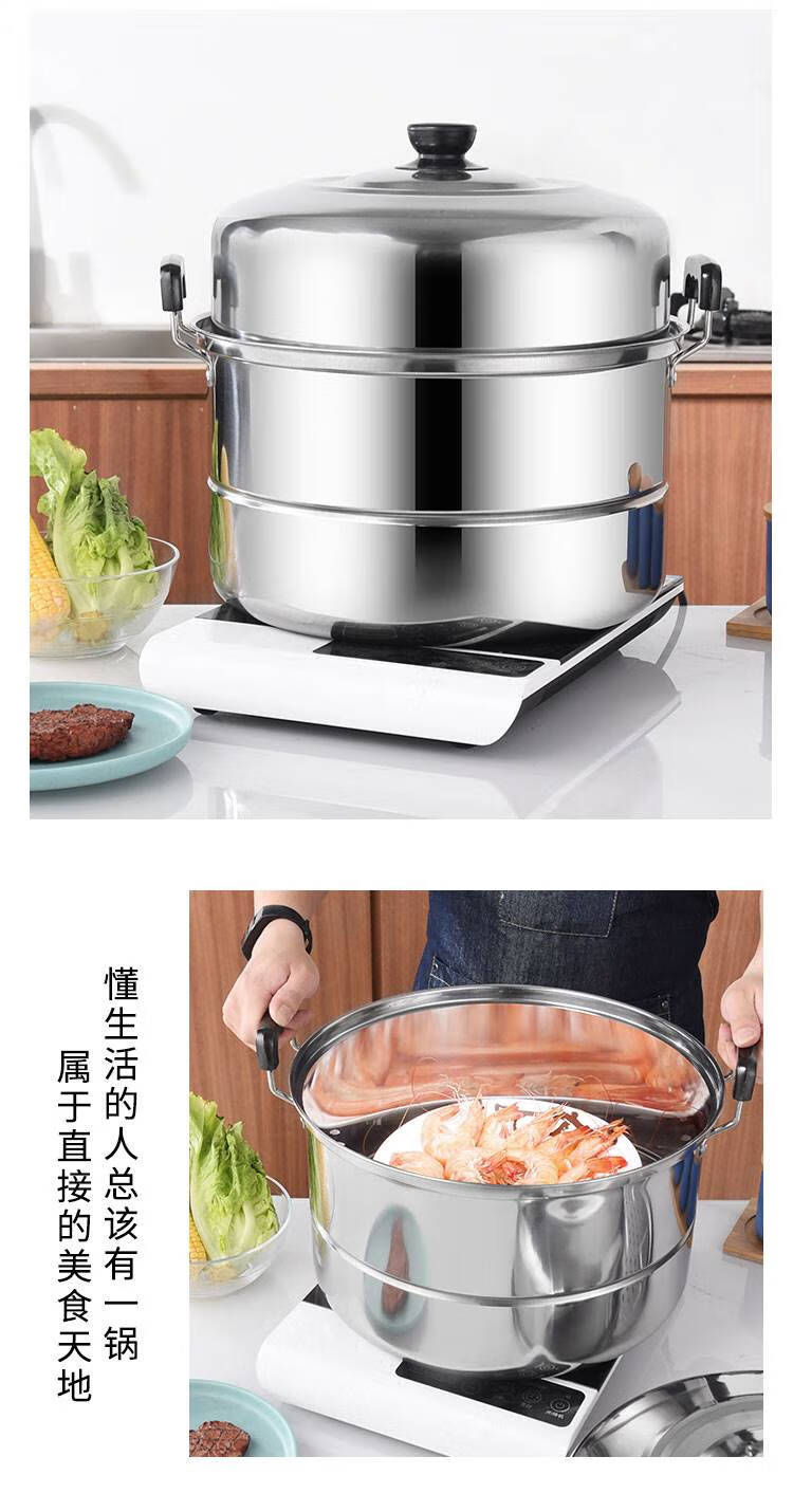 Stainless steel thickened two-layer double-layer steamer household large large-capacity induction cooker gas stove steamed buns steel-bar small pot without pot stainless steel small bowl 14cm newly upgraded-high quality