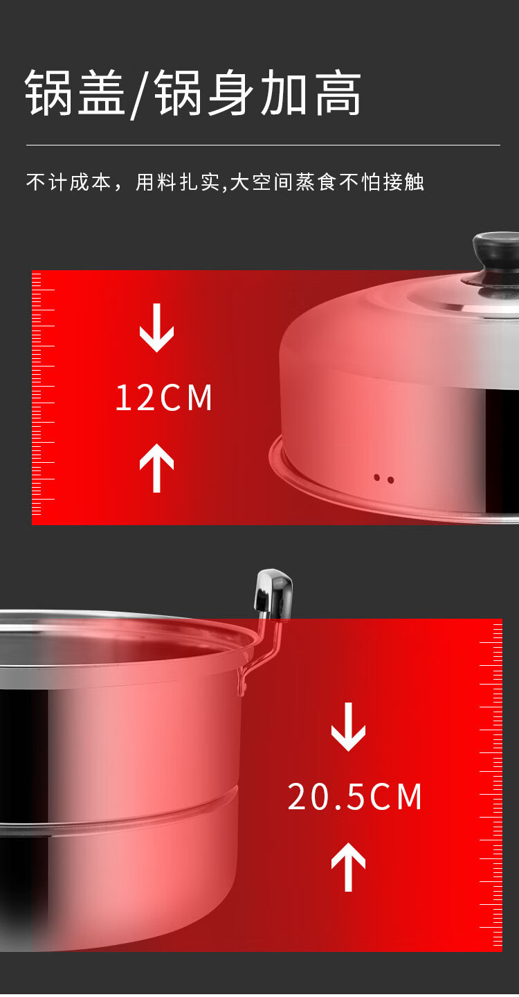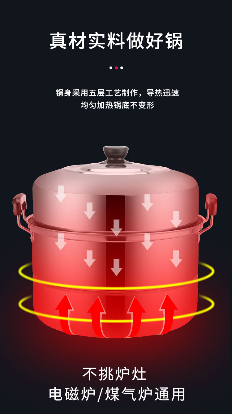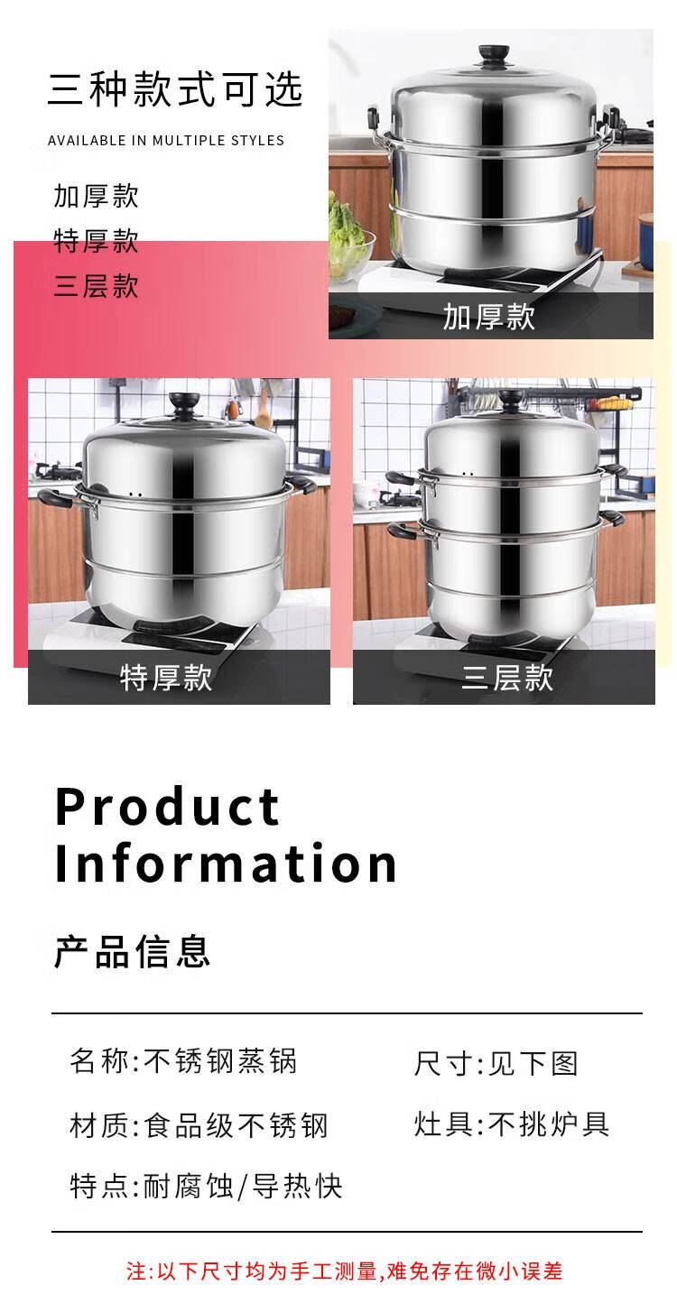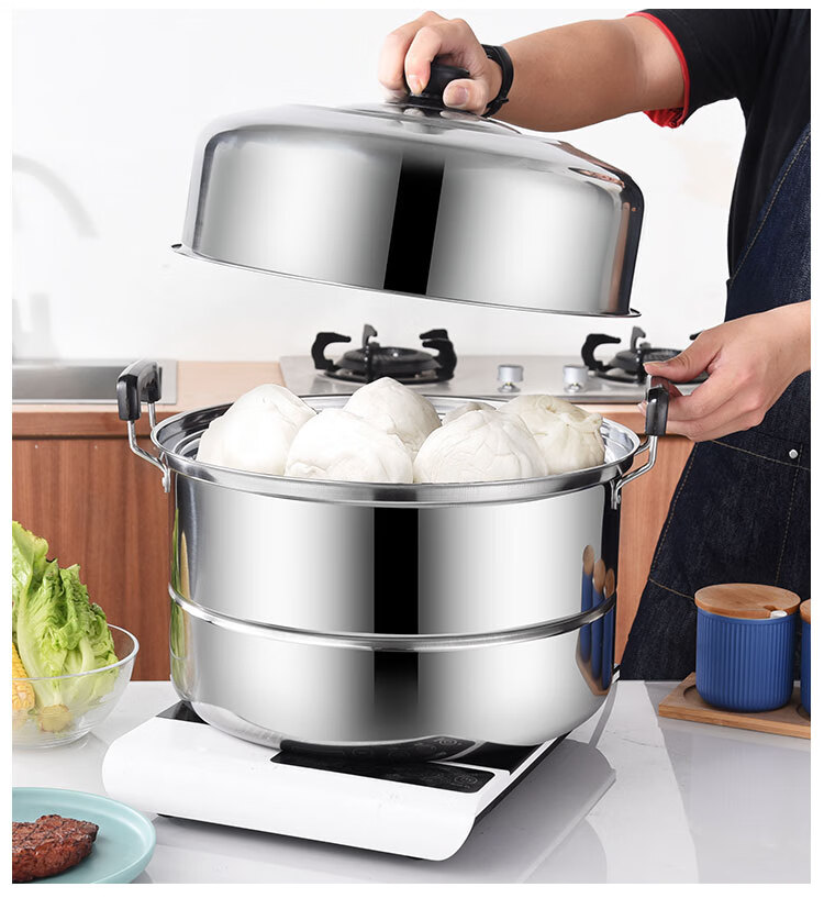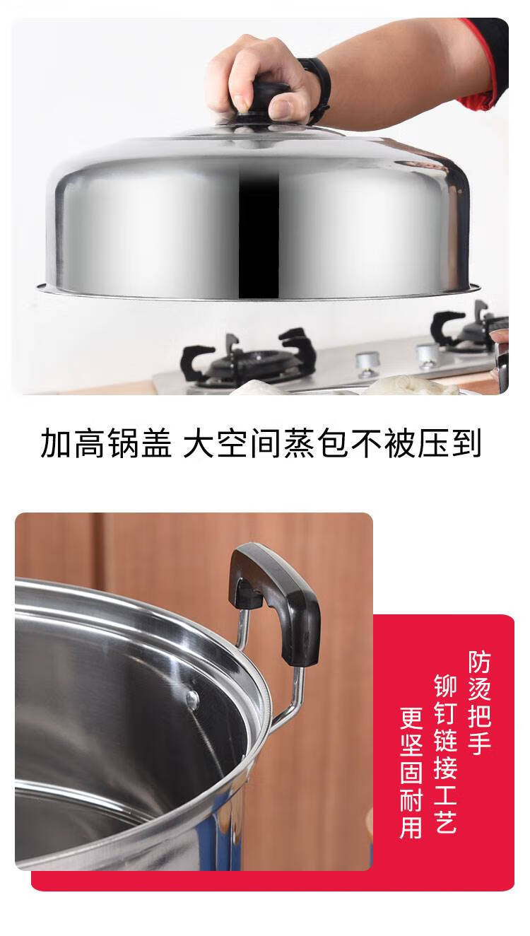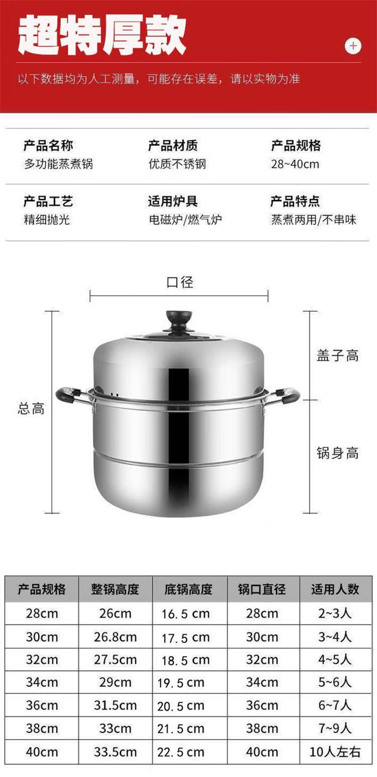 Stainless steel thickened two-layer double-layer steamer household large large-capacity induction cooker gas stove steamed buns steel-bar small pot without pot stainless steel small bowl 14cm newly upgraded-high quality