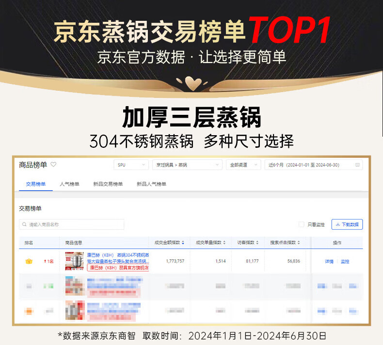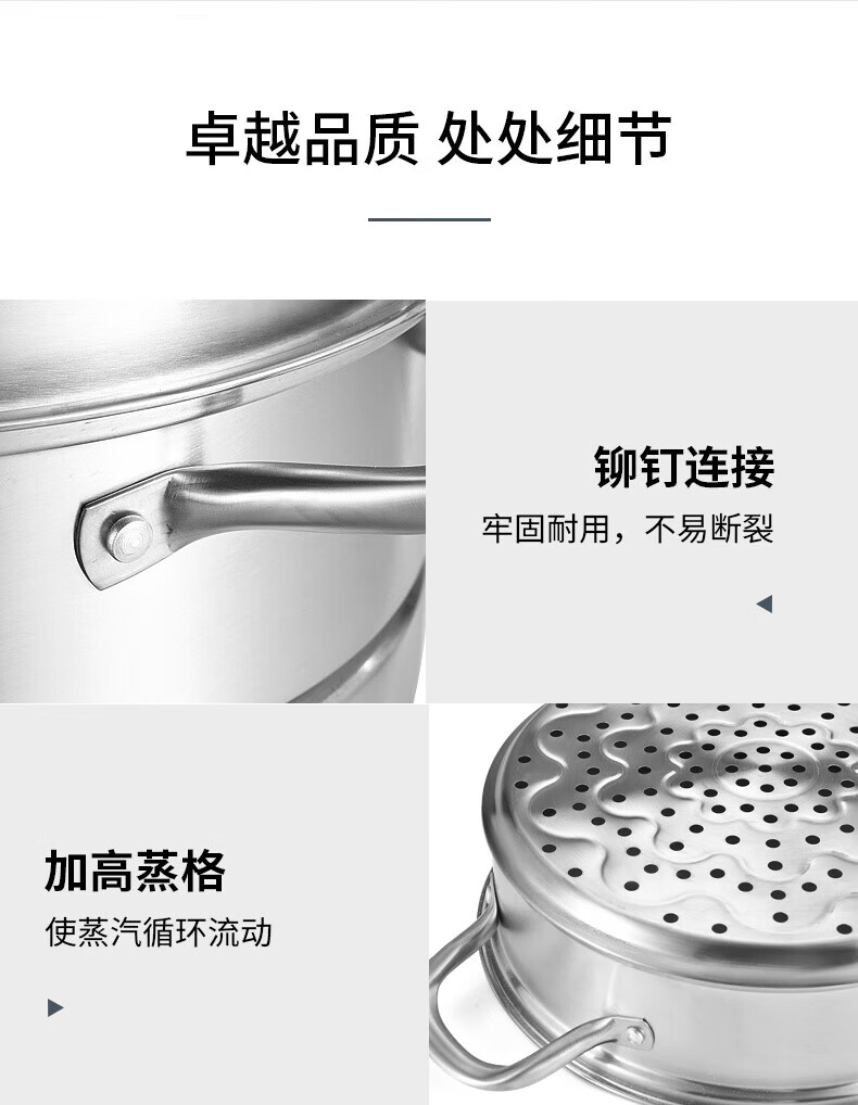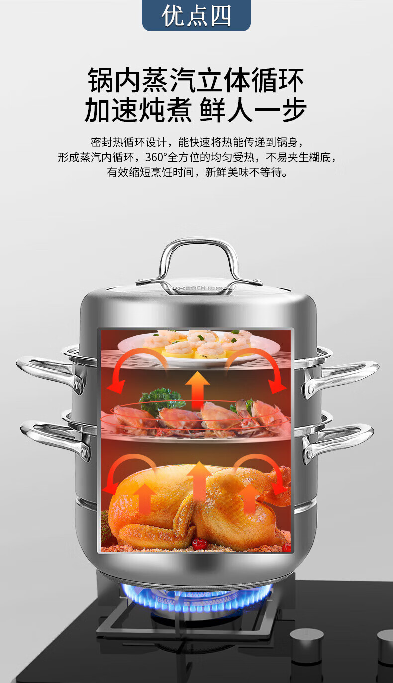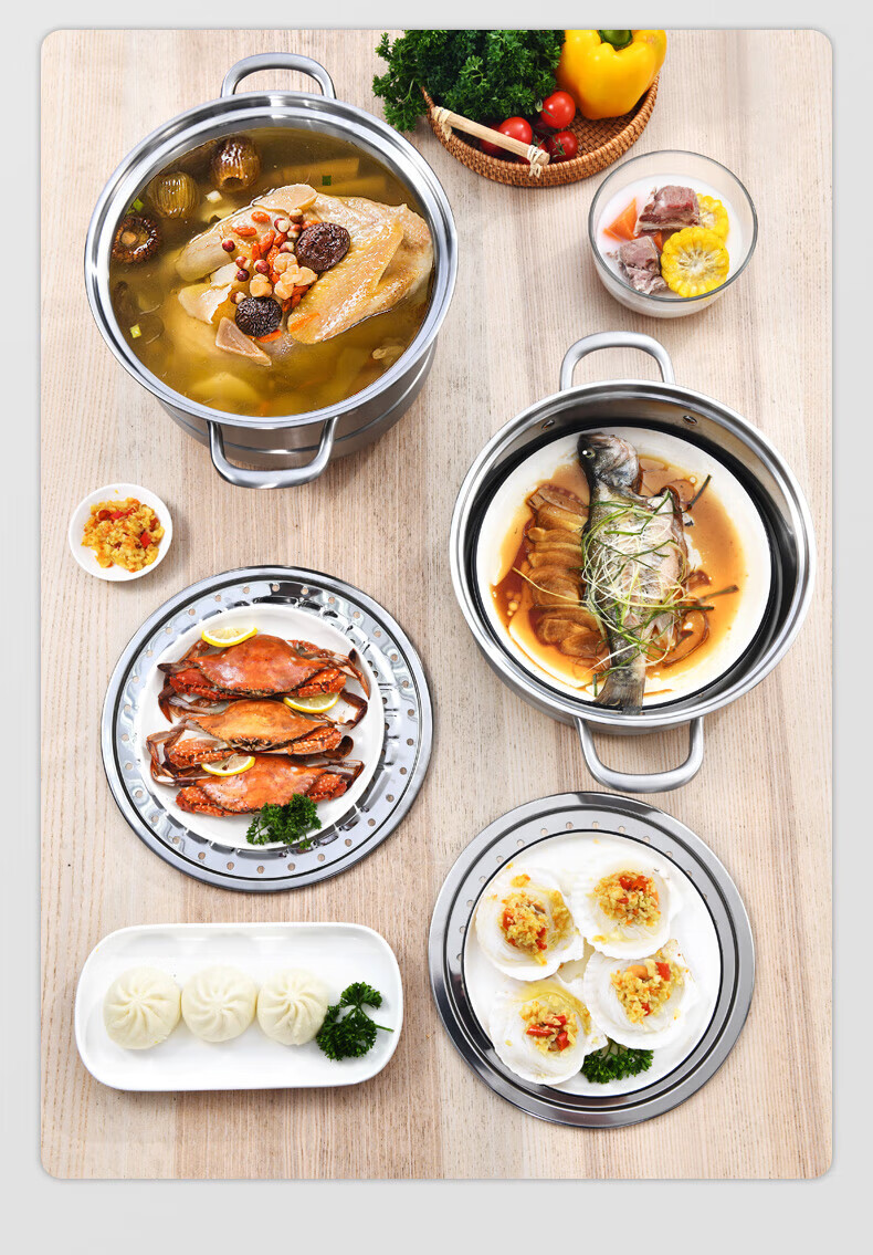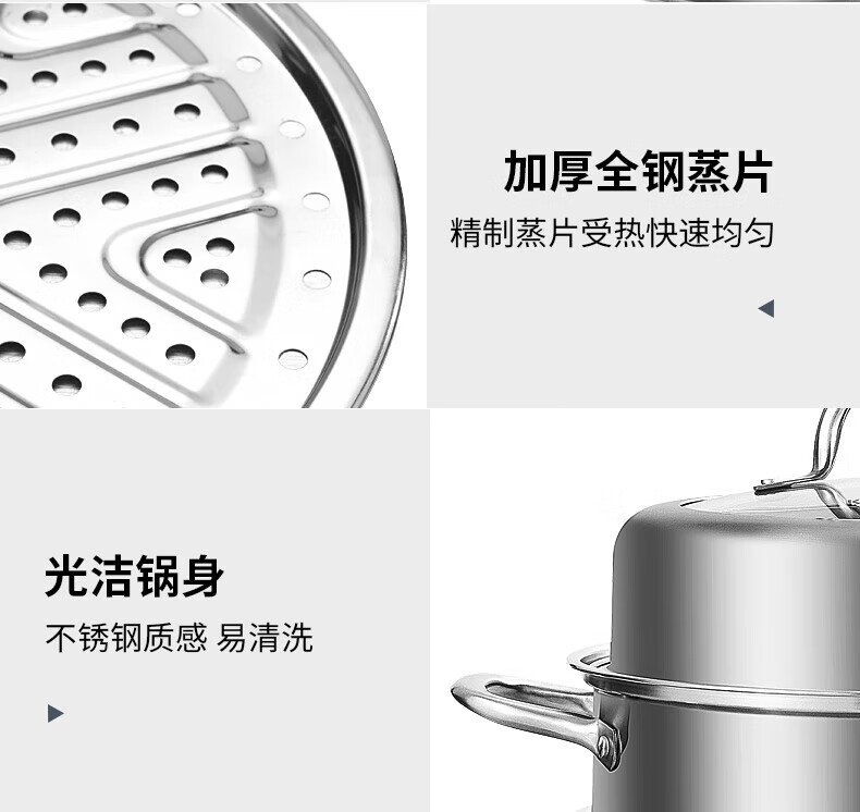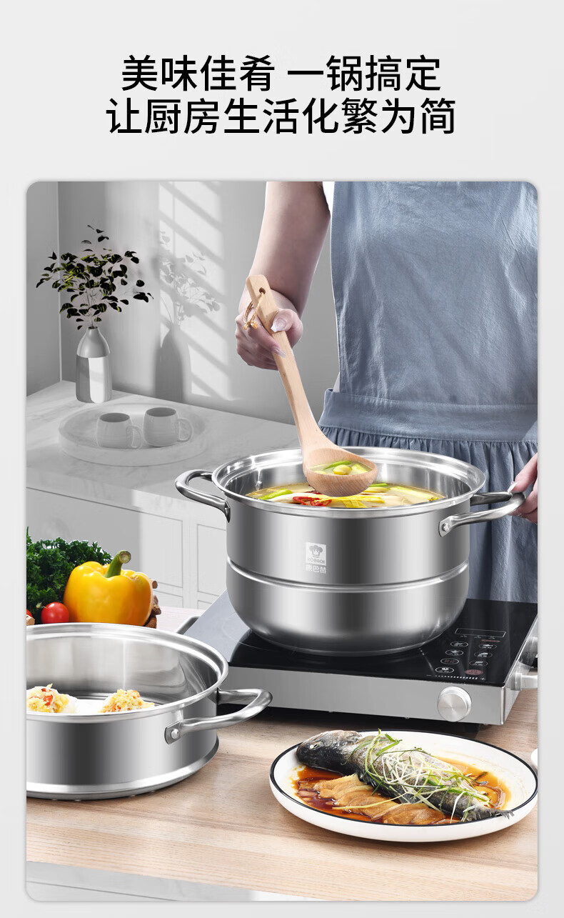 Konbach (KBH) steamer 304 stainless steel steamer double-layer composite bottom soup pot gas stove induction cooker universal flagship model high cover 2 layers 30cm