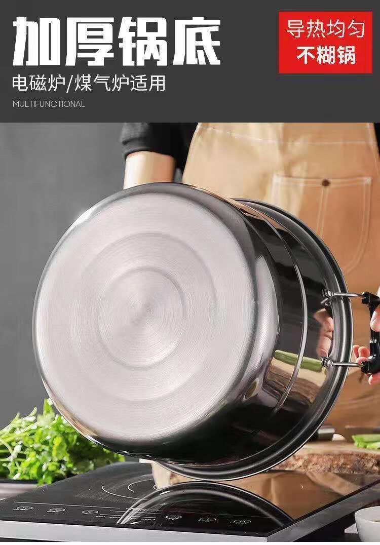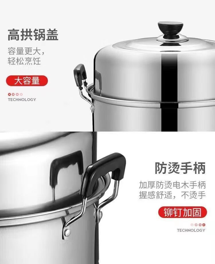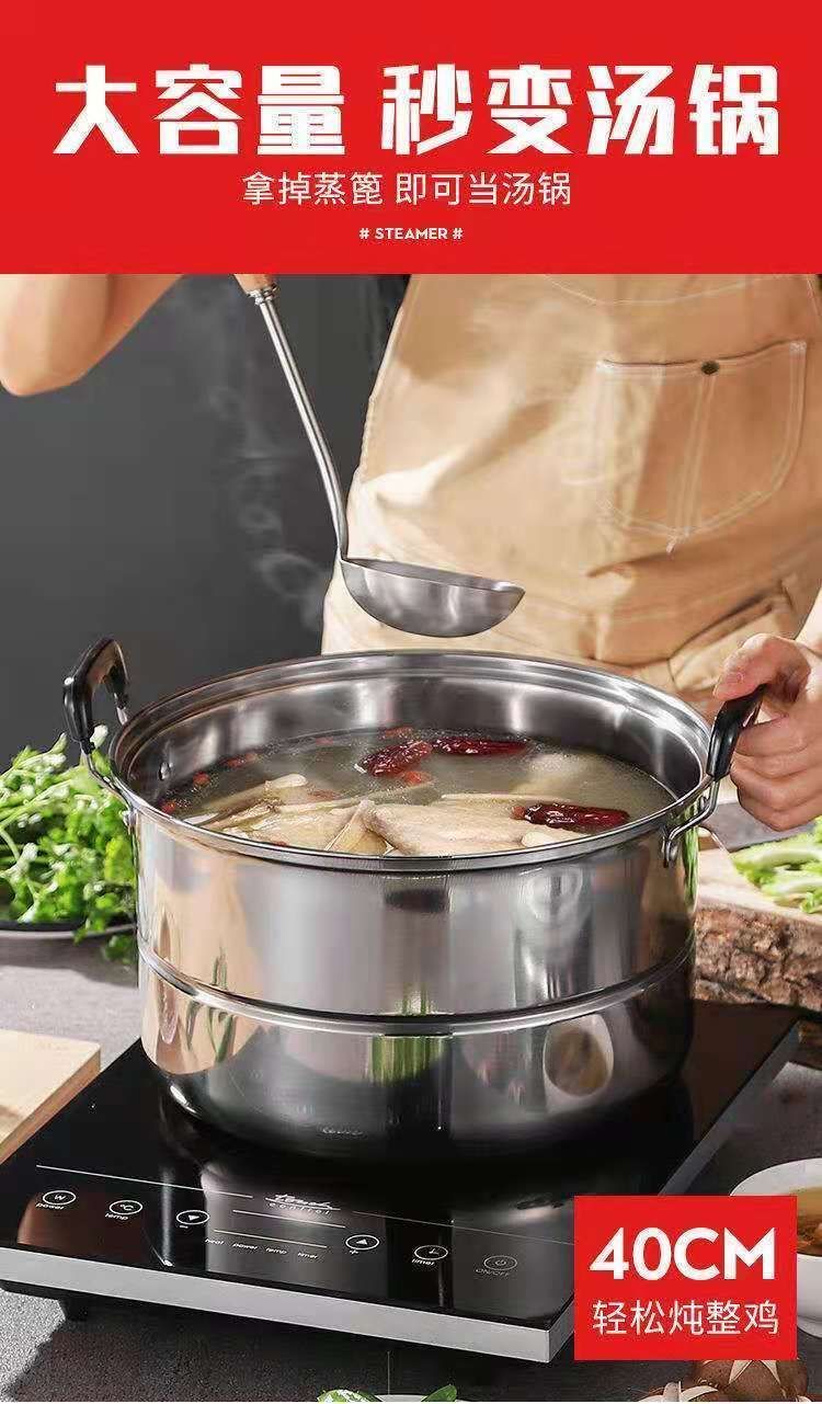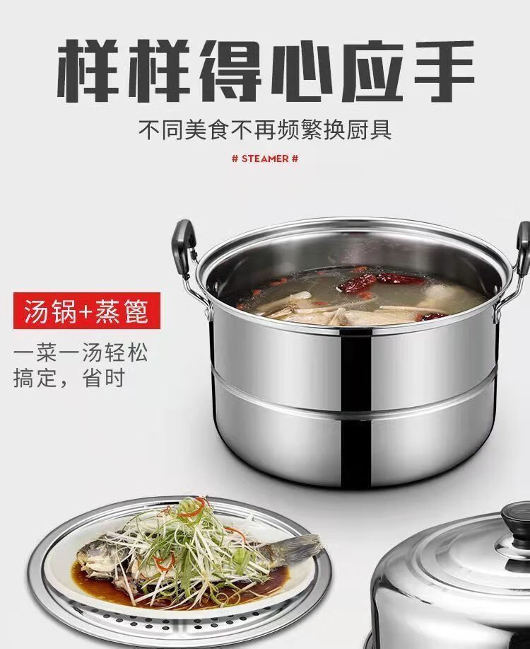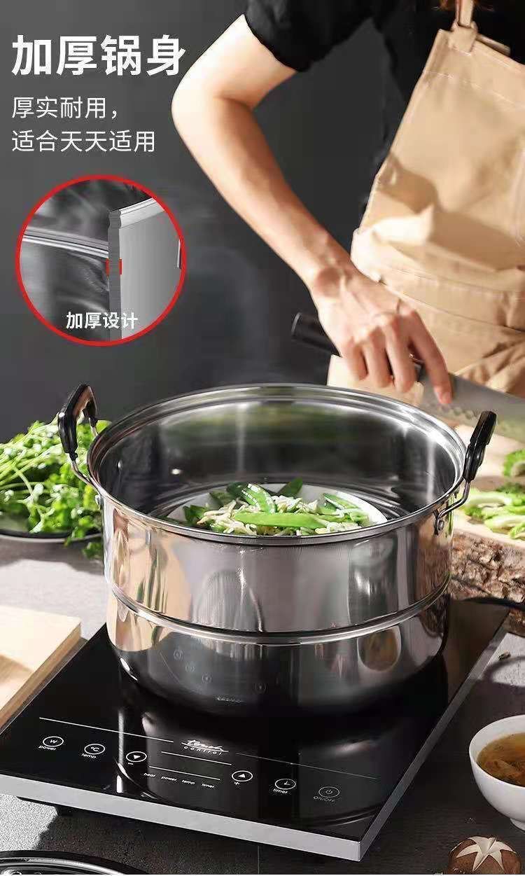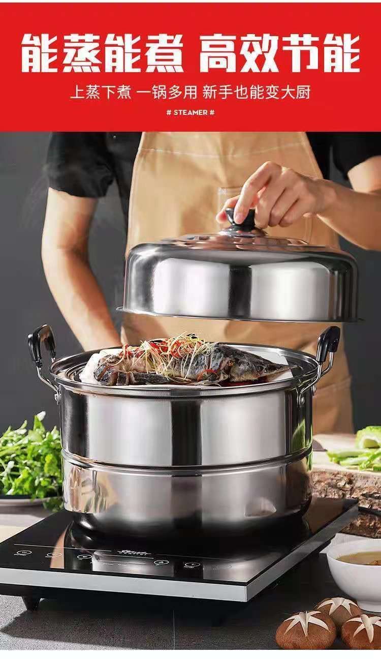 Extra thick stainless steel double-layer steamer household steamed buns steamed fish pot steamer large soup pot induction cooker gas stove universal double-layer thickened steamer 38cm
