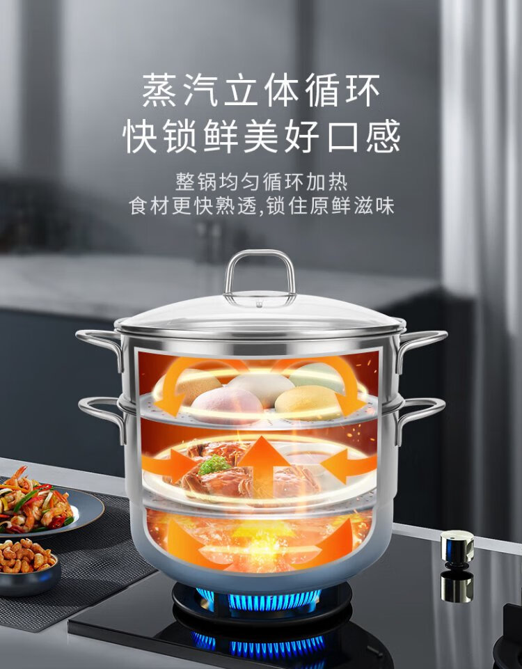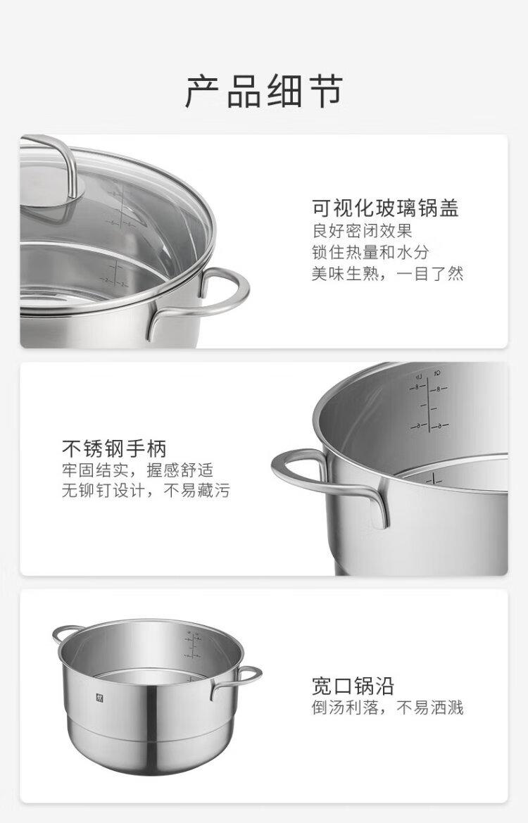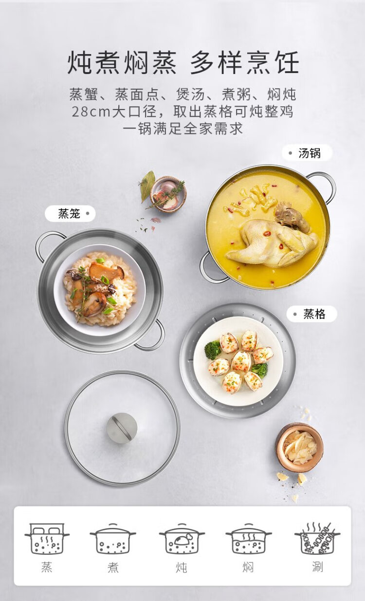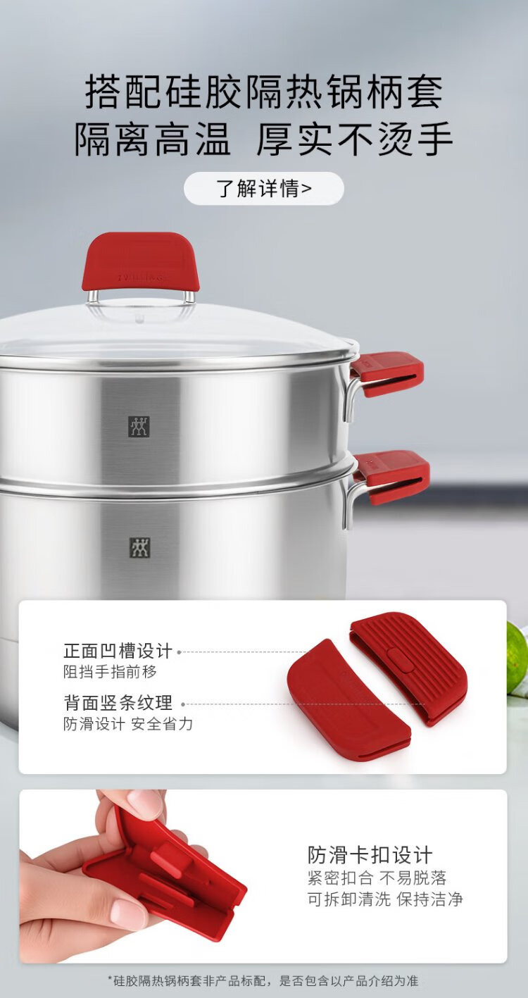 ZWILLING stainless steel soup pot, steamer, steamer, dual-purpose pot, fish pot, steamed bun set, universal gas induction cooker, including steam grid, soup pot + 2 steamers, 28cm