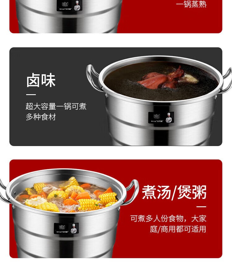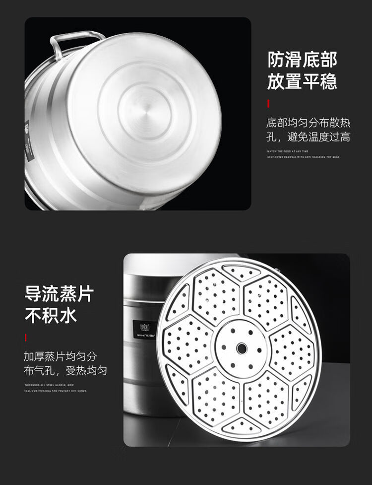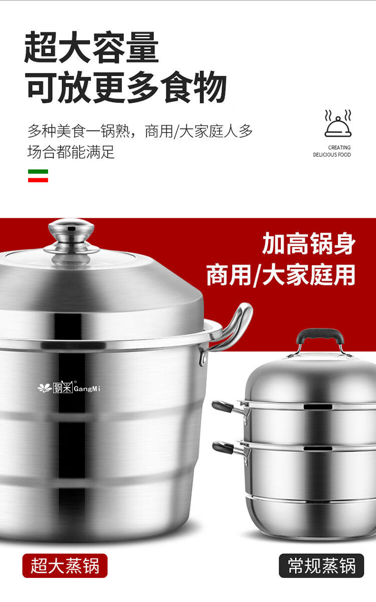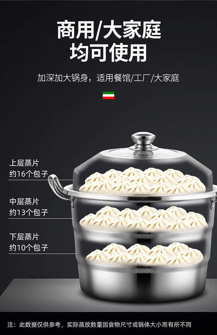 Steel rice stainless steel steamer for home and commercial use three layers extra large capacity extra large induction cooker gas stove universal extra thick 3 layers 40cm