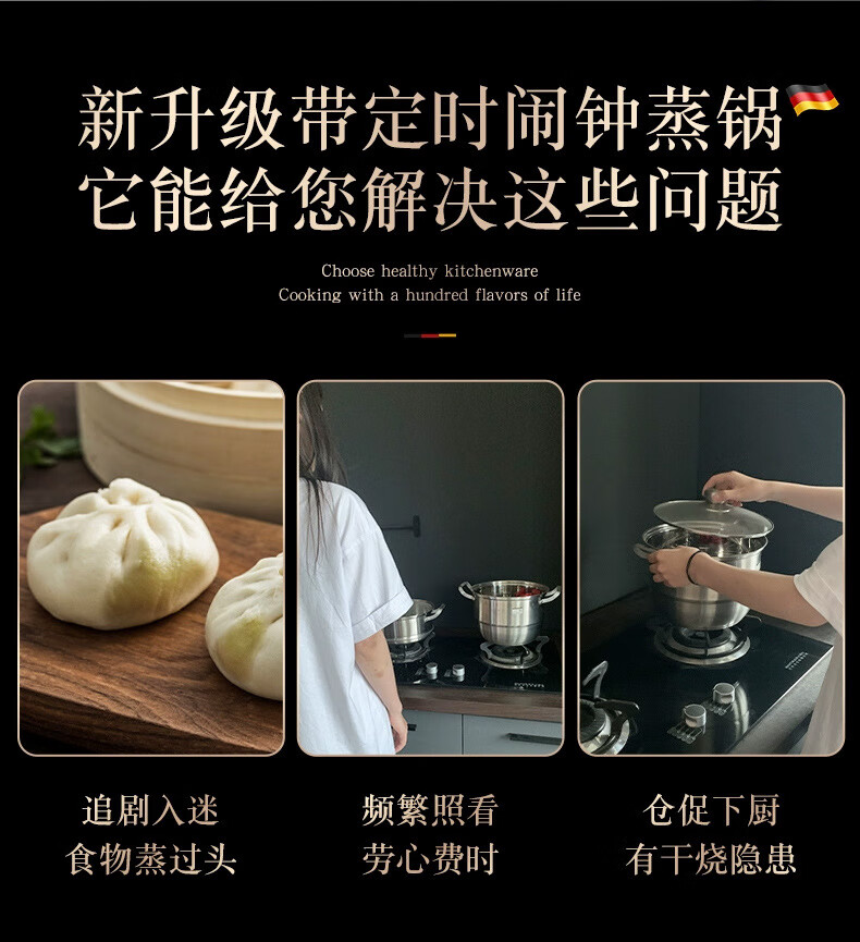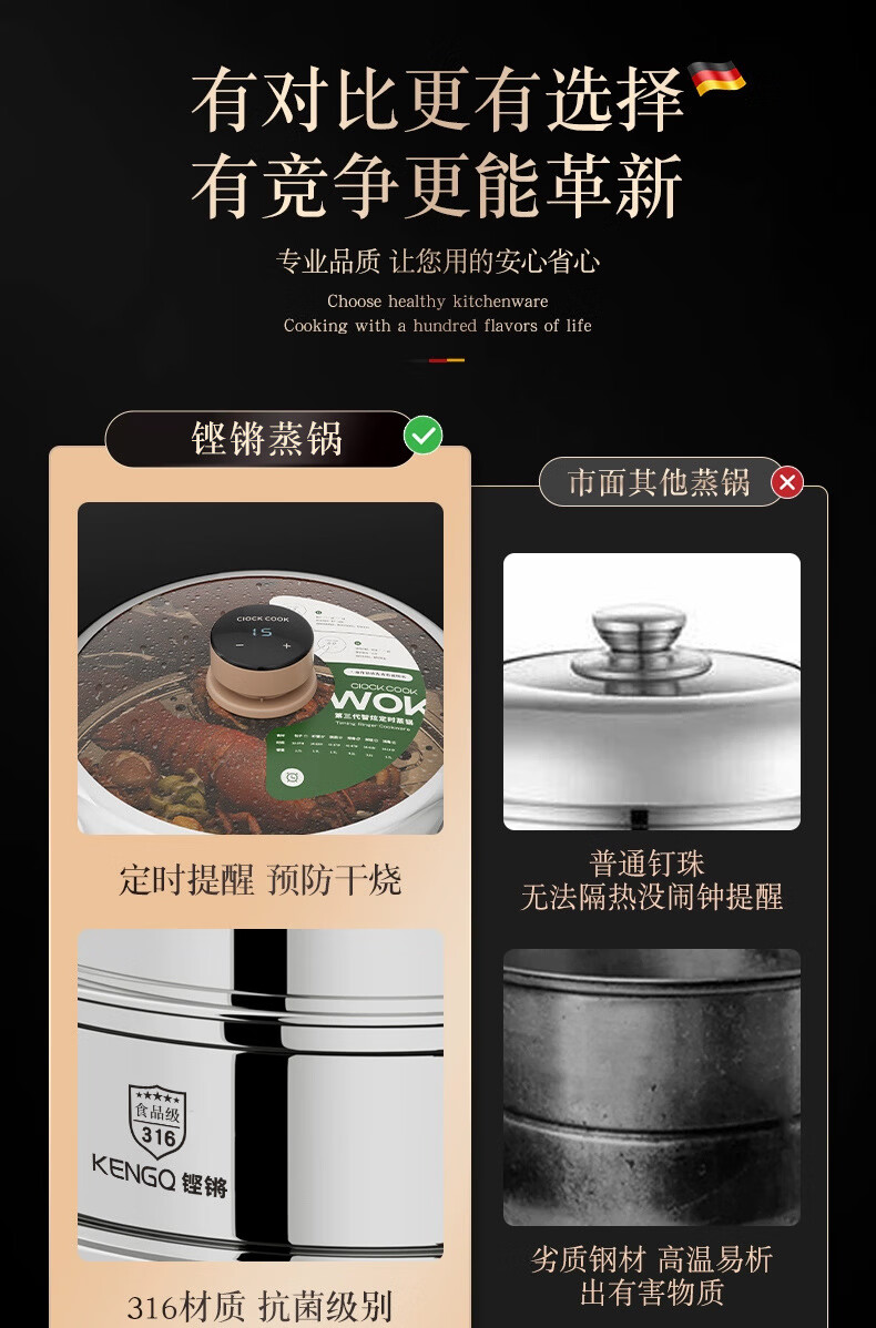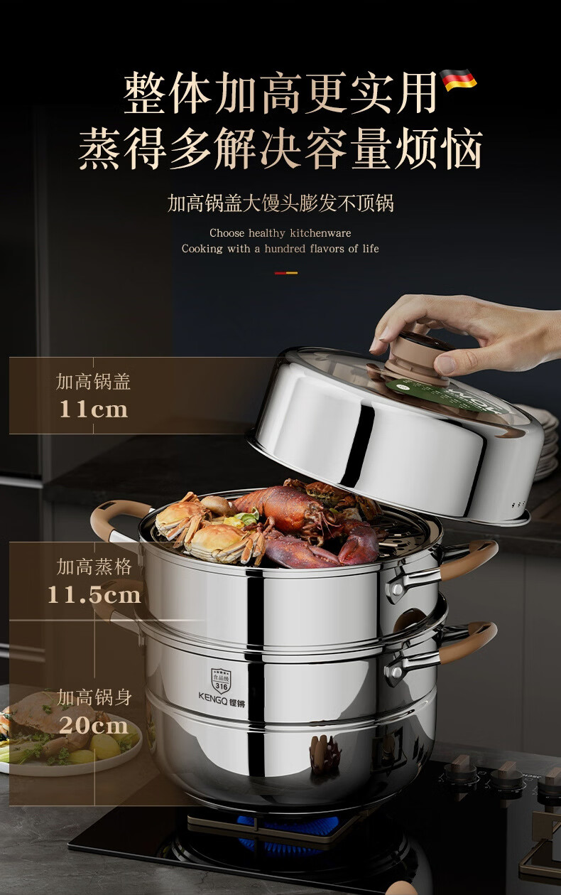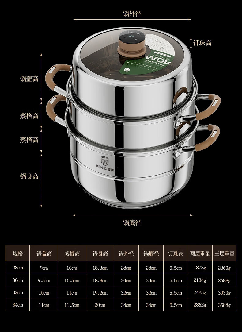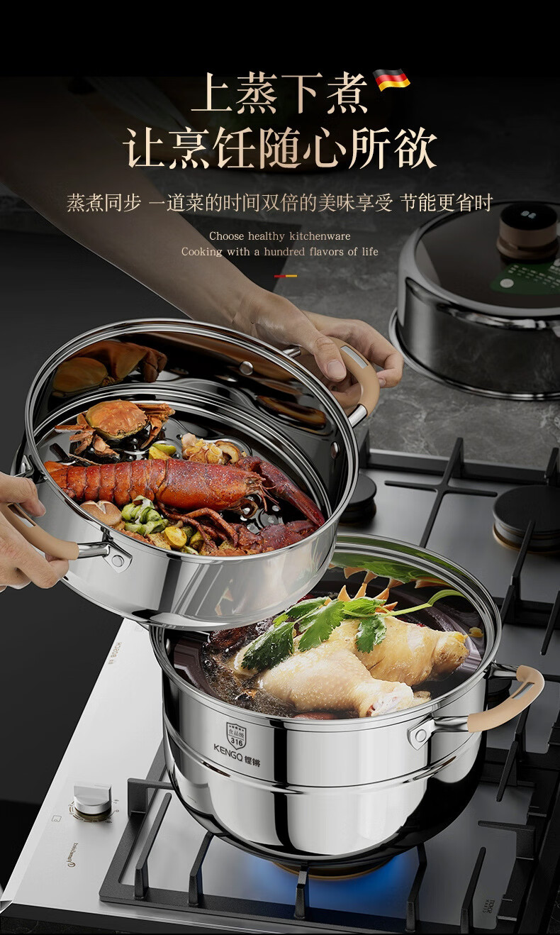 Carefully selected 316 stainless steel steamer food grade timed steamer household thickened steamer large capacity multi-layer gas stove double layer steamer upgraded 316 steel 28cm
