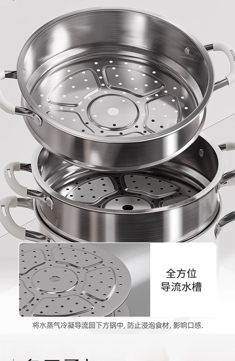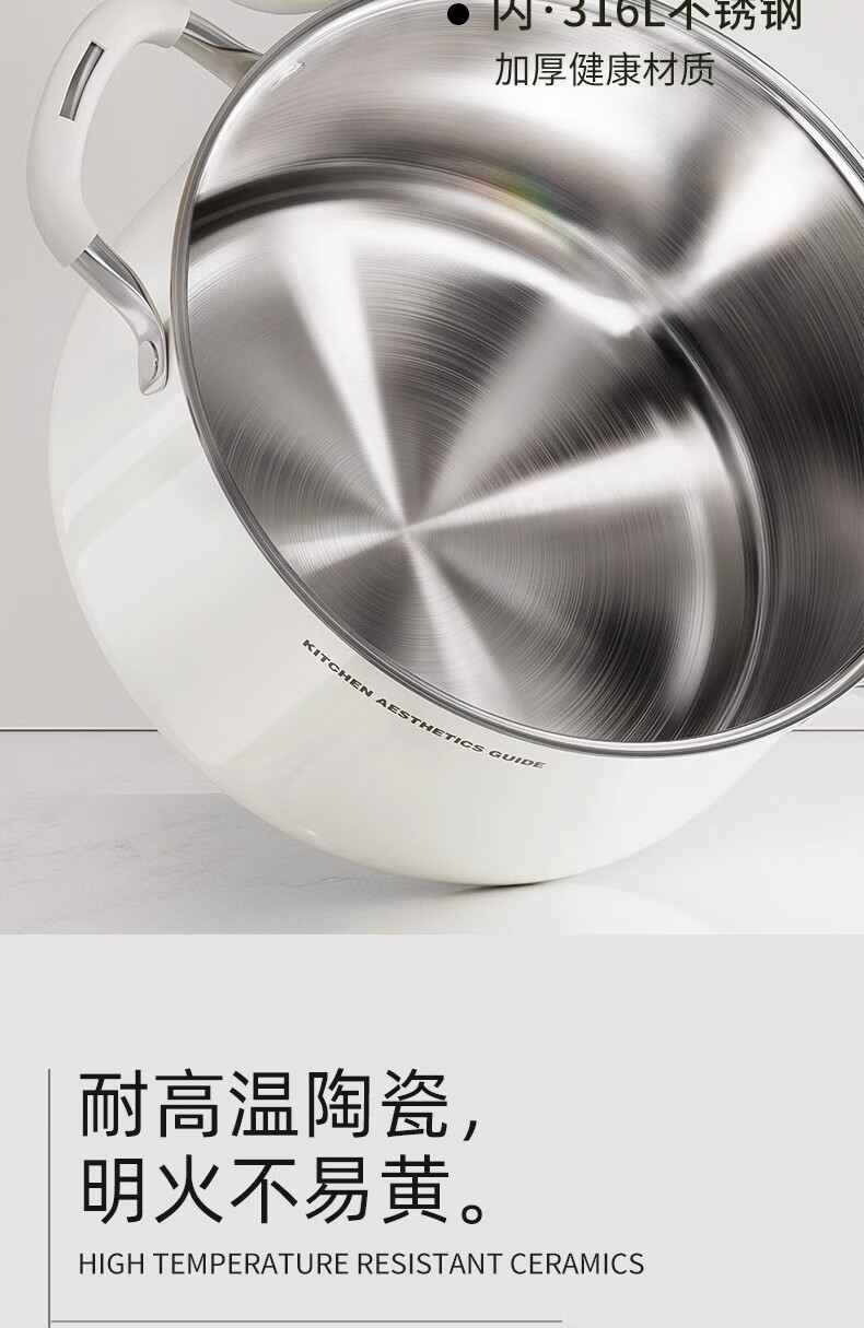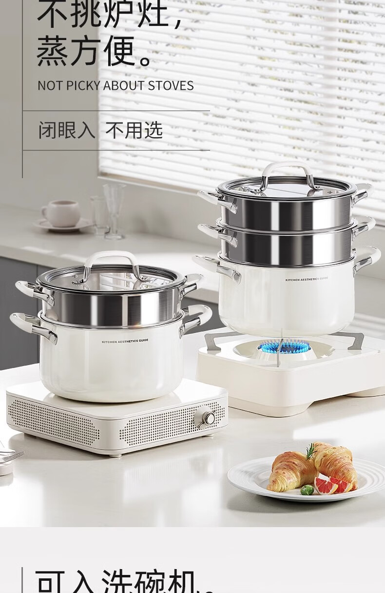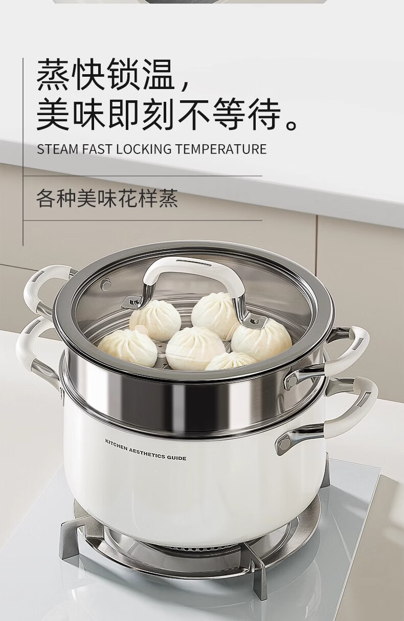 Royalstar thickened 316 stainless steel steamer uncoated food grade ceramic household special gas steaming stew pot thickened ceramic steel rust-proof and antibacterial double-layer 24cm 316L stainless steel