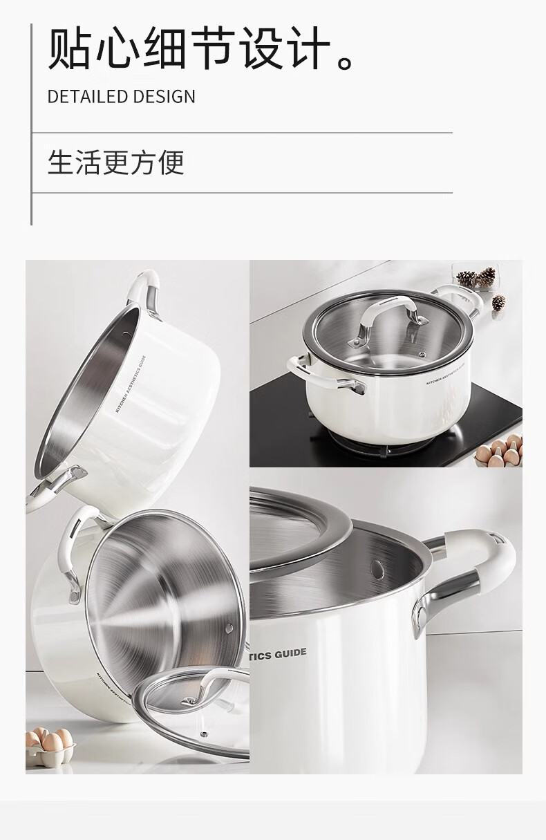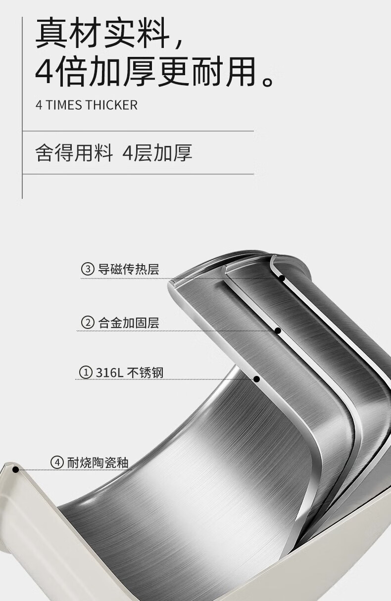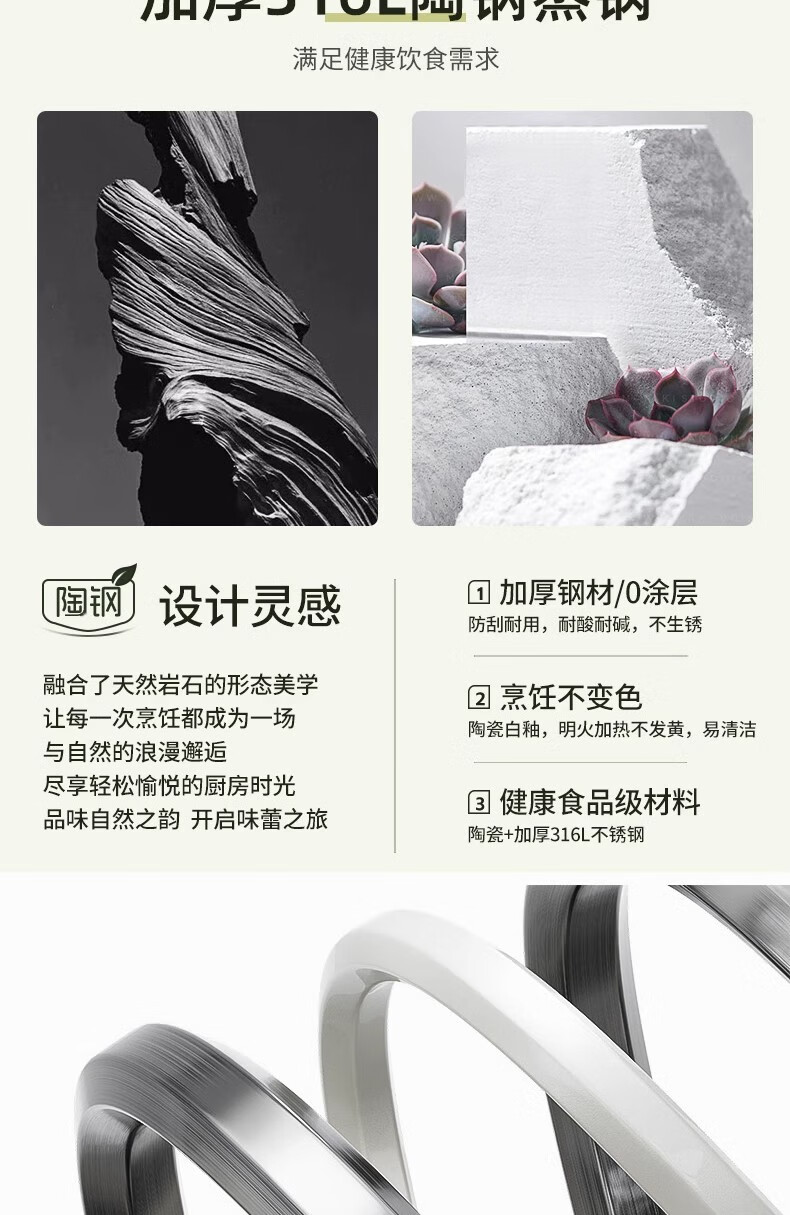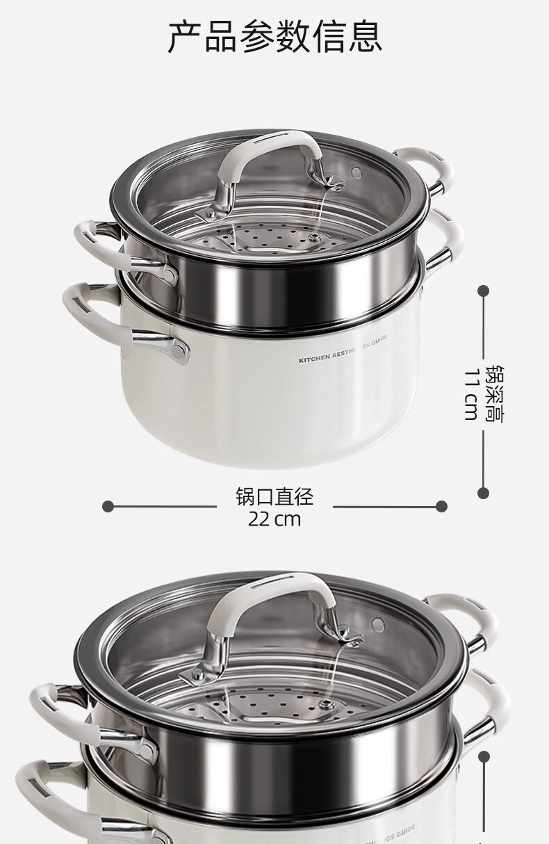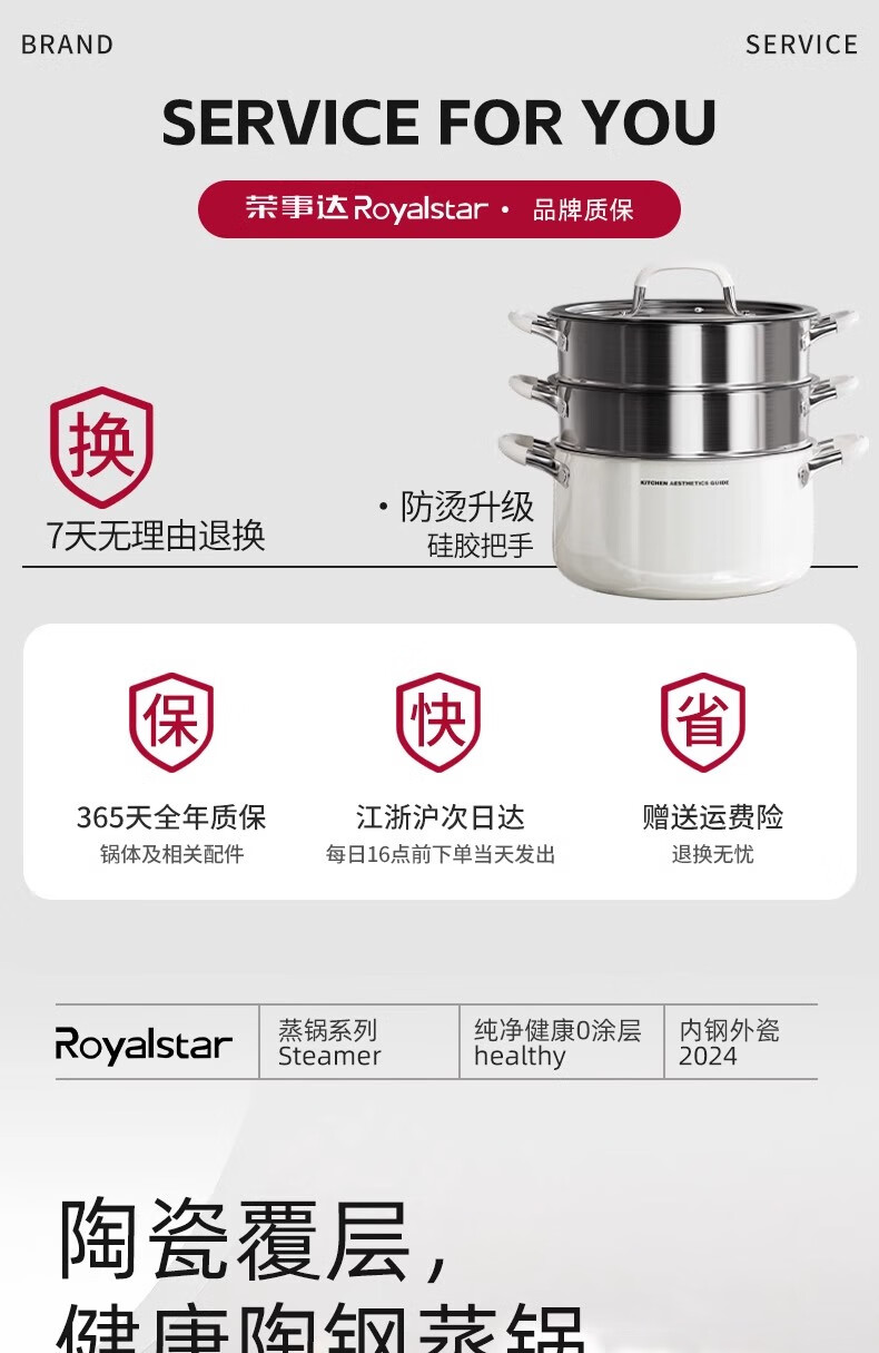 Royalstar thickened 316 stainless steel steamer uncoated food grade ceramic household special gas steaming stew pot thickened ceramic steel rust-proof and antibacterial double-layer 24cm 316L stainless steel