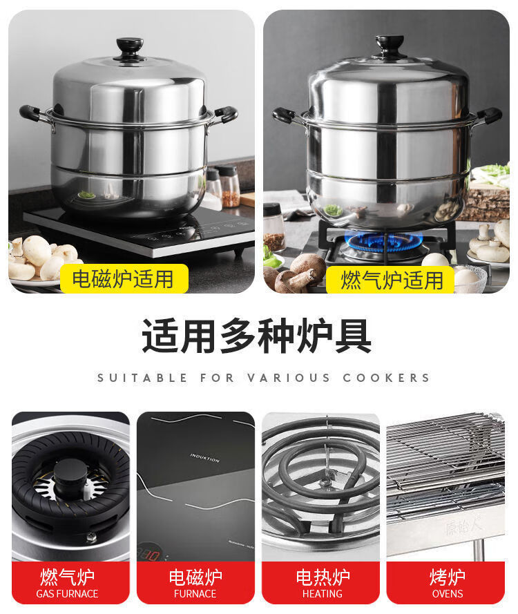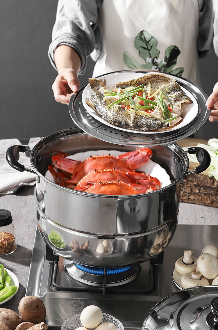 Yingtang stainless steel three-layer steamer double multi-layer household steamer plus height large capacity soup pot thickened steamer large pot three-layer stainless steel steamer 28cm