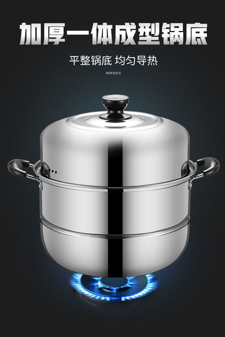 Joyoung Beauty extra thick stainless steel double-layer steamer household steamer large soup pot steamed buns steamed fish pot induction cooker gas stove poly energy double-layer steamer + 2 steaming sheets 2 30cm