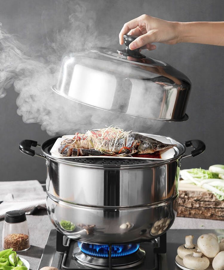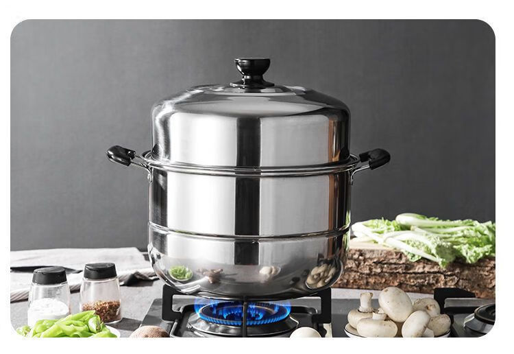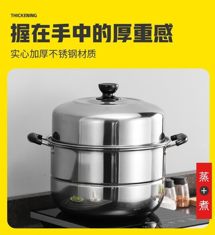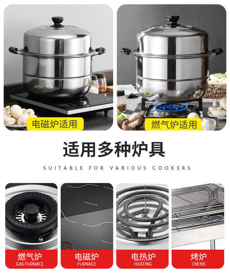 Big brand same style stainless steel thickened steamer multi-layer household steamer induction cooker gas stove universal 36cm thickened double-layer steamer (for 6-7 people)