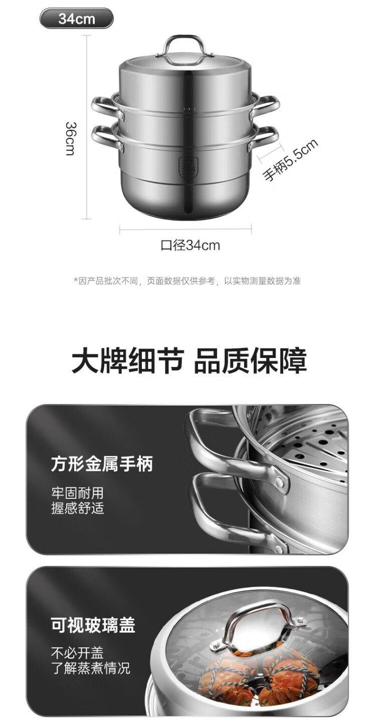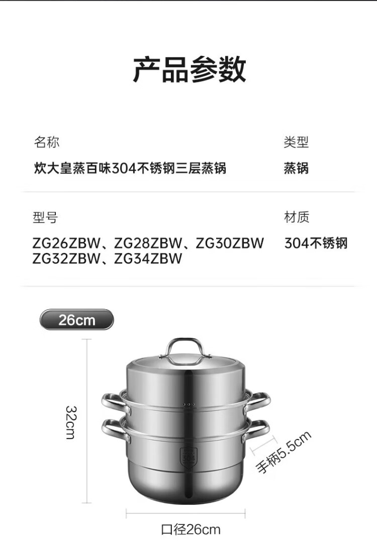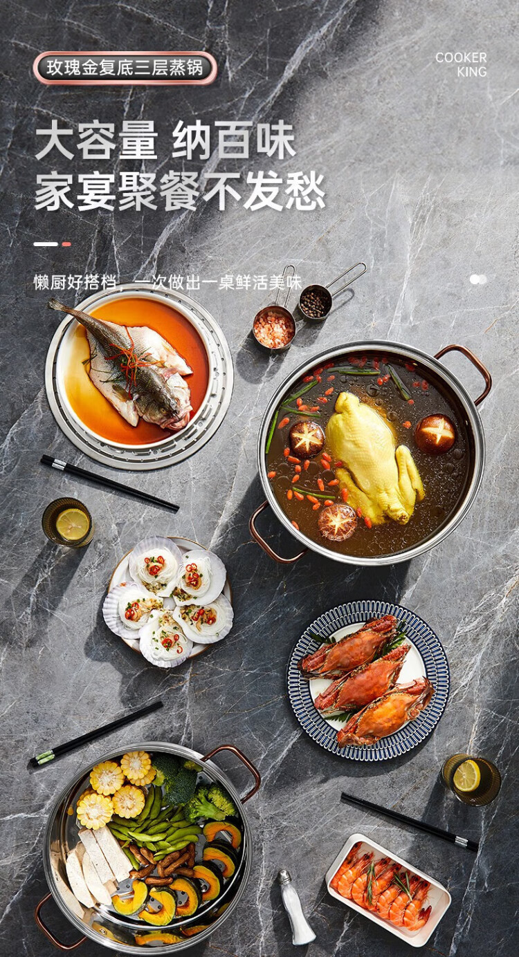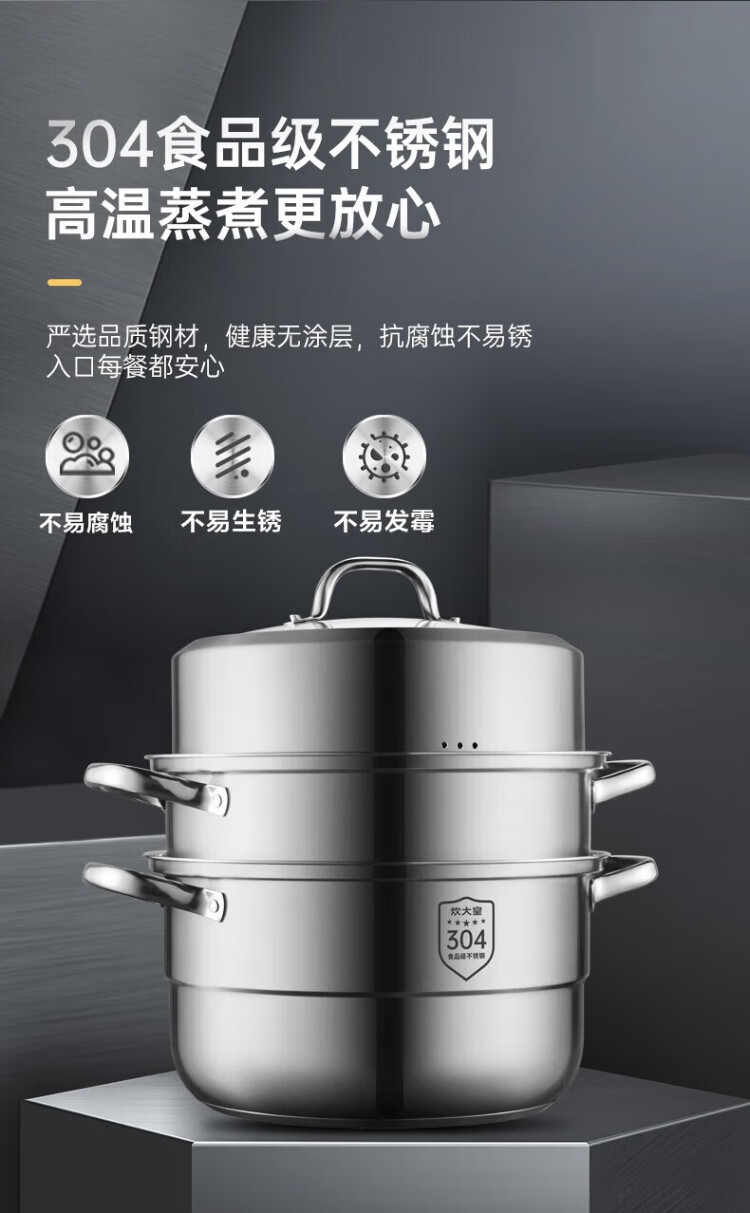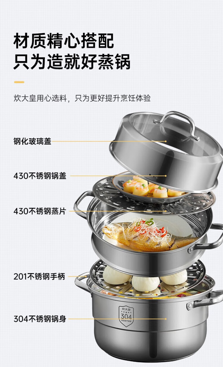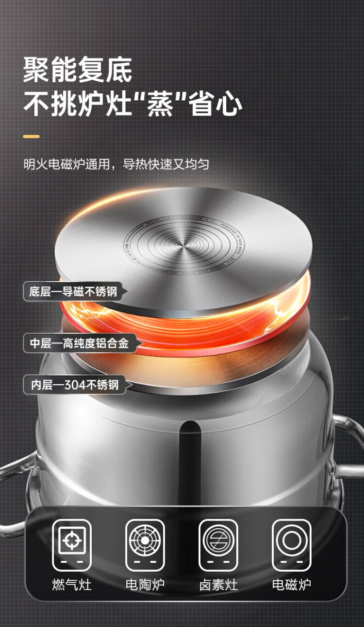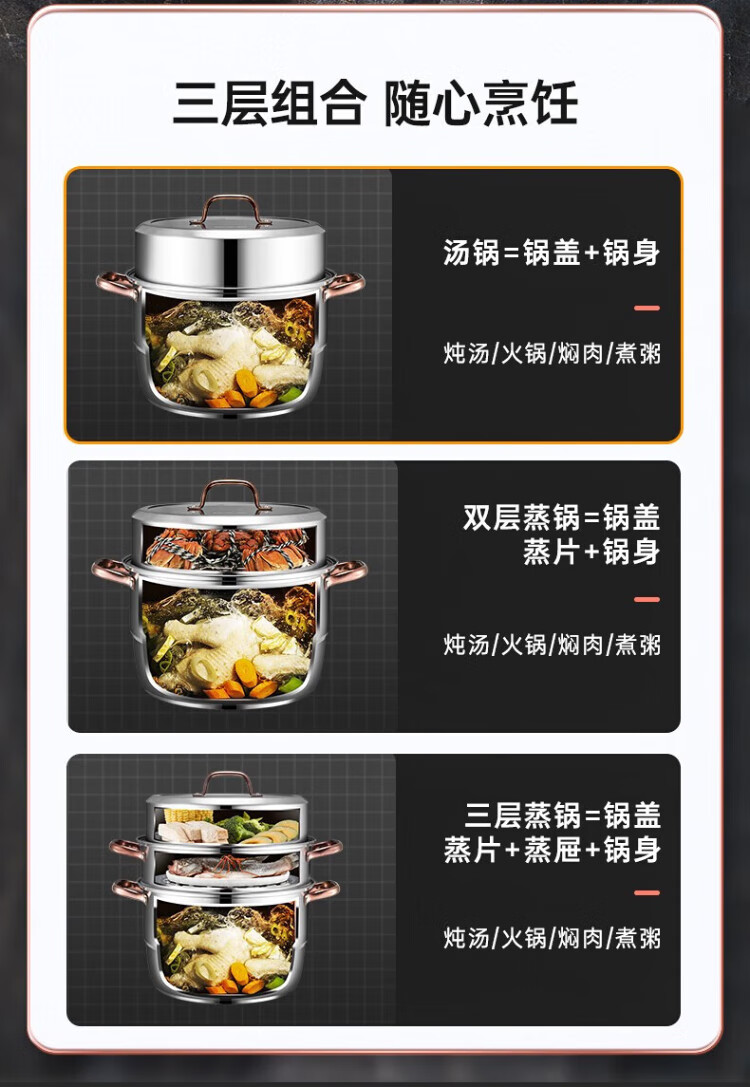 Cuidahuang 304 stainless steel three-layer steamer household composite bottom soup pot for steaming steamed buns and steamed buns with visible and erectable high arch lid 304 stainless steel three-layer steamer 30cm